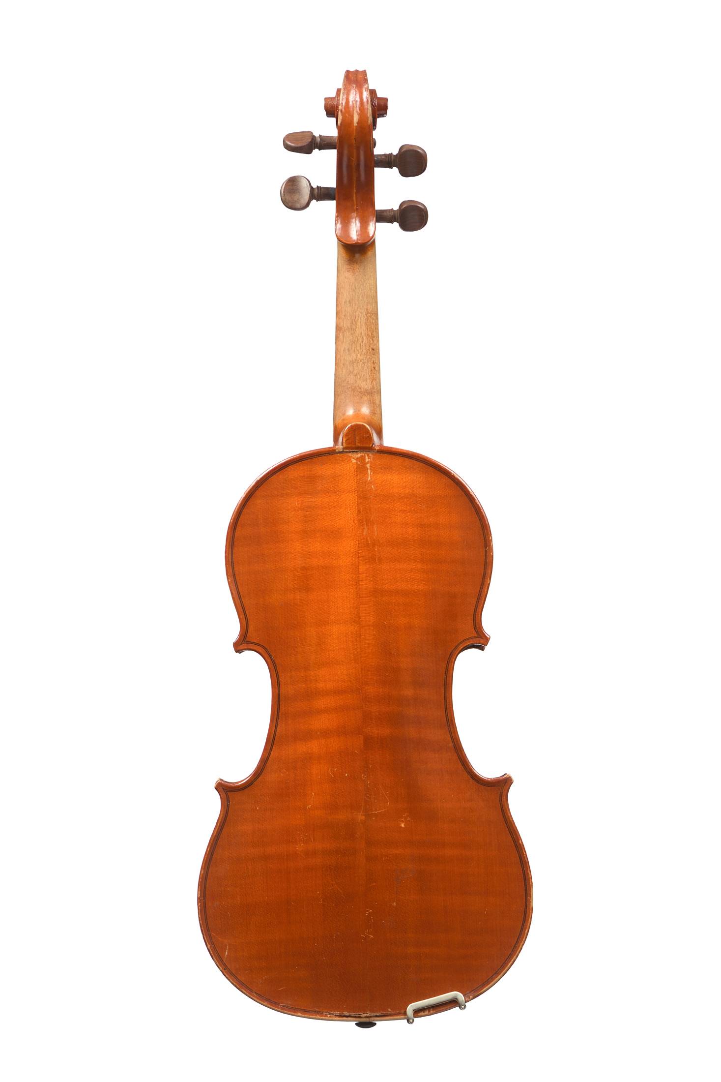 portant une étiquette "Fait en copie de Antonius Stradivarius. 1714...", "Choisi par Léon Bernardel". Fond de deux pièces en érable. Vernis brun orangé. Avec boite et archet cassé.