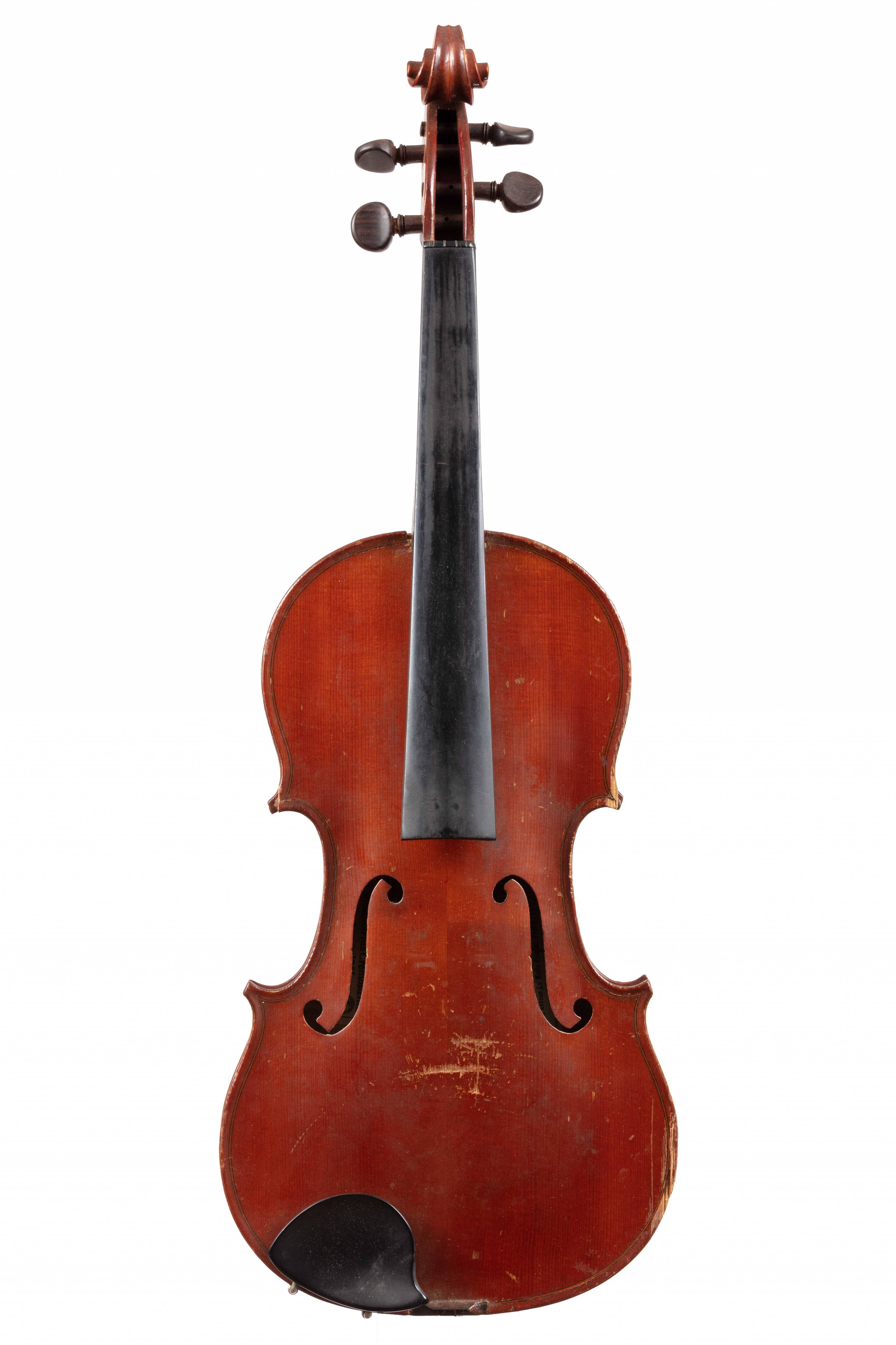 portant une étiquette "Antonius Stradivarius... 1721." , et celle de JP Beuscher "L'accord parfait...". Usures sur les bords.