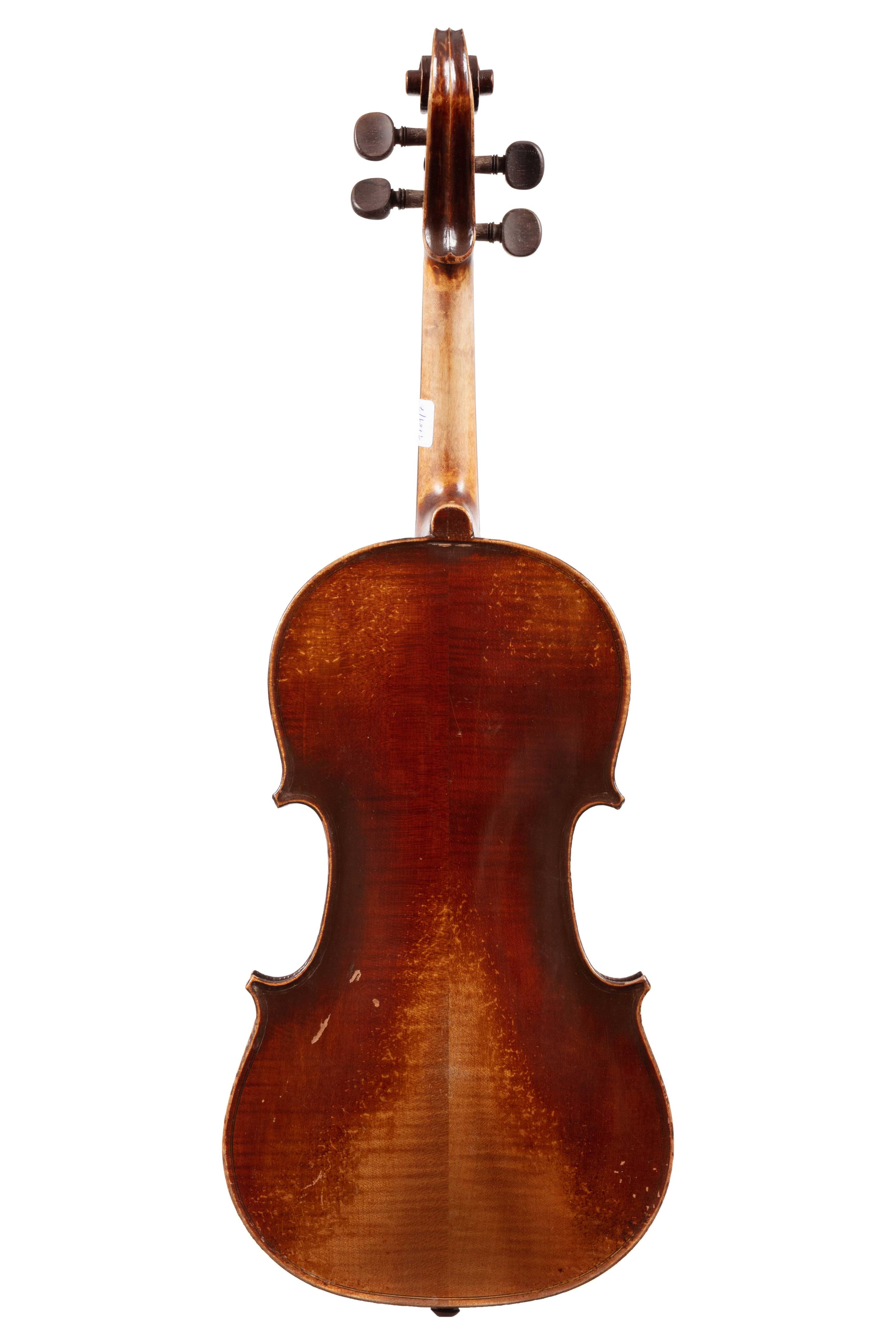 portant une étiquette " Georg Kloz... MItten 1779.". Fond de deux pièces en érable. Vernis brun sur fond doré. 359 mm.