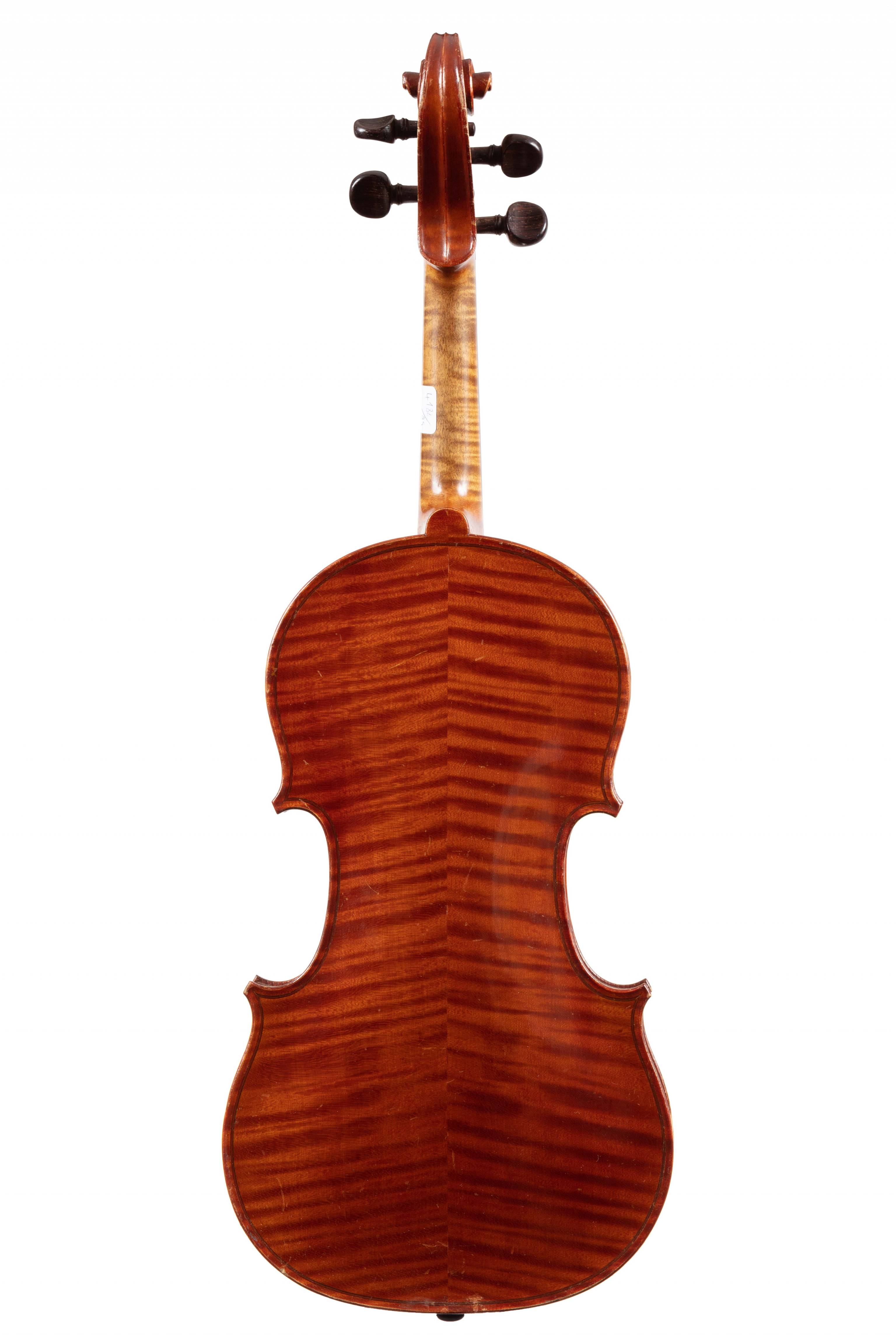 portant une étiquette "J DIDELOT. La lutherie Lorraine.". Fond de deux pièces en bel érable. Vernis brun orangé. 358 mm. Bon état général.