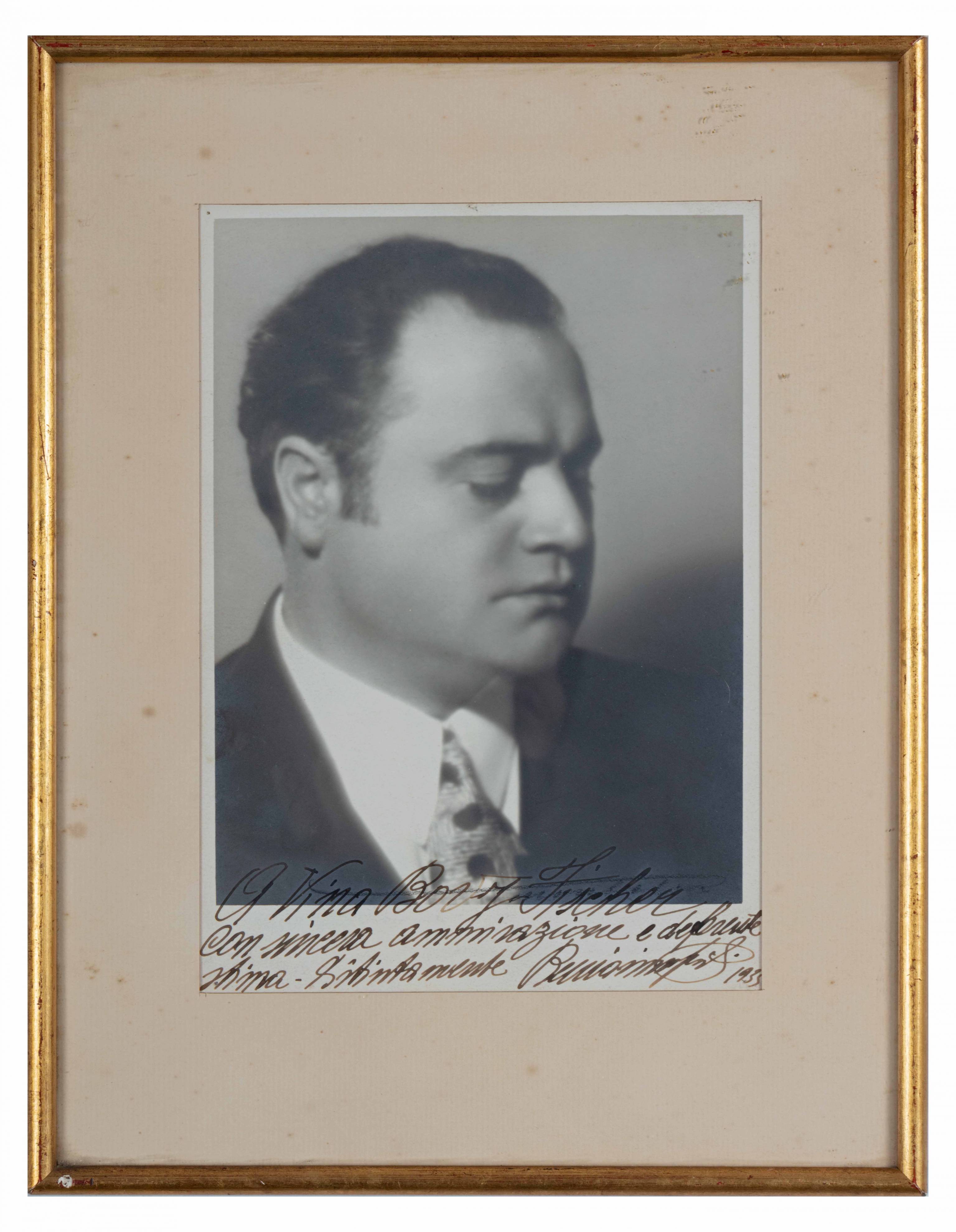 Photographie encadrée, dédicacée "A Vina Bovy-Fisher... 1935" Soprano Belge, par Beniamino Gigli, célèbre ténor Italien.