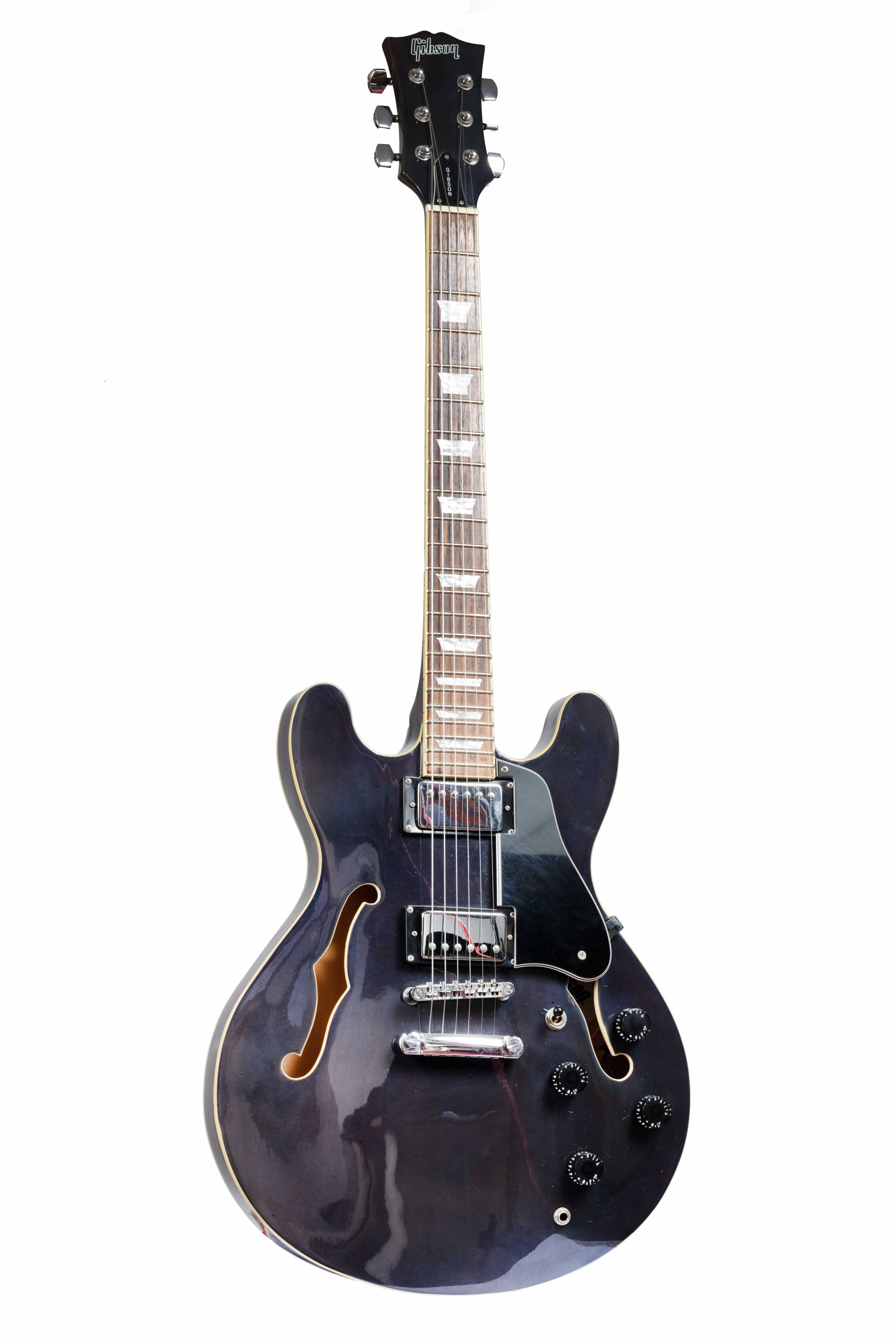 Imitation d'une GIBSON Chinoise (Type ES335). Couleur ardoise. Avec étui. L'ensemble à revoir.