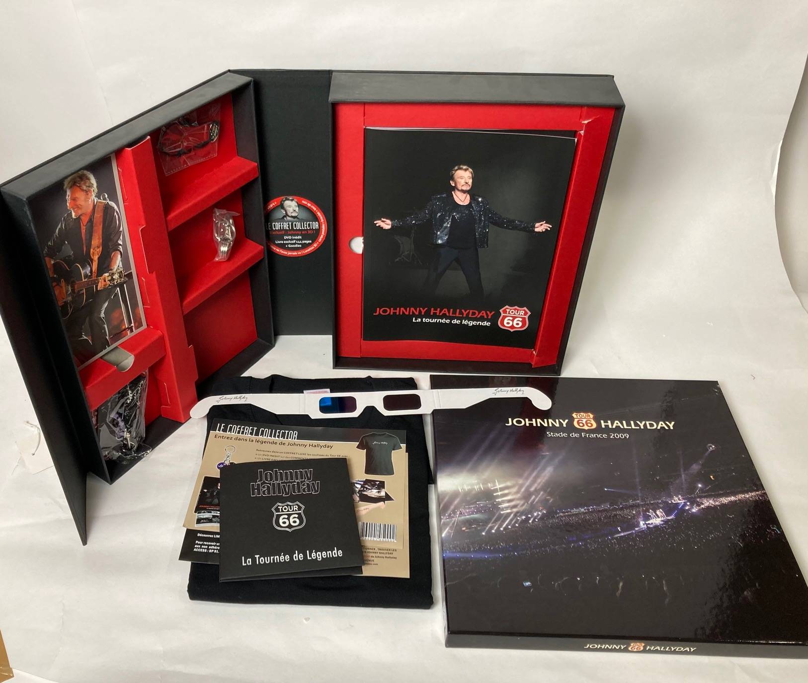 Lot de deux coffrets de Johnny HALLYDAY. TOUR 66. Avec goodies et t-shirt.