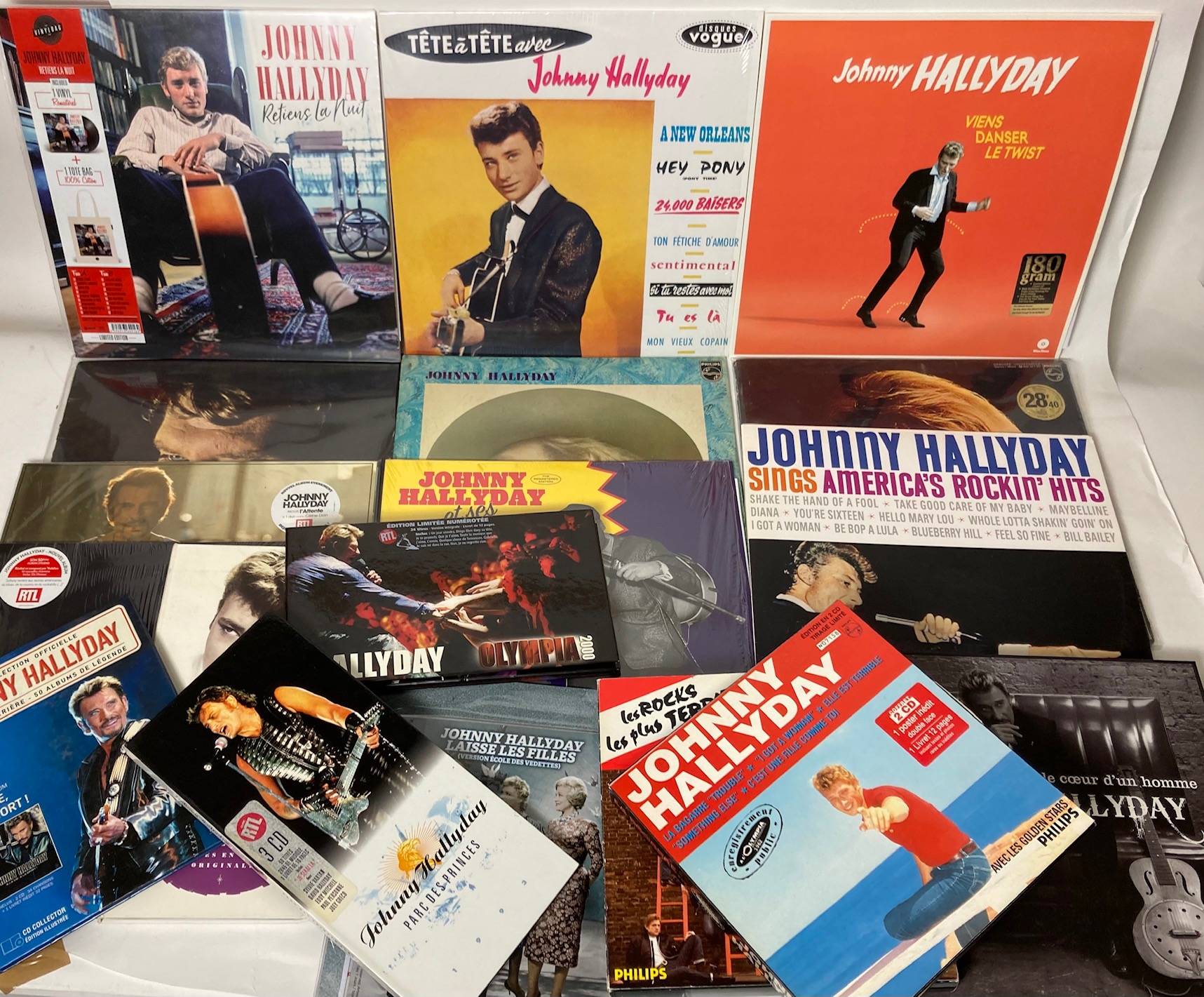 Lot de 19 x 33 tours et divers coffrets de Johnny HALLYDAY.
