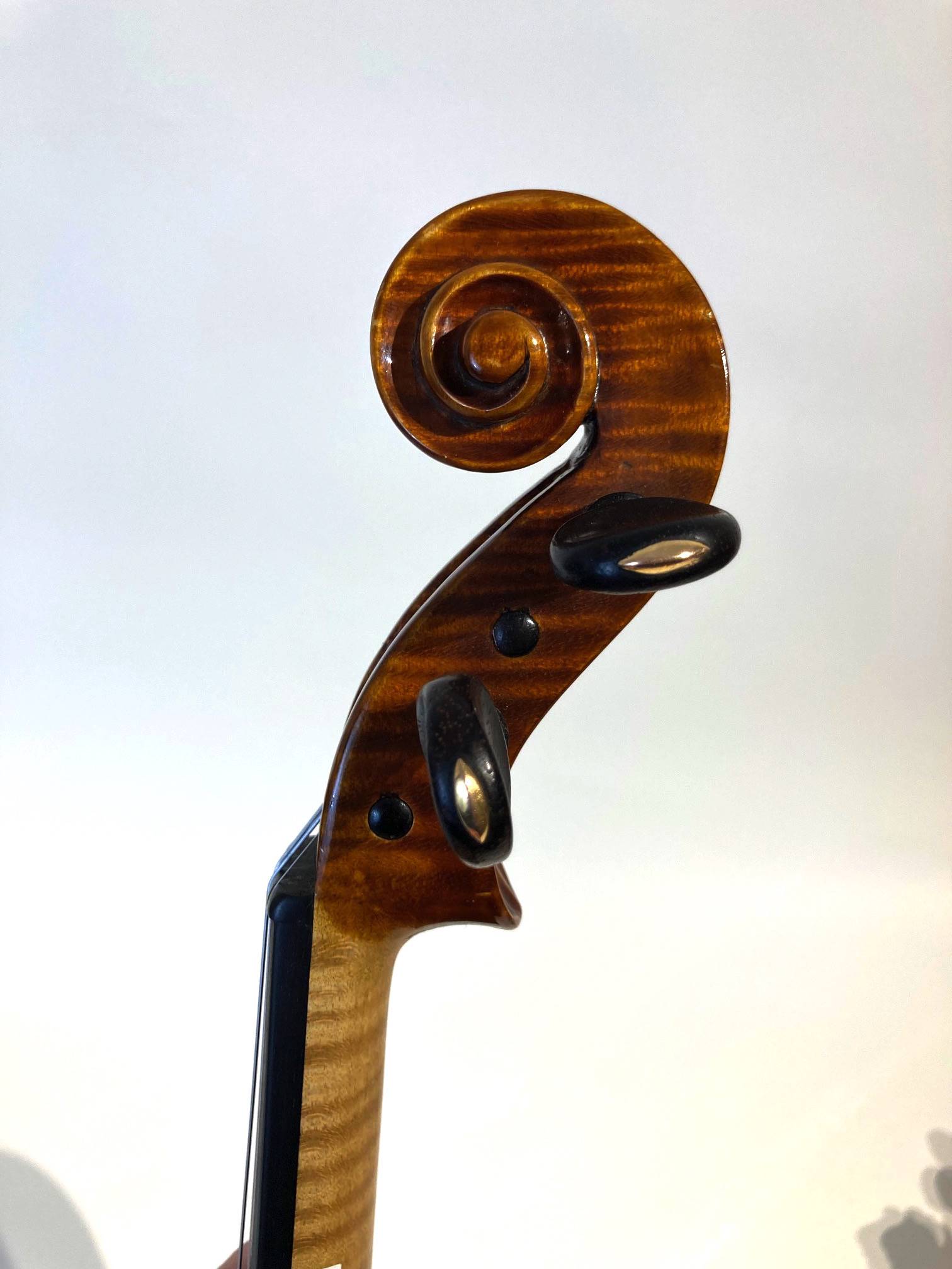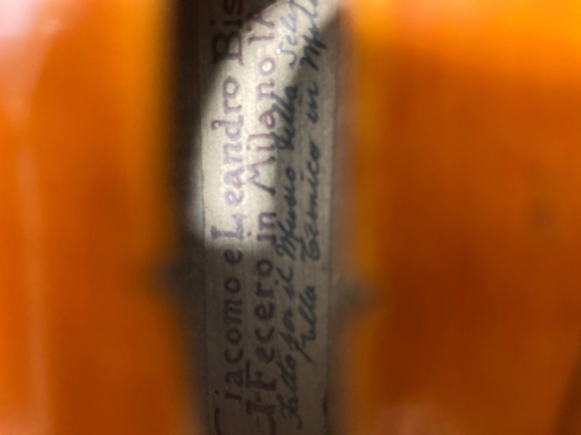 dont il porte l'étiquette "Giacomo Leandro Bisiach. 1961...". Fond de deux pièces en érable aux ondes régulières. Vernis brun doré. Avec certificat d'authenticité de Gilles Chancereul.