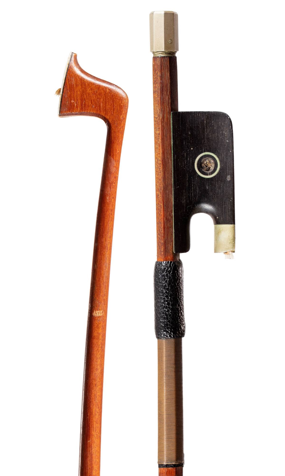 Baguette ronde en bois de pernambouc. Hausse ébène, à talon rond, monté maillechort.