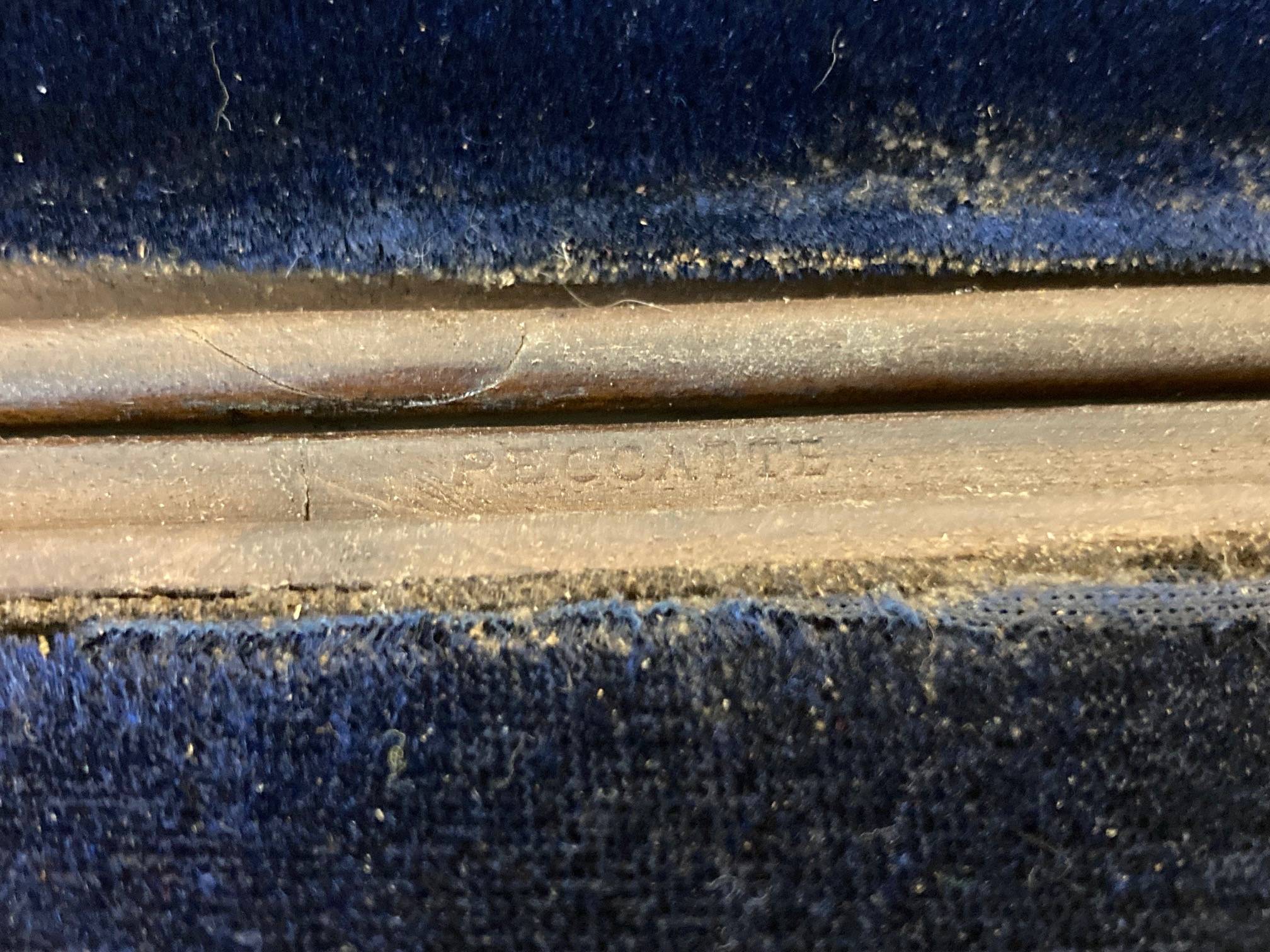 Belle boite de violoncelle en acajou de l'atelier Charles PECCATTE, portant les marques au fer. A restaurer.