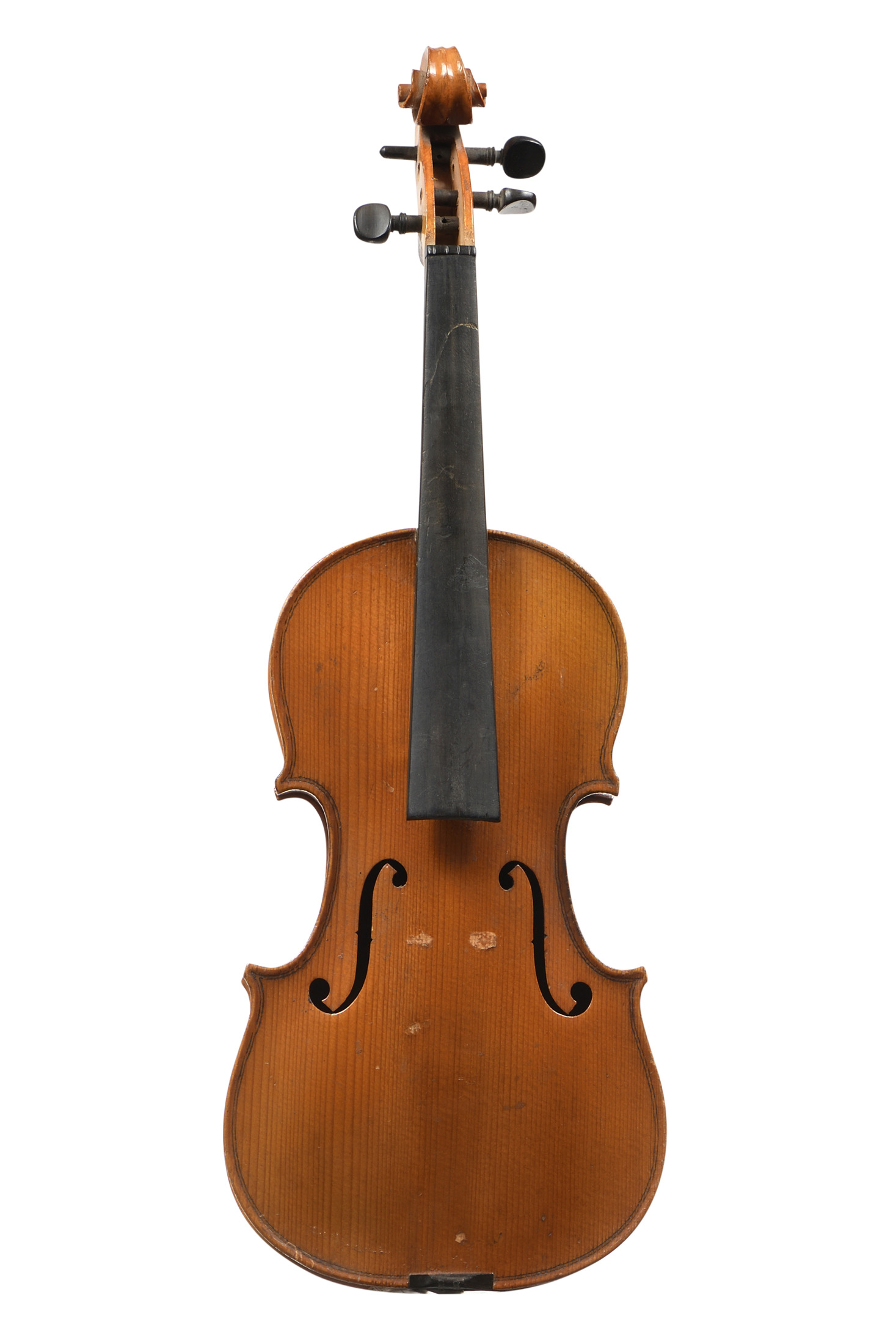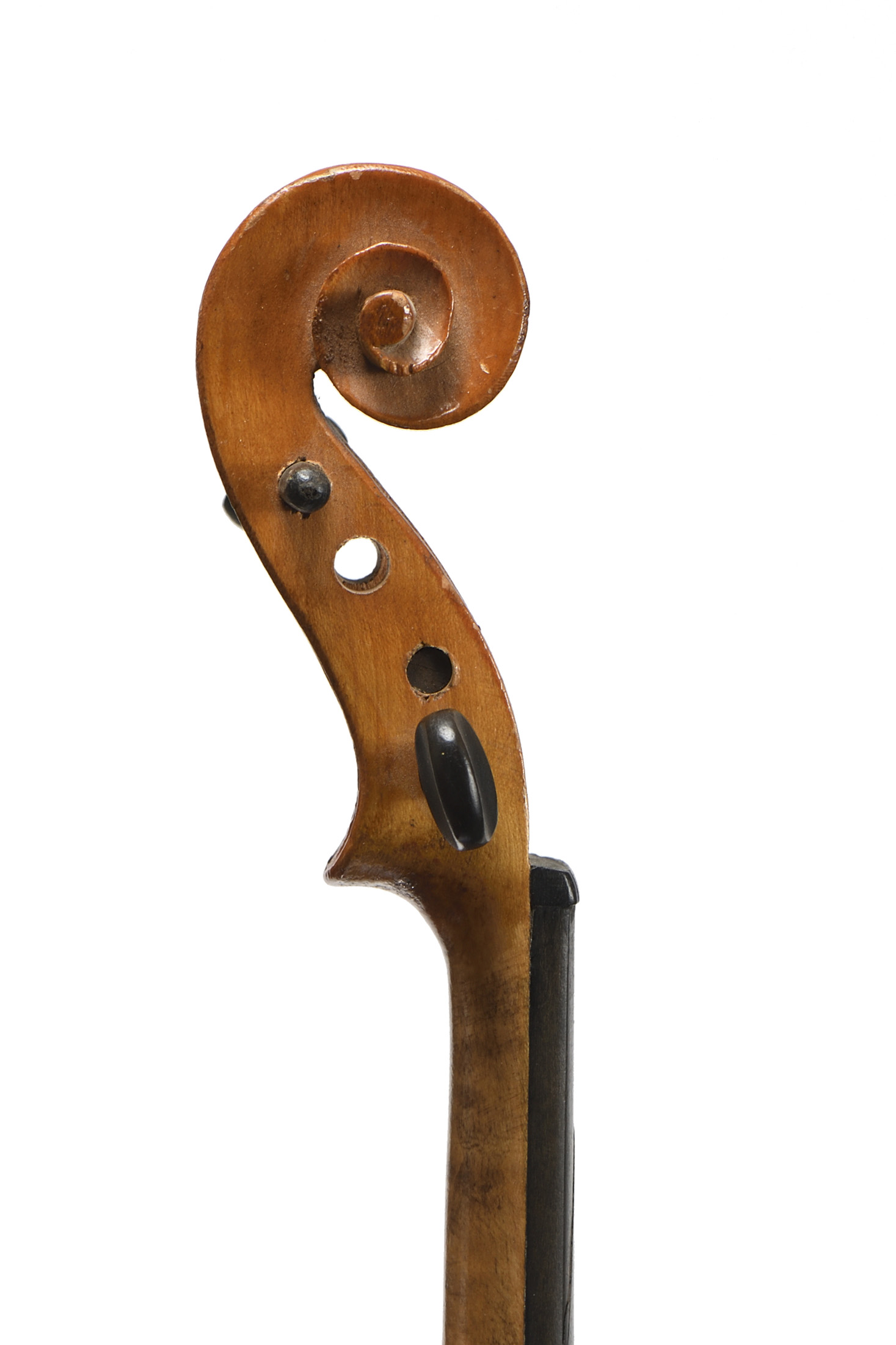 dont il porte l'étiquette. Fond d'une pièce. Vernis brun doré.
