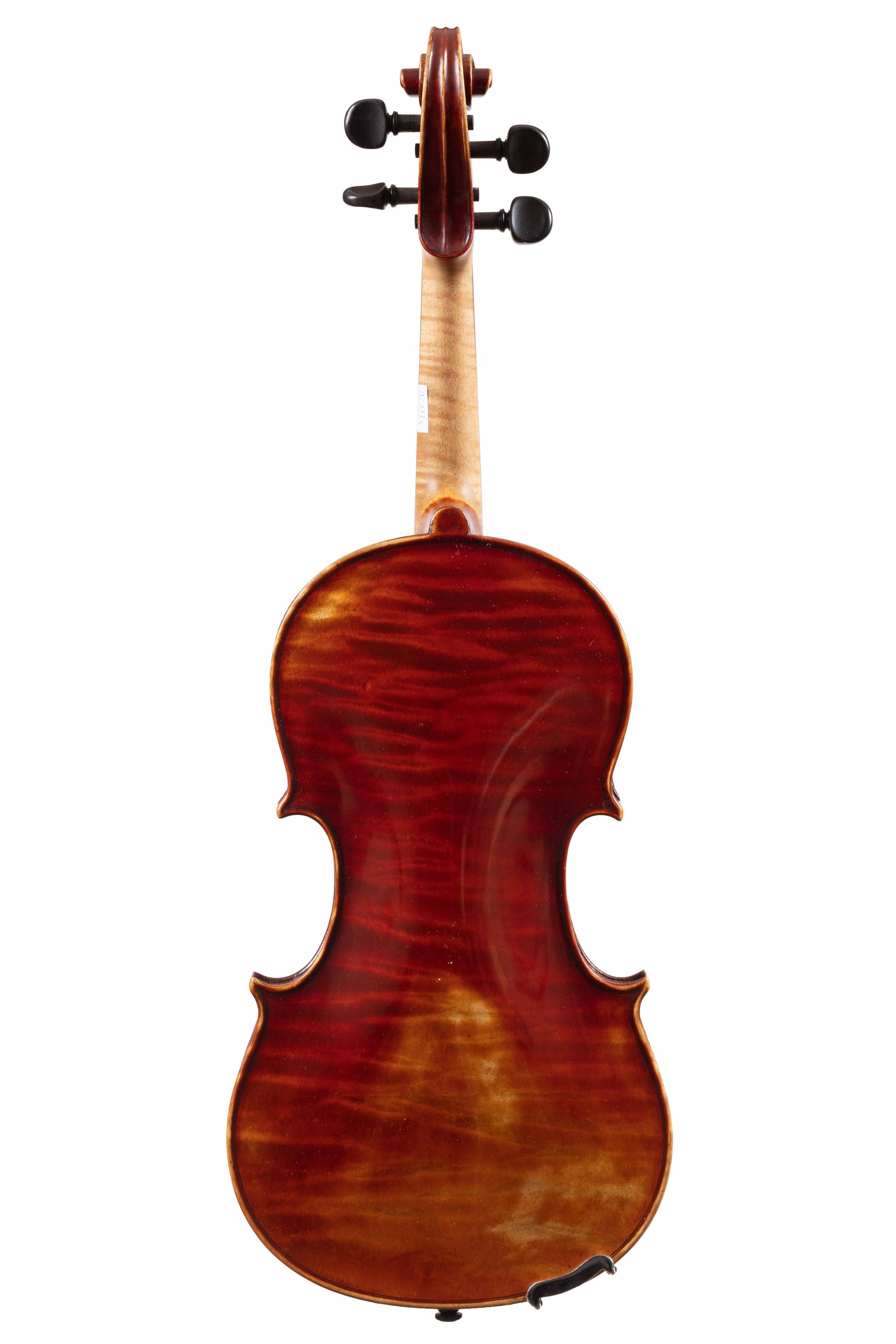 dont il porte l'étiquette au millésime de 1923. Fond d'une pièce en bel érable maillé. Table en épicéa. Vernis brun rouge sur fond doré. Avec certificat de Gilles Chancereul.