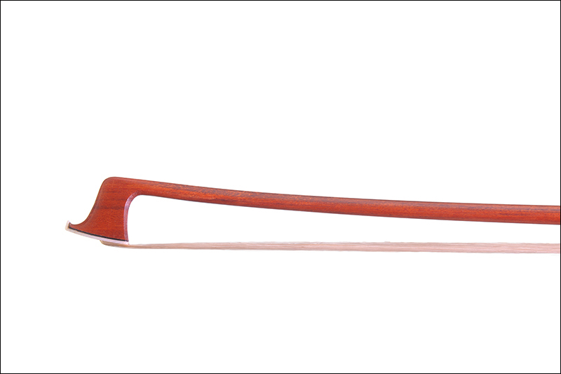 Archet de violon fait à Mirecourt. Baguette en pernambouc. Hausse ébène à talon rond montée maillechort. 721 mm, 55,4 g