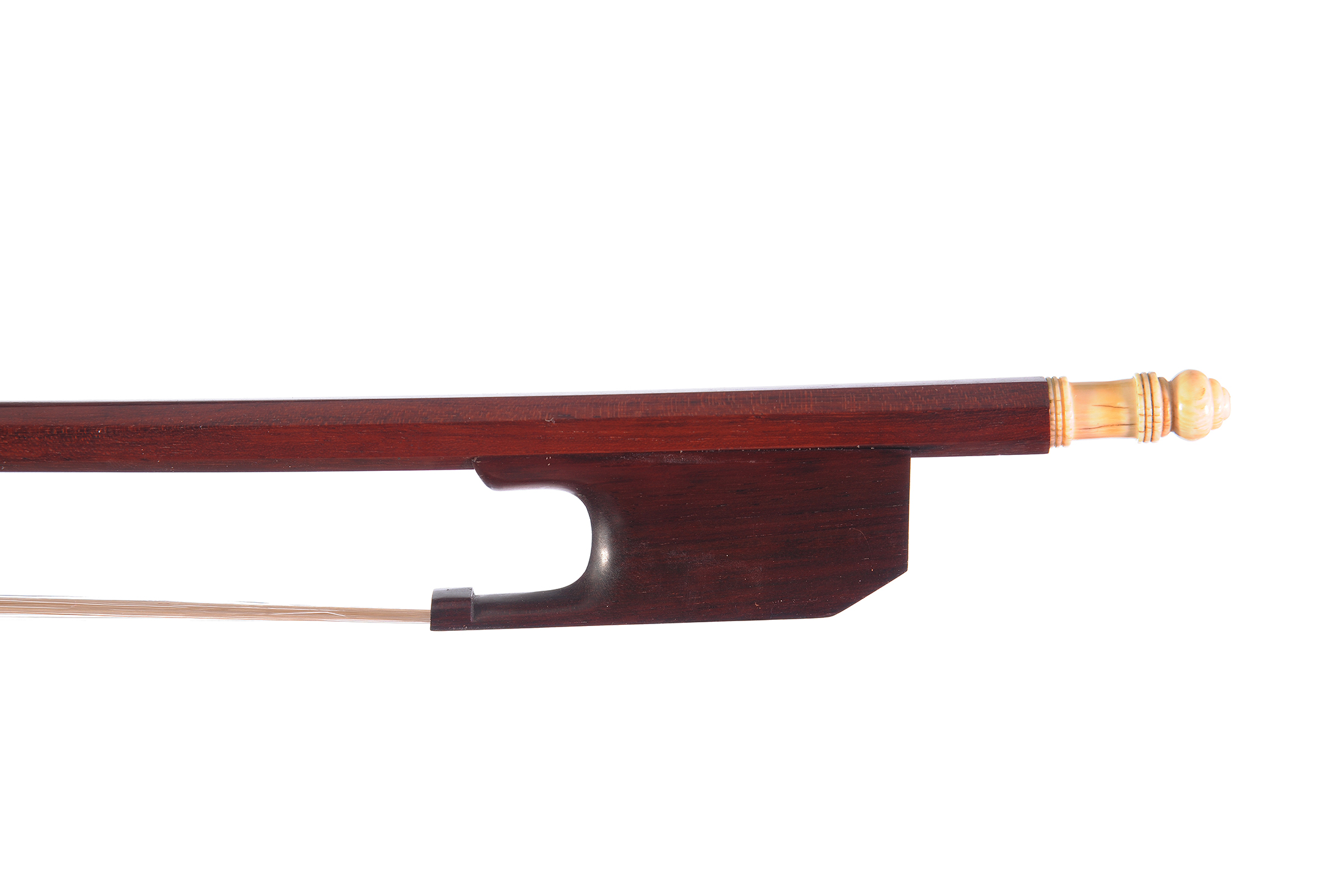Archet de viole de gambe en pernambouc, hausse en amourette, bouton en ivoire.