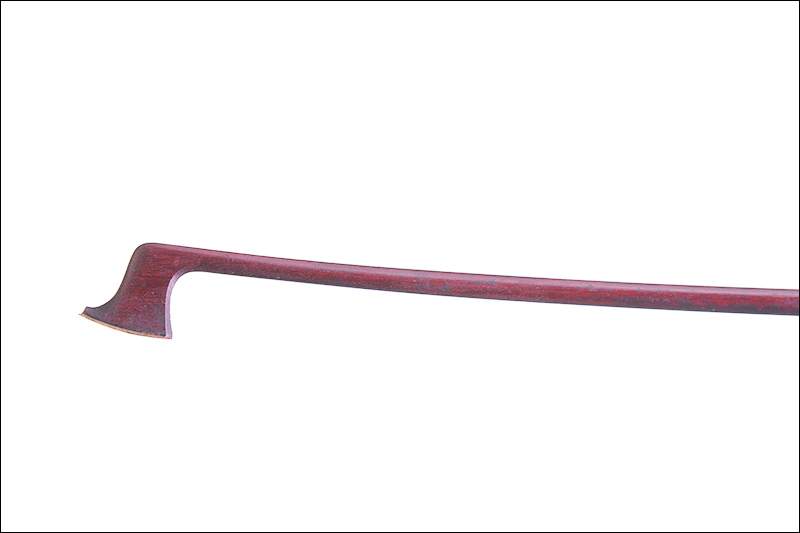 Archet de violon, en bois exotique, fait à Mirecourt. Fin XIXème. Hausse en ébène montée maillechort.