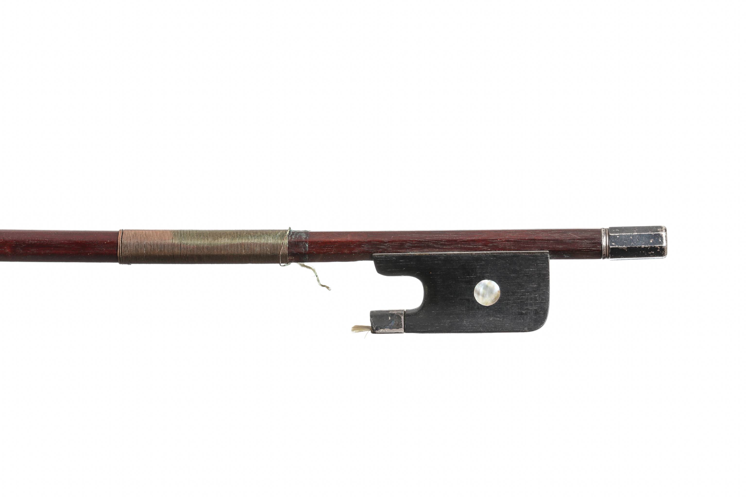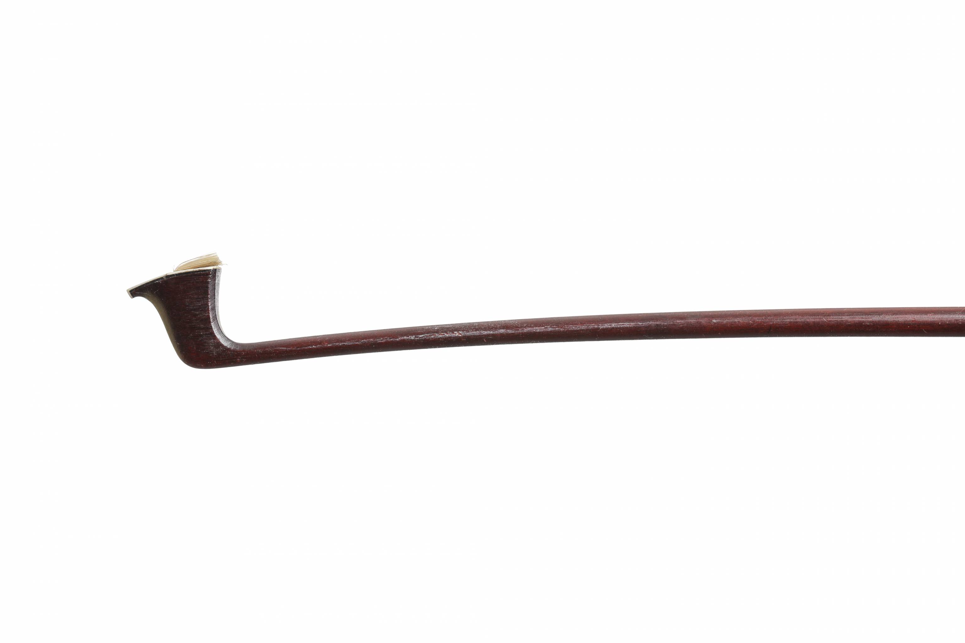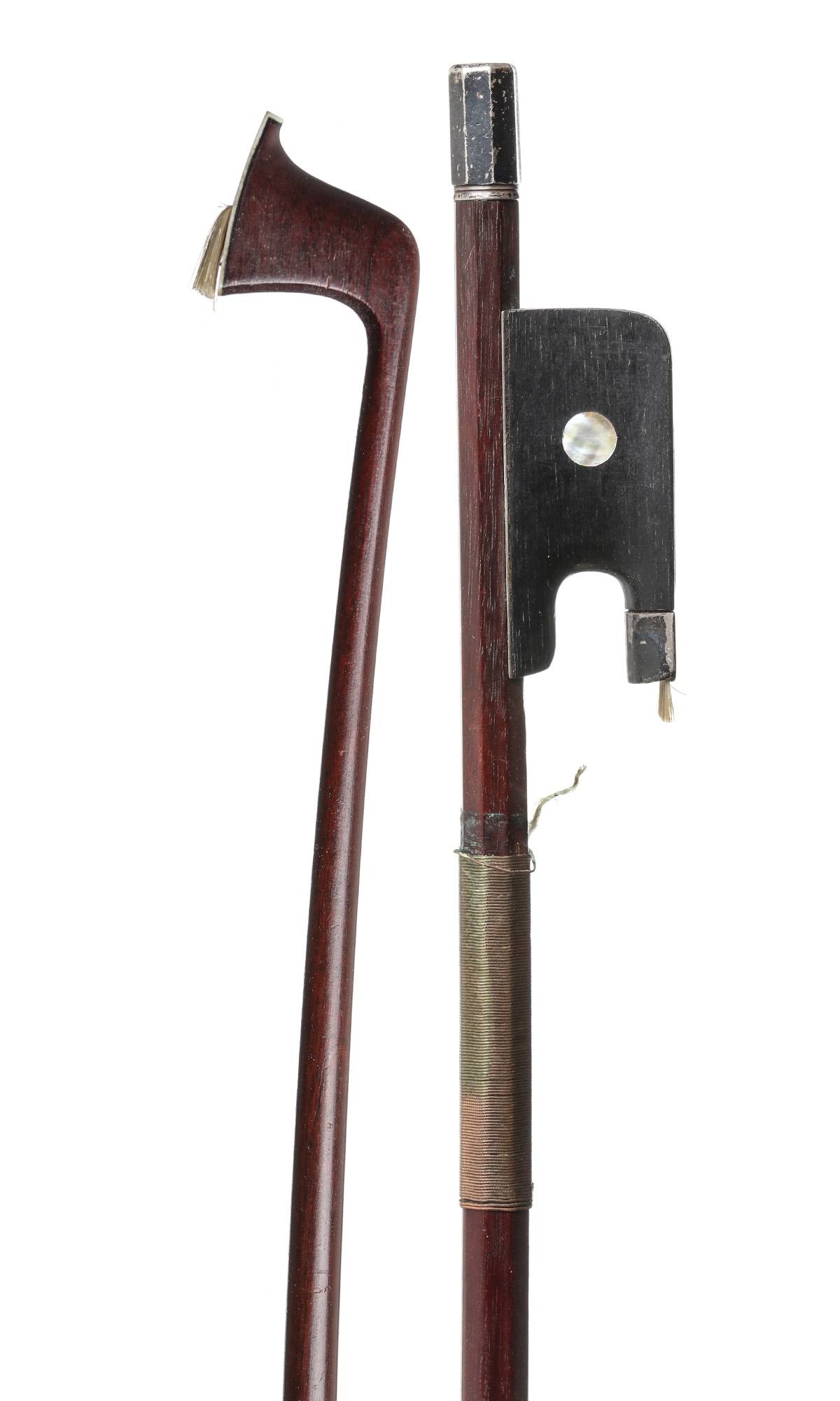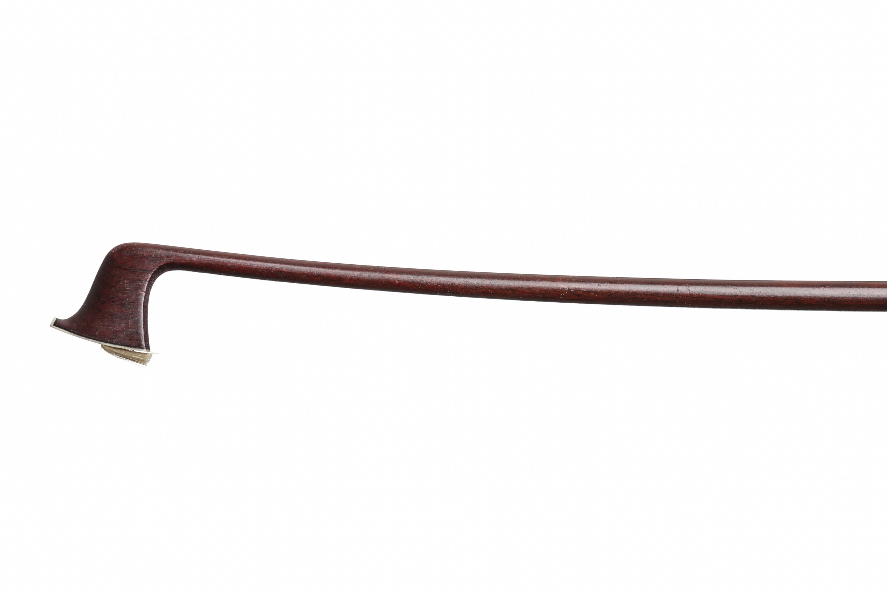 Baguette ronde en bois de pernambouc. Hausse ébène à talon rond, monté argent. 730 mm. 55 g sans mèche.