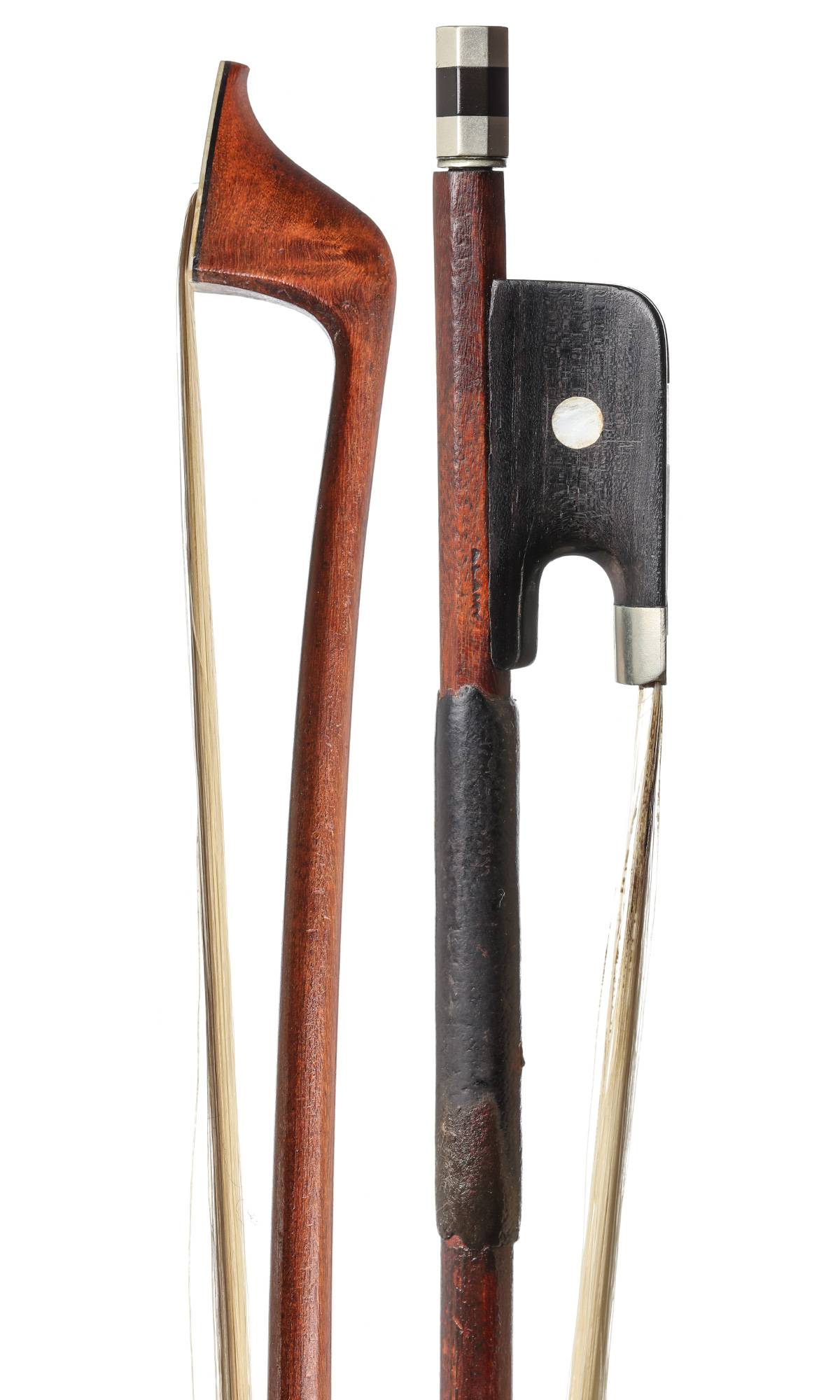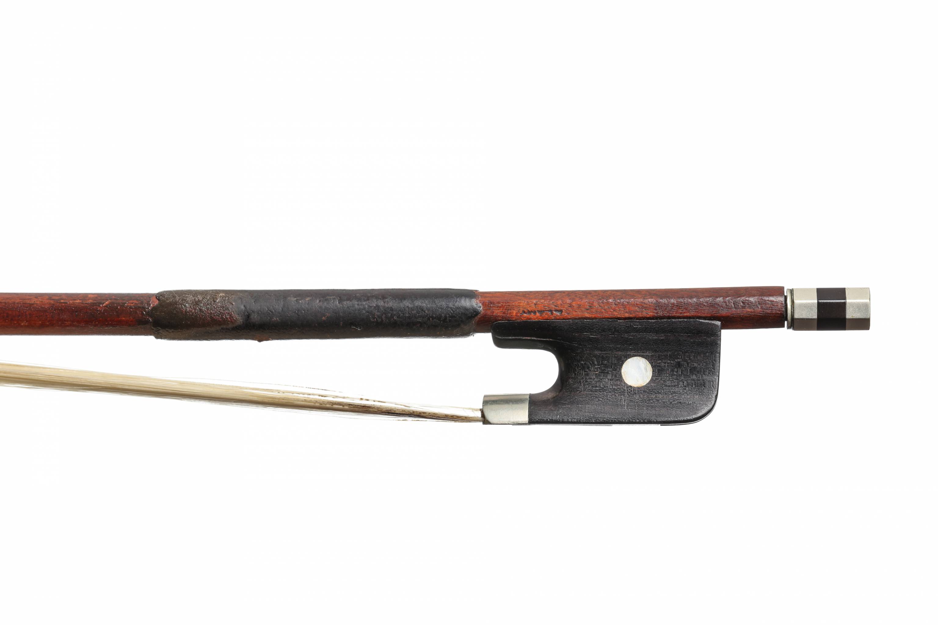 portant la marque au fer apocryphe "A.LAMY". Baguette ronde en bois de pernambouc. Hausse ébène, monté maillechort. 696 mm. 72 g avec garniture cuir et presque sans mèche.