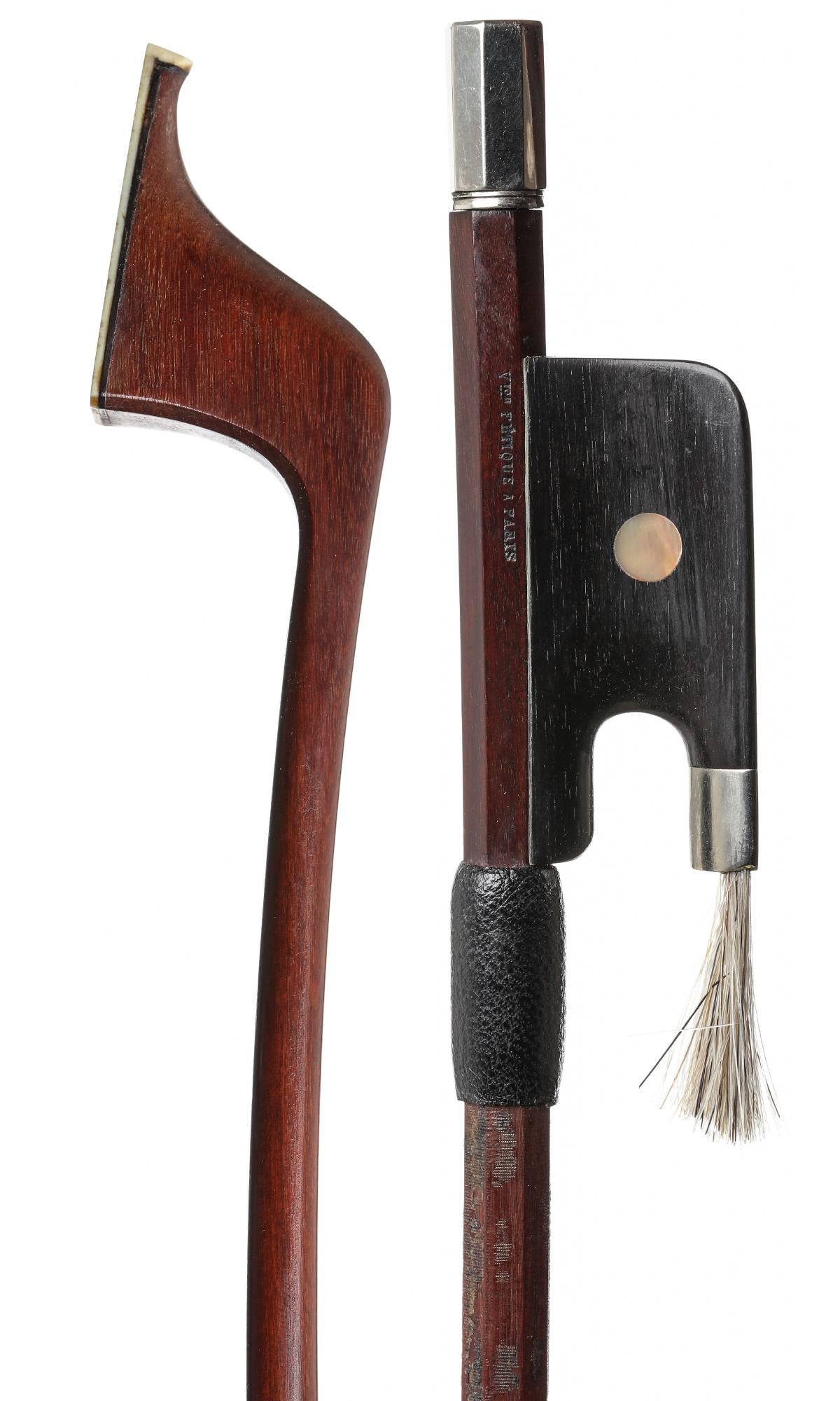 portant la double marque au fer de "Vtor FETIQUE A PARIS"., fait vers 1930. Belle baguette ronde en bois de pernambouc.