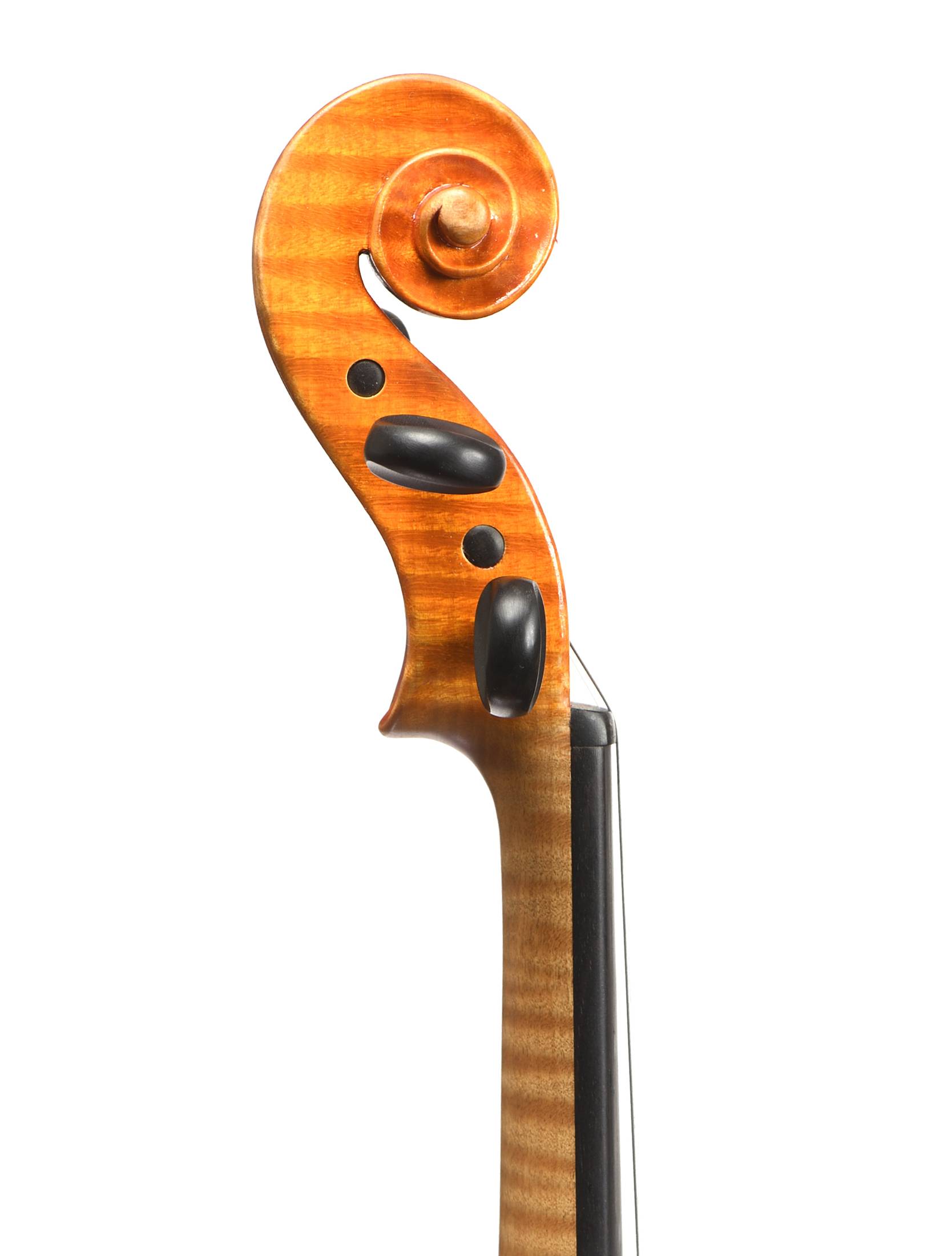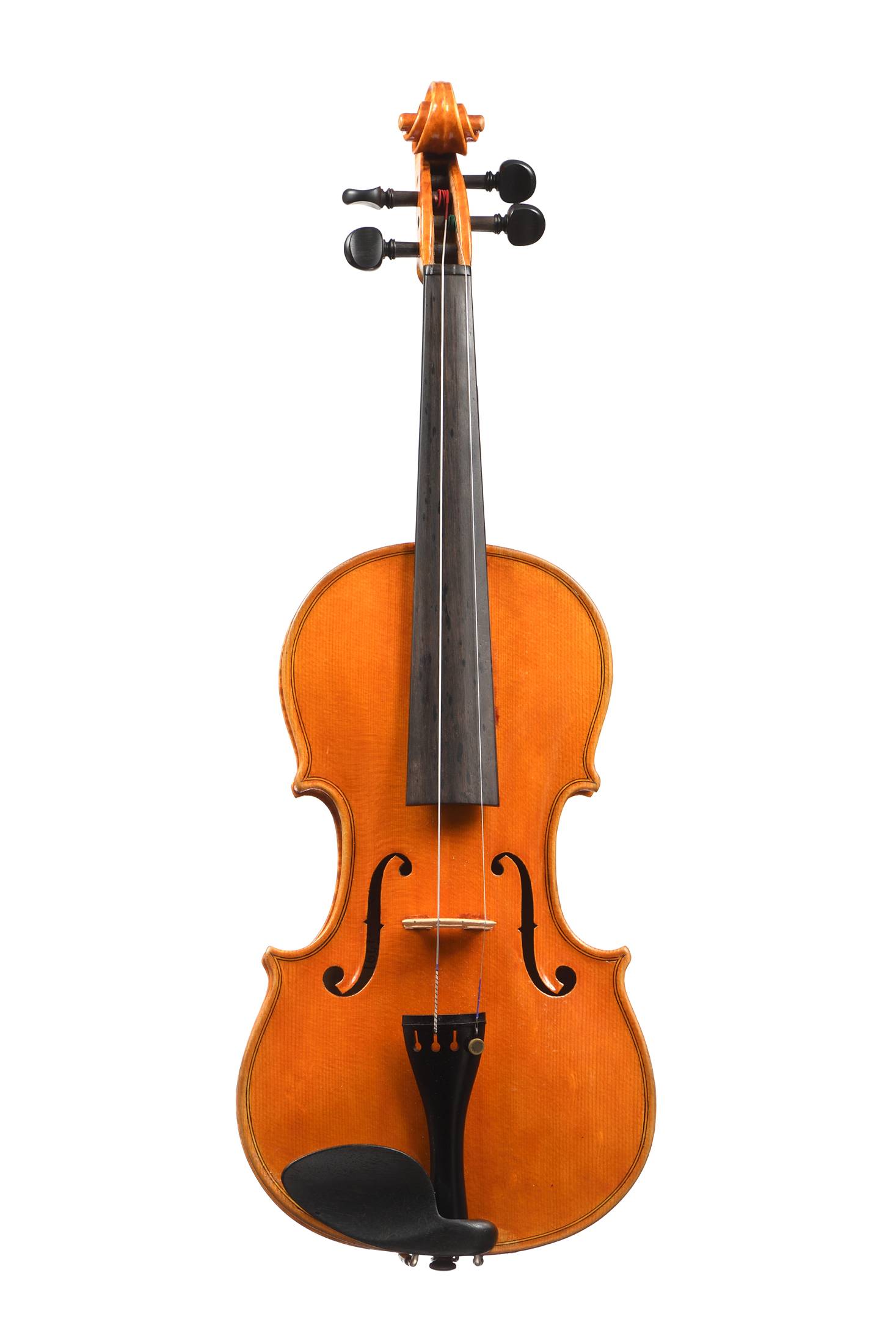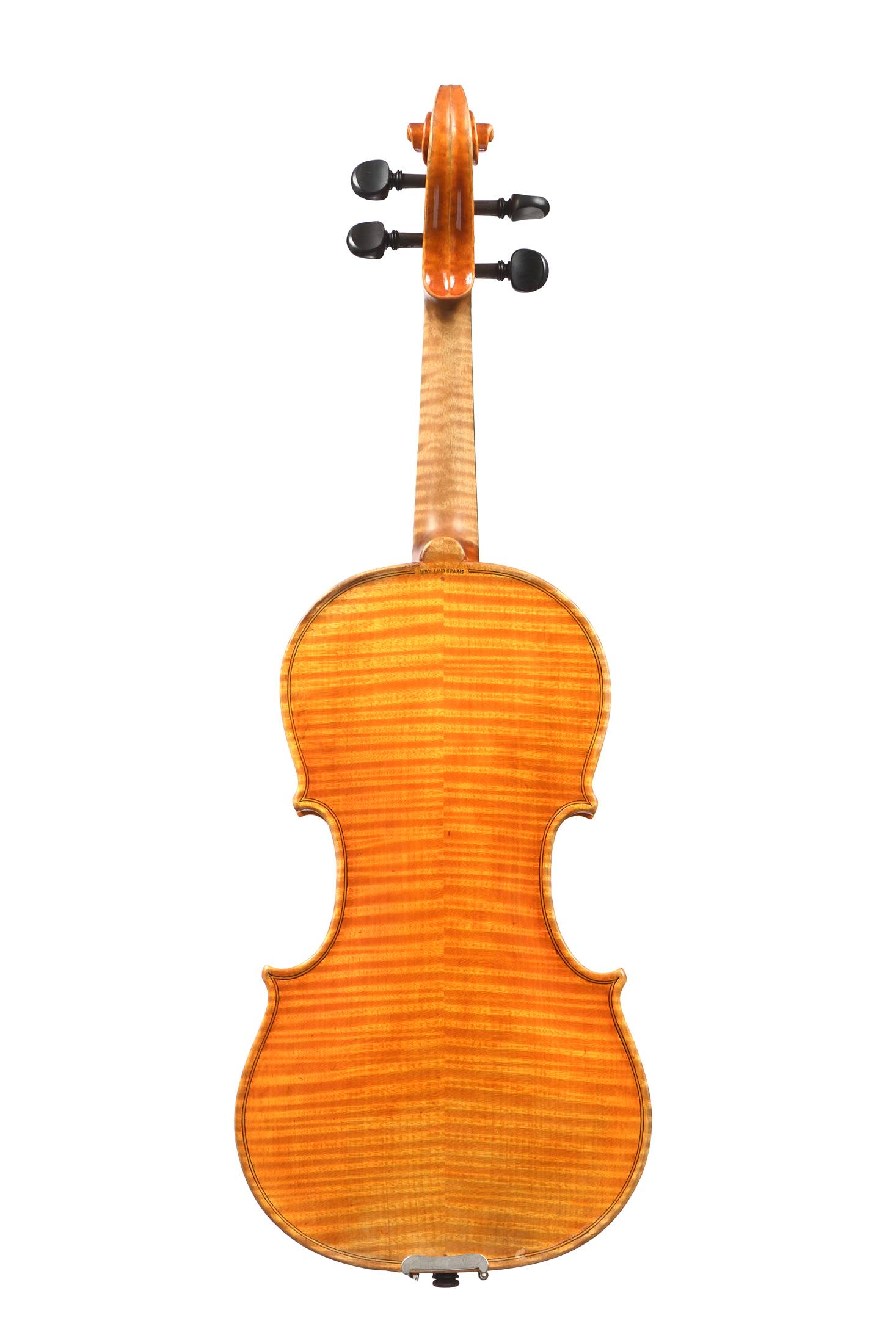 Premier ouvrier de la maison Vatelot, portant une signature à la plume "M.Boillaud à Paris 1991", et la marque au fer "M.BOILLAUD A PARIS". Fond de deux pièces en érable. Vernis orangé brun sur fond doré. Bon état général. 356 mm.