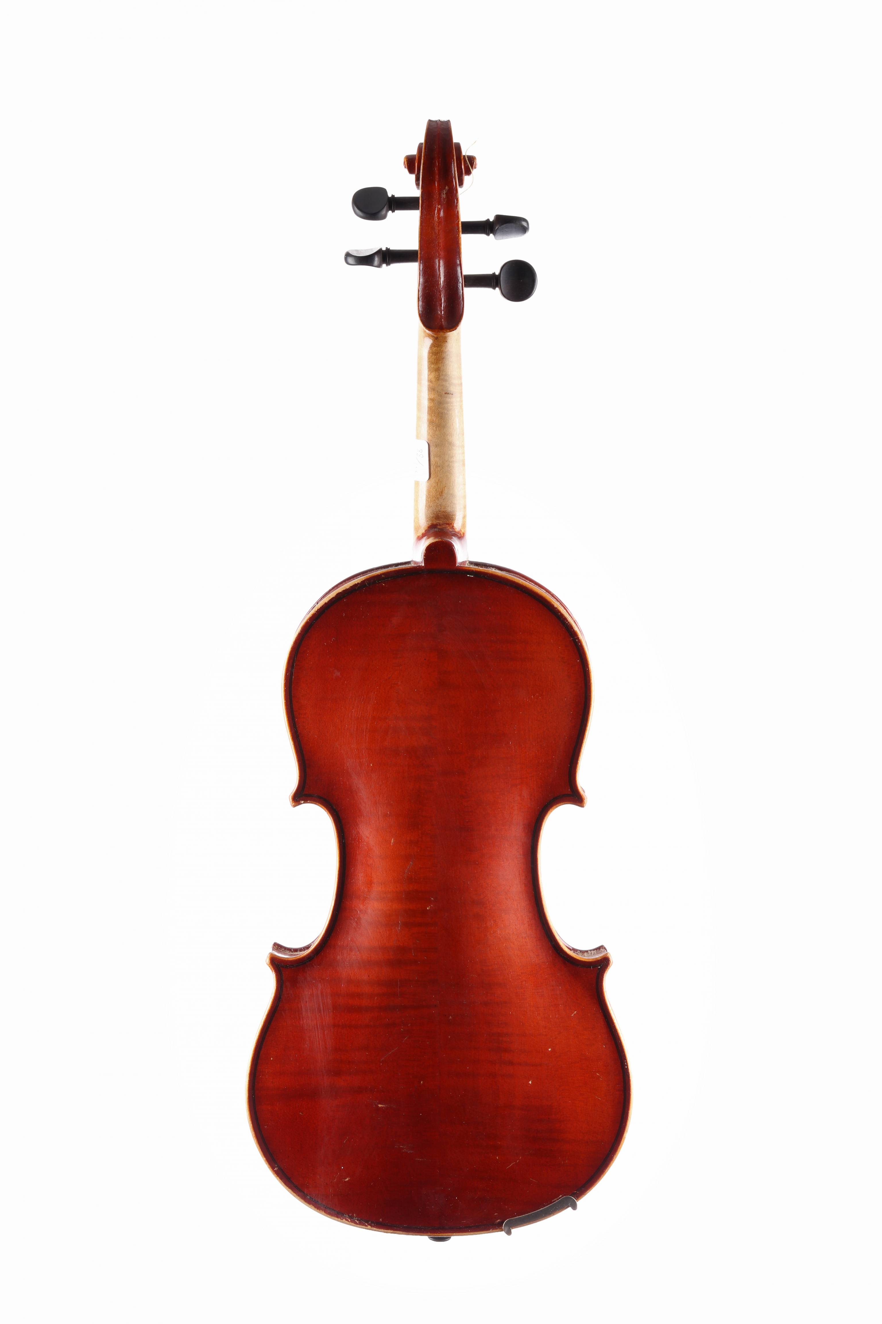 portant une étiquette "Antonius Stradivarius... 1721. Made in Germany". Fond de deux pièces en érable. Vernis brun rouge. 360 mm.
