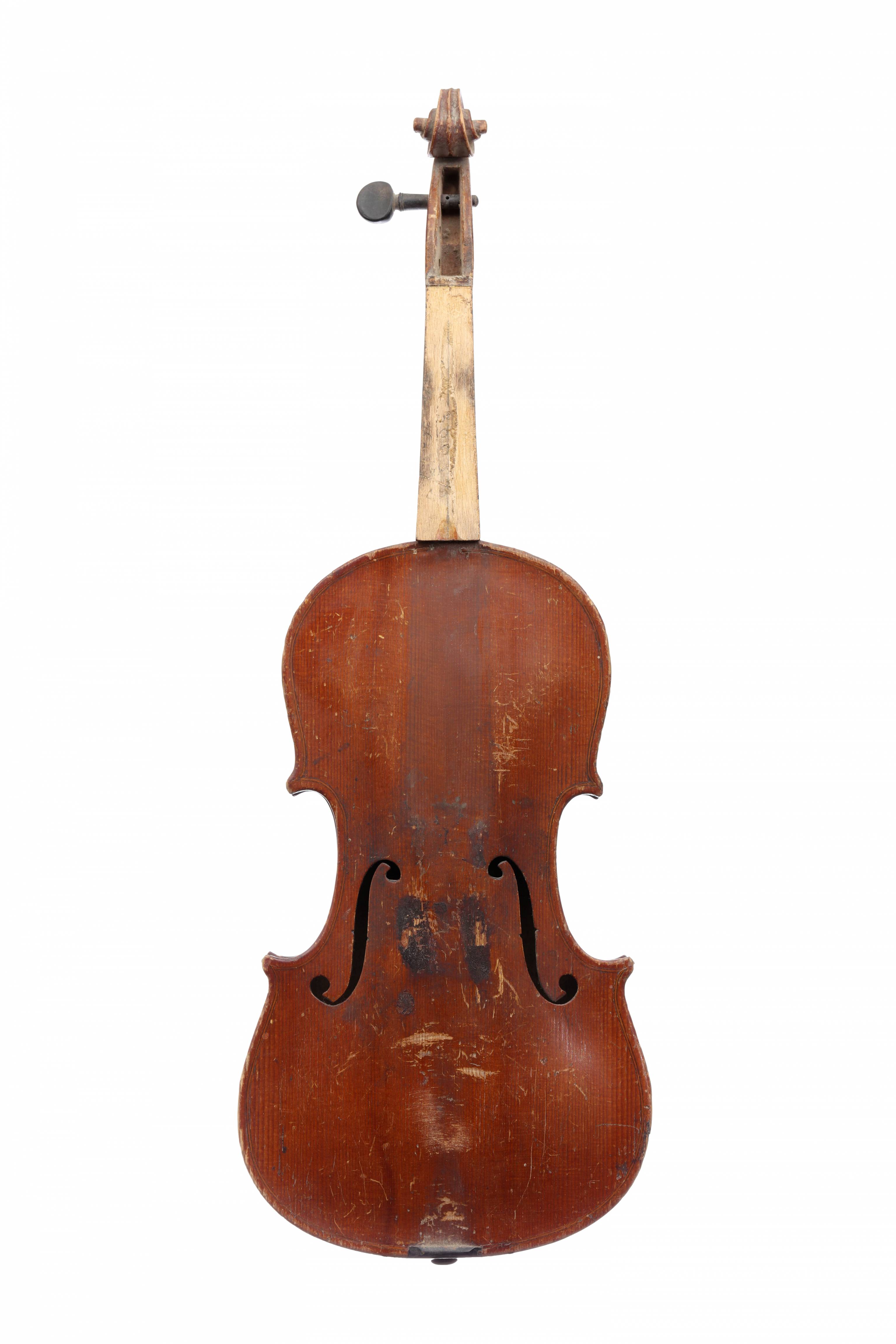 Fond de deux pièces en érable. Vernis brun doré. 359 mm. En l'état