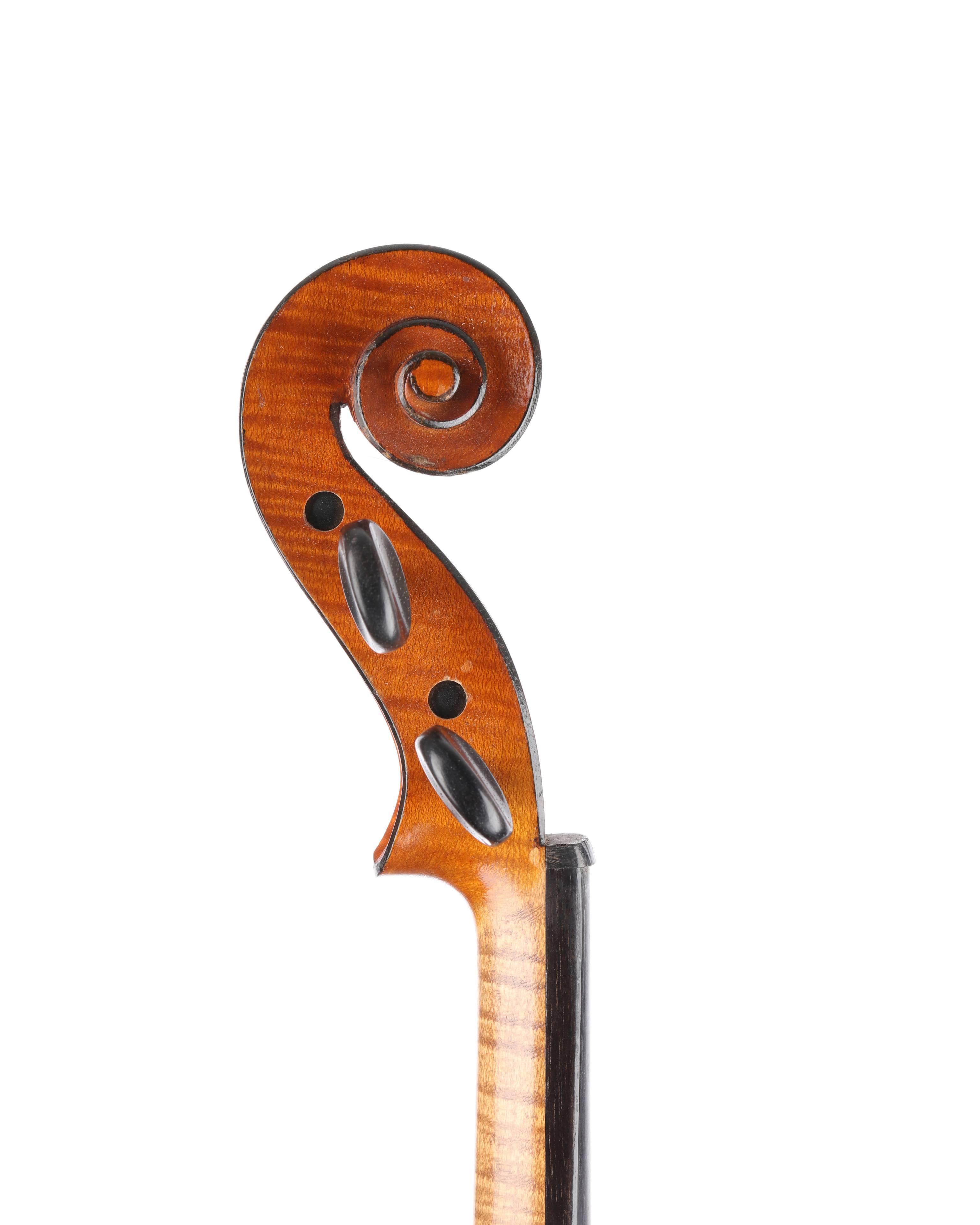 portant une étiquette "Nicolas BERTHOLINI...". Fond de deux pièces en érables. Vernis orangé brun sur fond doré. 361 mm. Avec boite et archet.