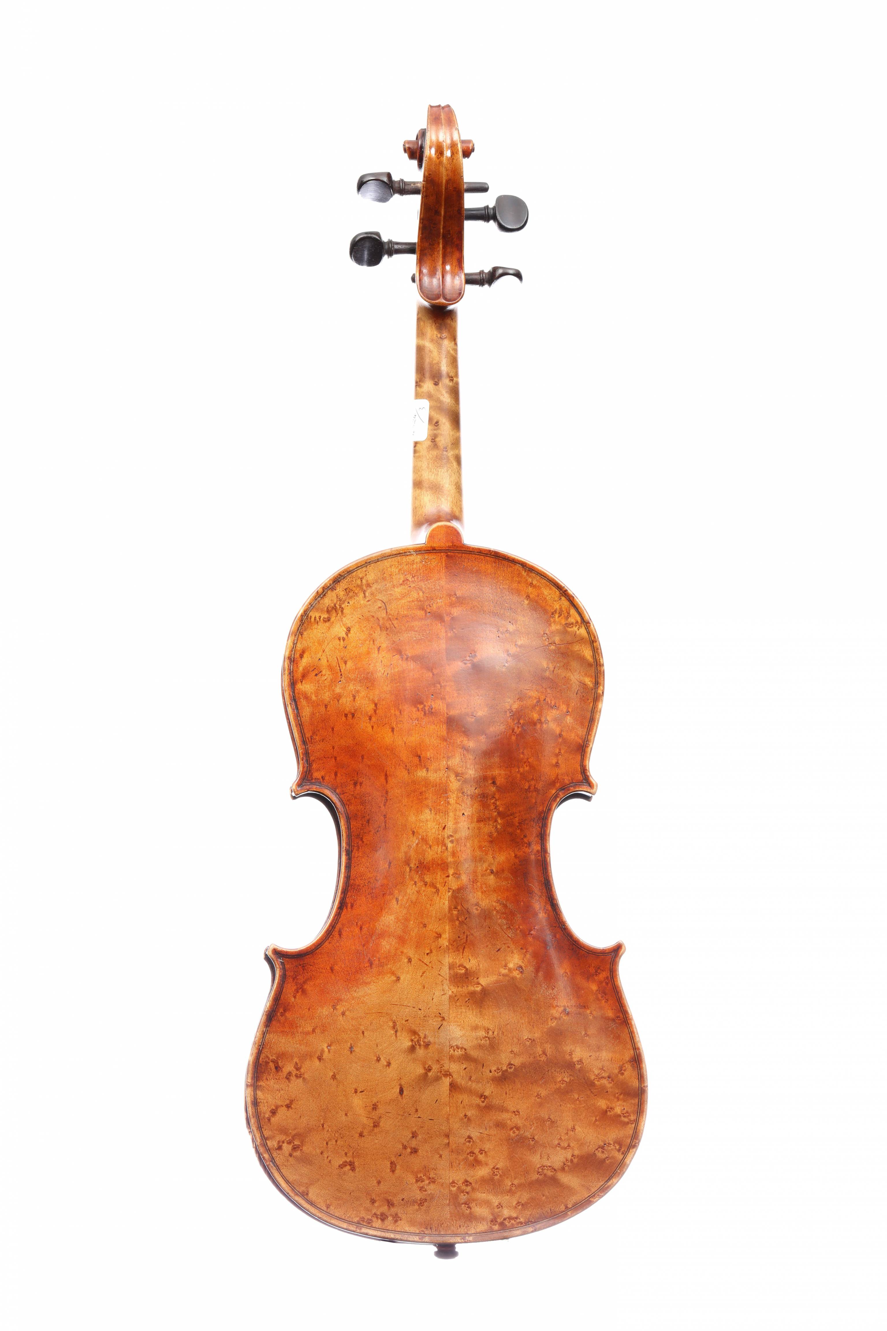 portant une étiquette "Nicolaus Amatus...". Fond de deux pièces en érable moucheté. 362 mm.