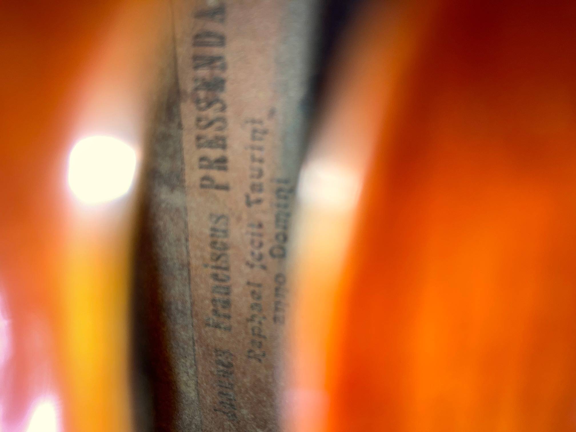 Probably Italian violin, made in Turin. It bears the label " Franciscus PRESSENDA...".