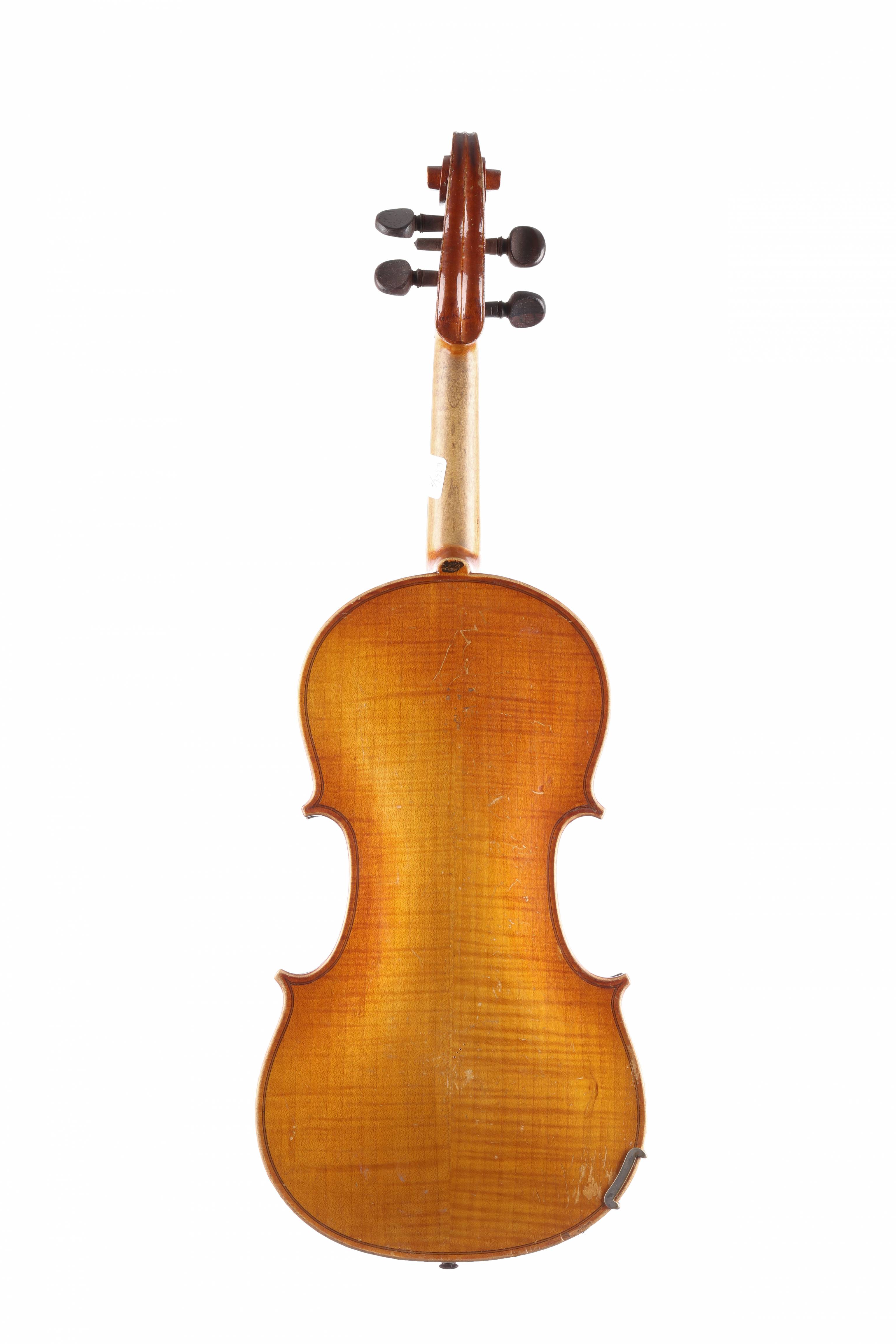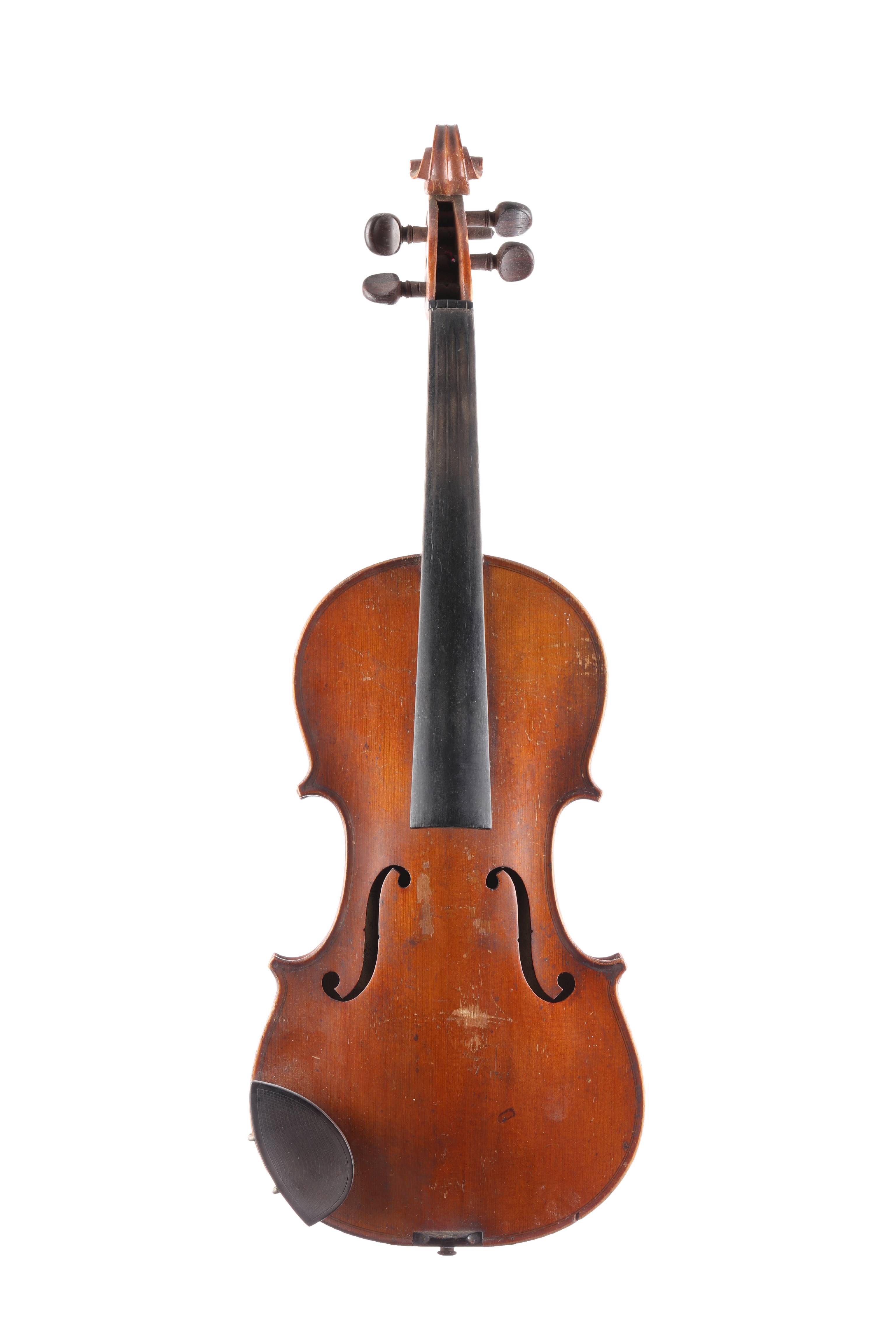 F.BRETON dont il porte l'étiquette et la marque au fer au talon du manche. Fond de deux pièces en érable. Vernis orangé brun. 359 mm. Avec boite.