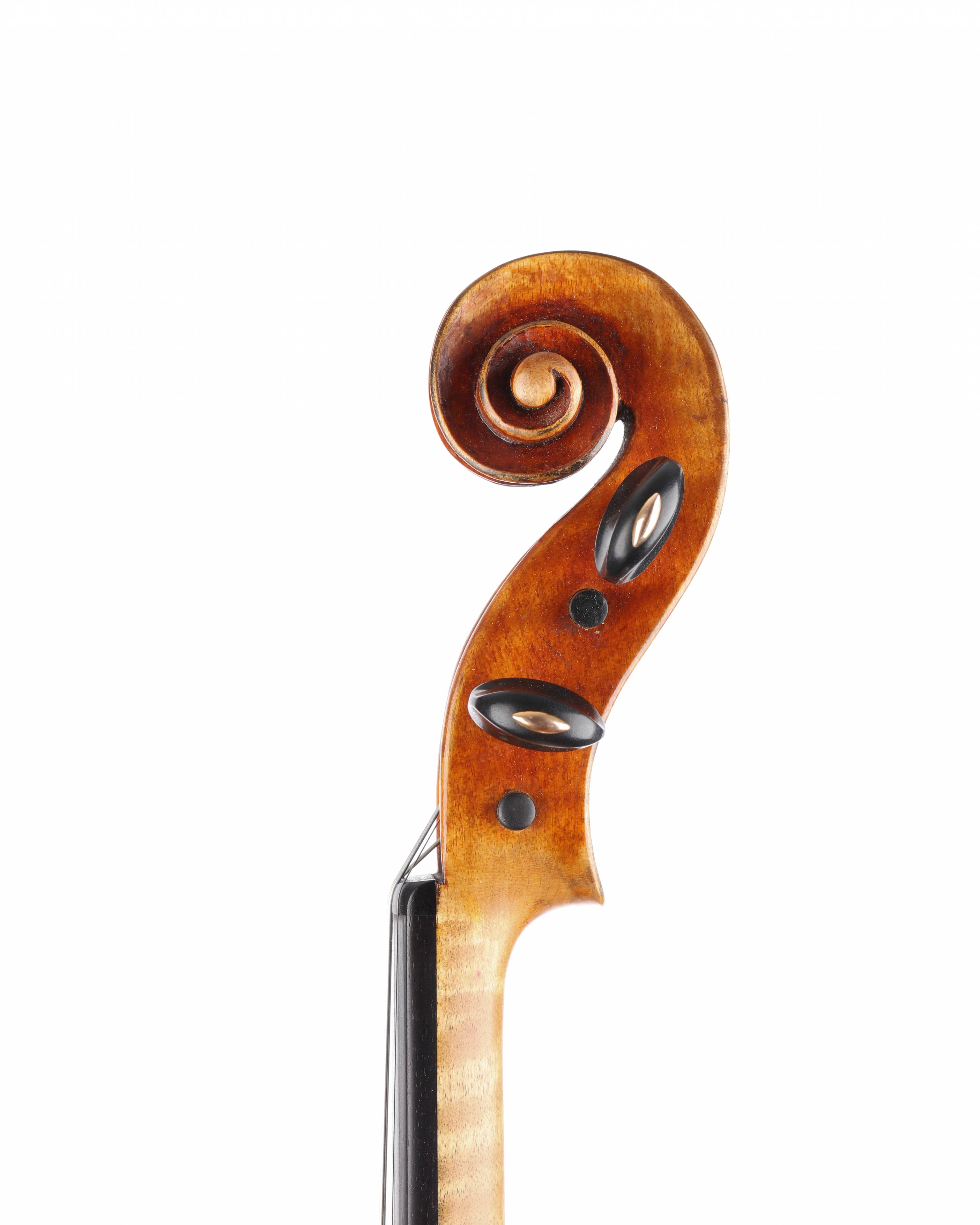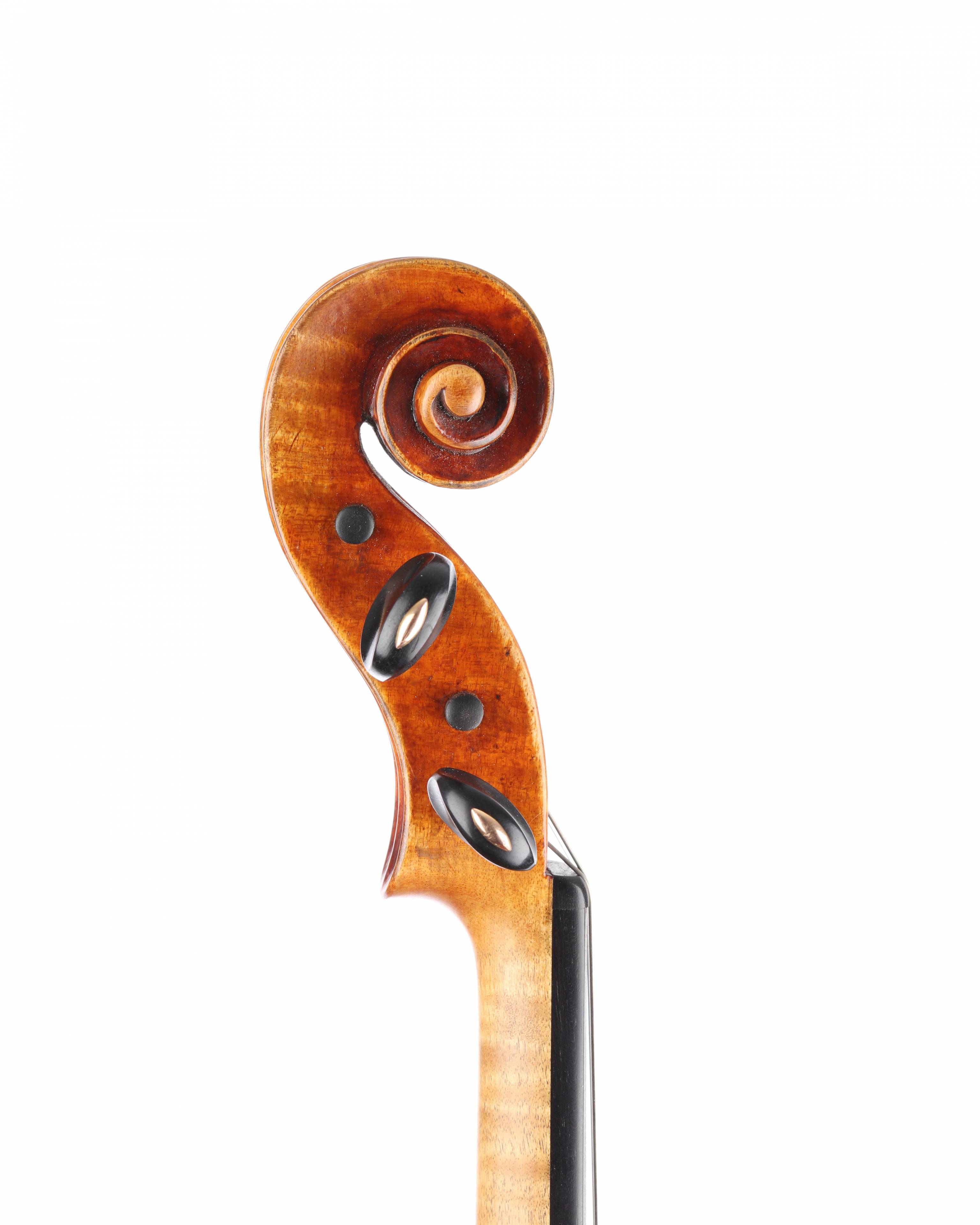dont il porte l'étiquette " Vincenzo SANNINO fece in Roma...1958". Fond d'une pièce en érable. Vernis orangé brun sur fond doré. Avec certificat de Gilles Chancereul. 352 mm.