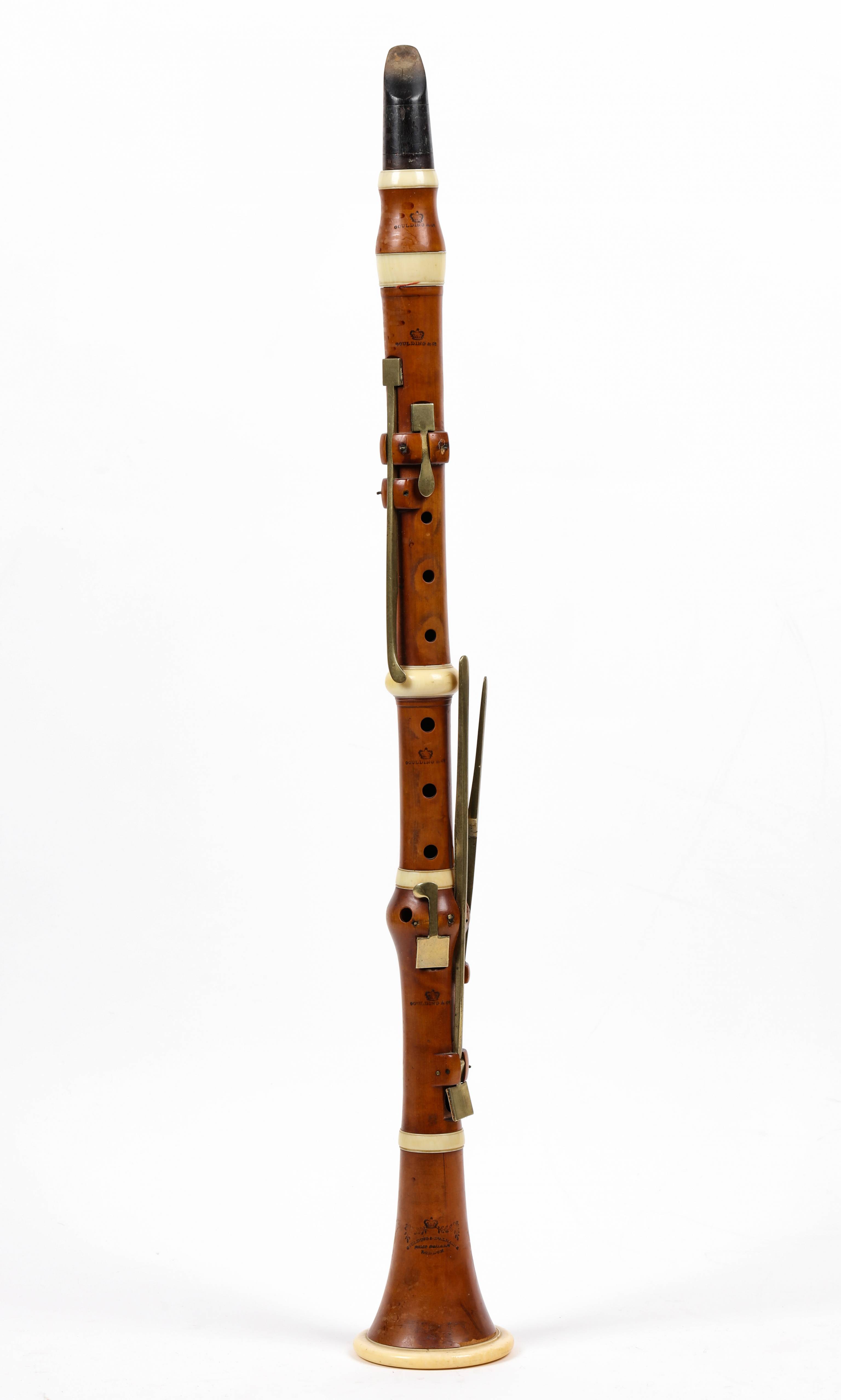 portant la marque "BOULDING & CO LONDON" en buis, et 6 clefs en laiton. Bagues en ivoire. Manque au pavillon. L'ensemble à restaurer.