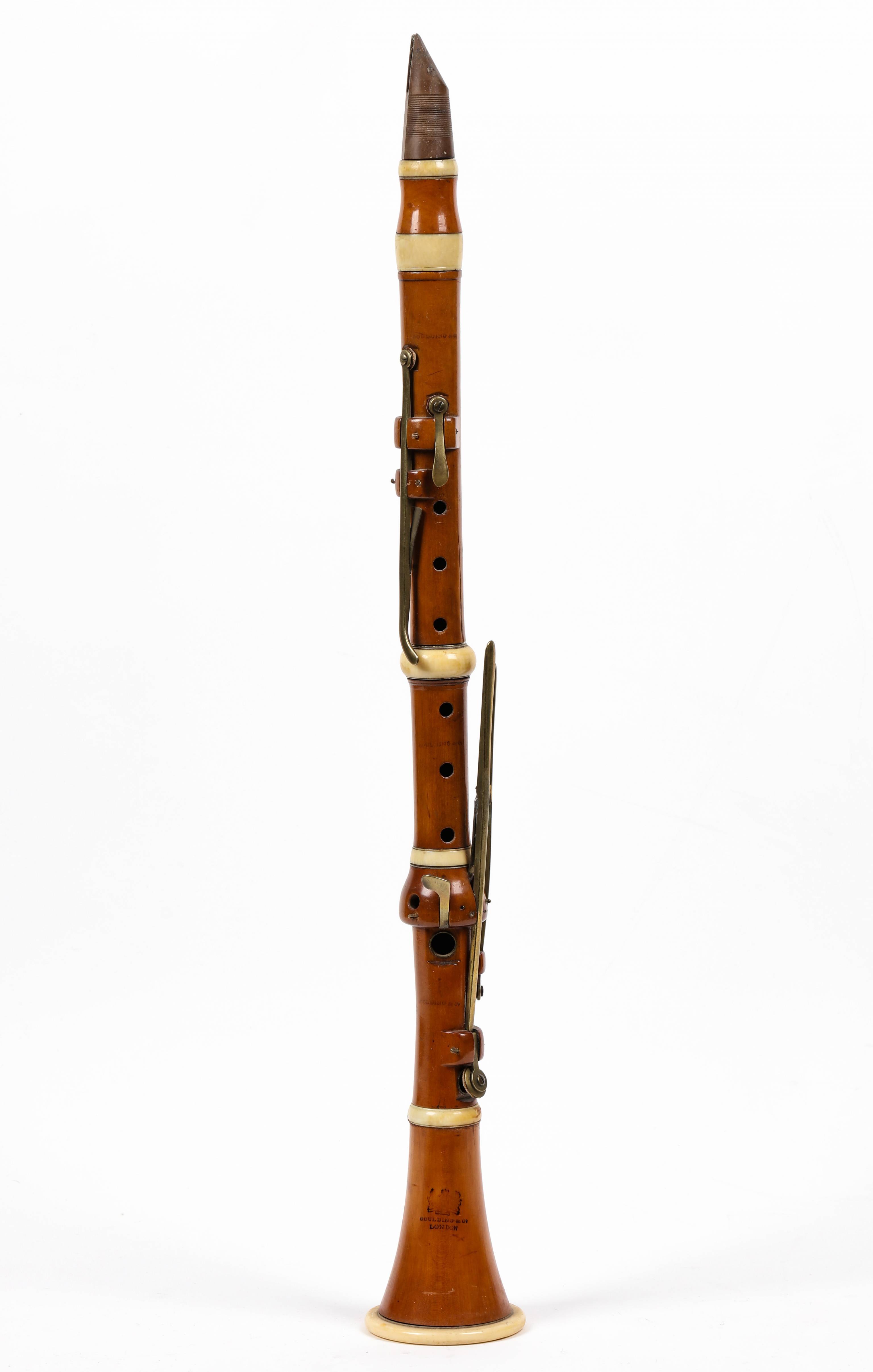 portant la marque "GOULDING & CO LONDON", en bois et 6 clefs en laiton. Bague en ivoire. Diverses cassures.