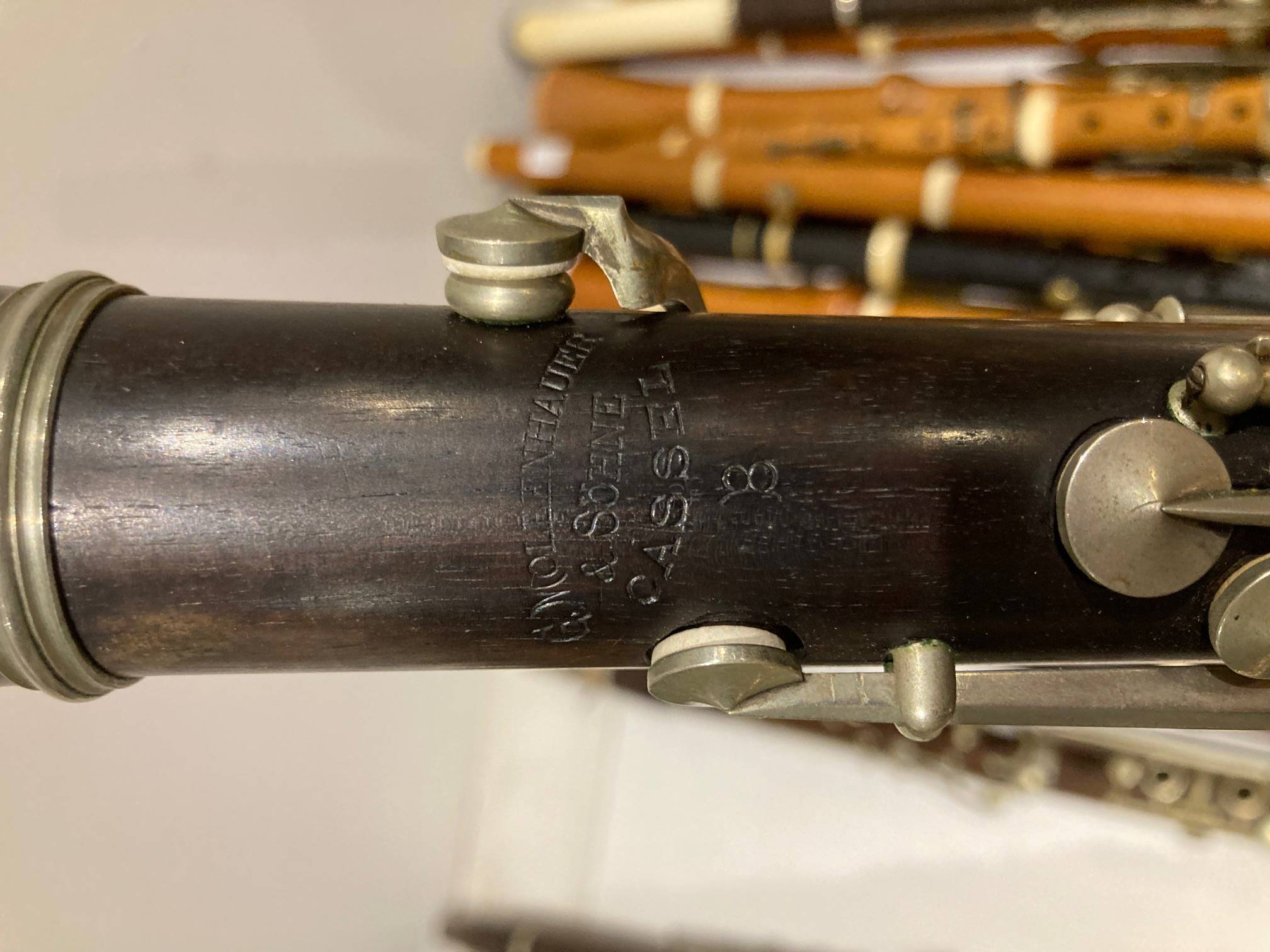 Portant la marque "MOLLENHAUER & SOHNE. CASSEL. B". En bois d'ébène et clefs maillechort. A restaurer