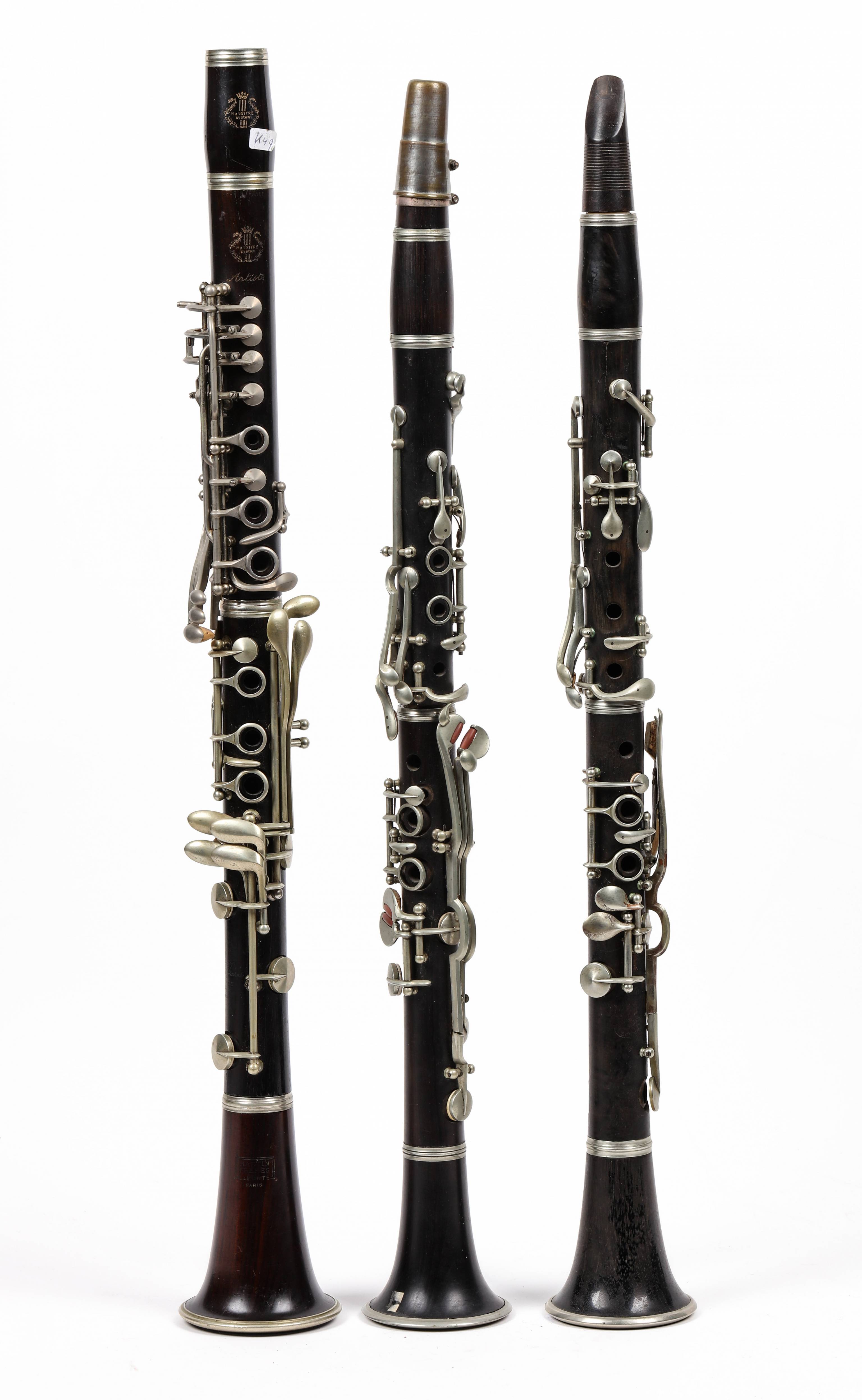 Lot de trois clarinettes en ébène et clefs maillechort.