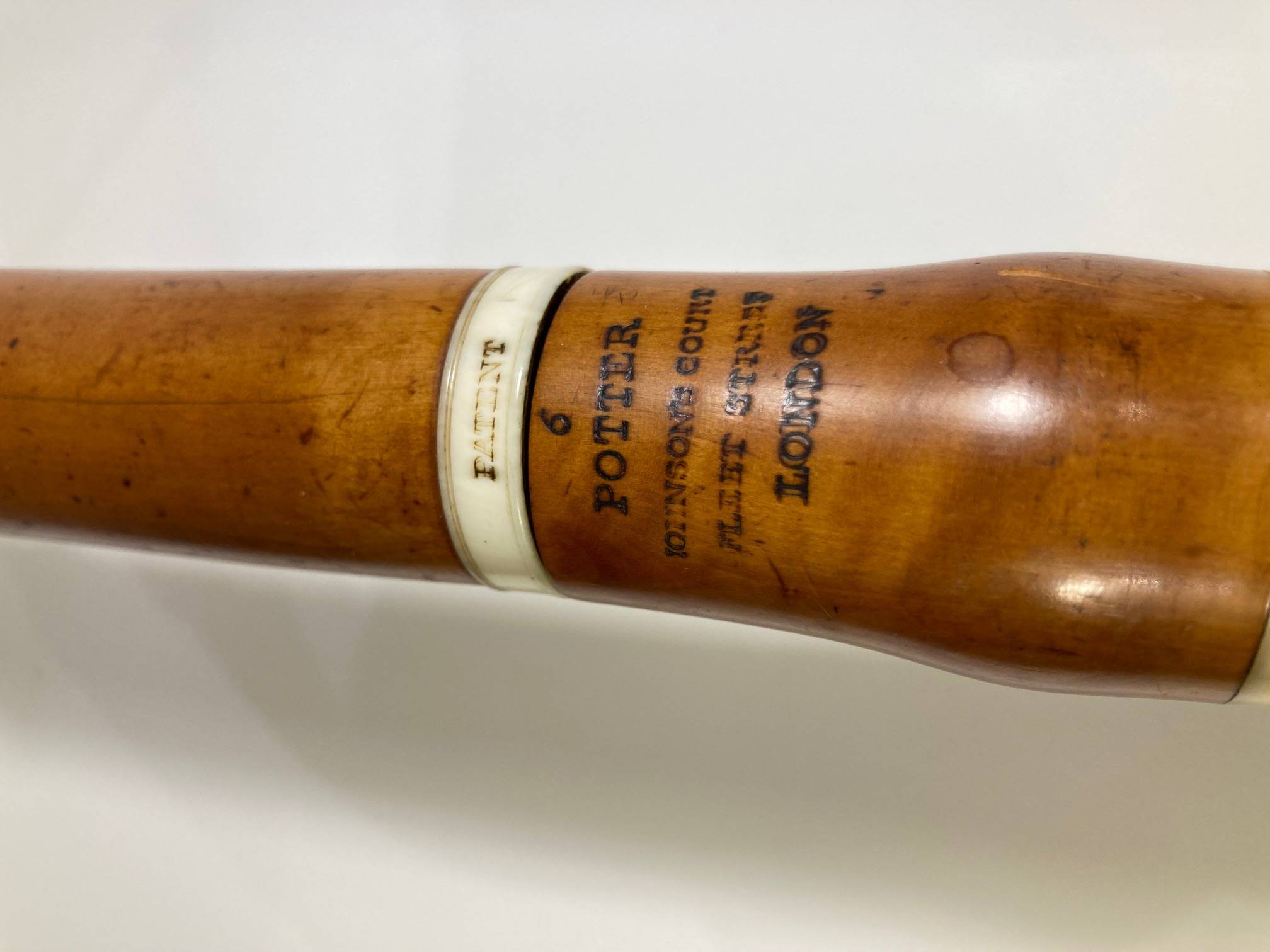 portant la marque au fer "POTTER LONDON". En buis, cerclé en Ivoire. 6 clefs en argent.