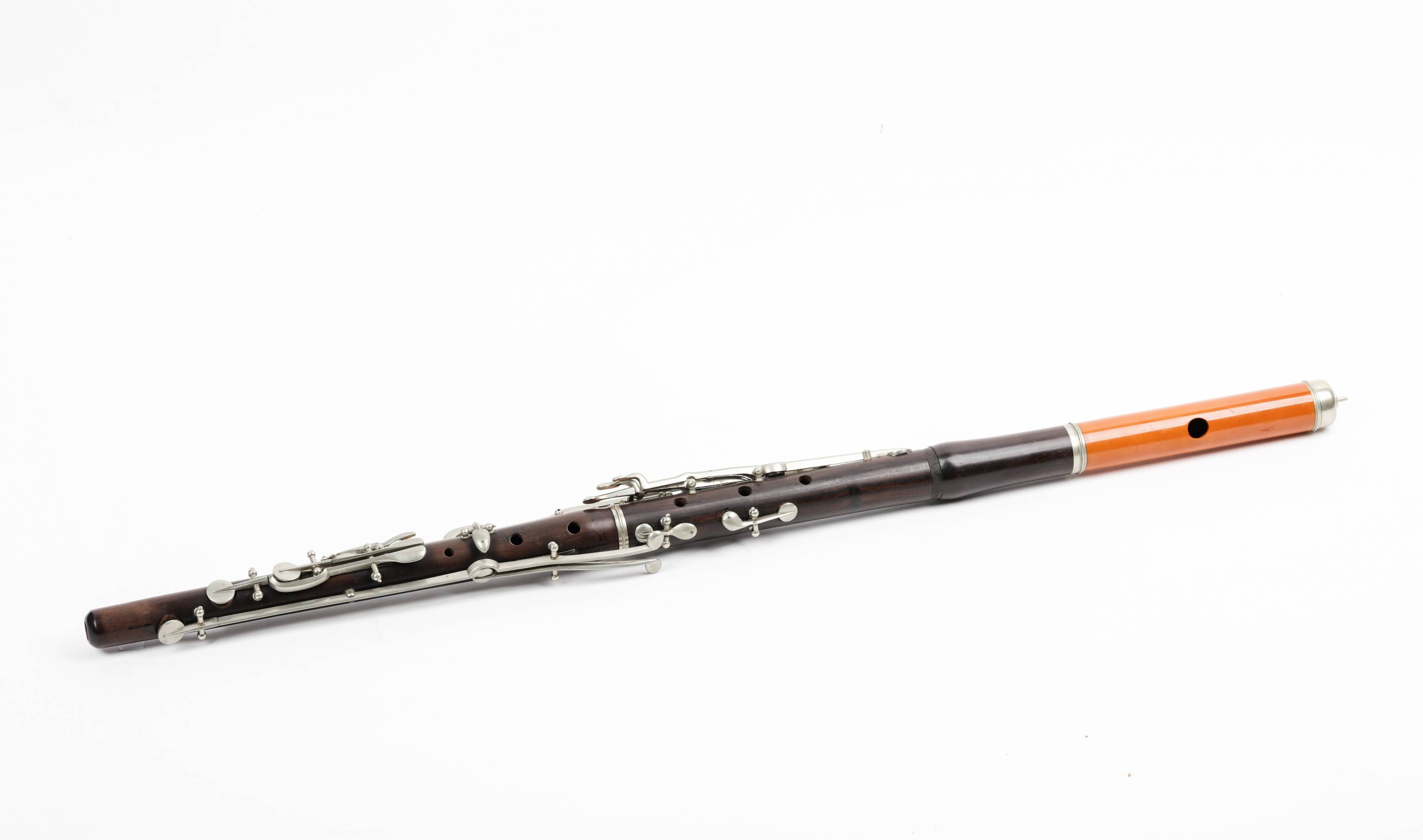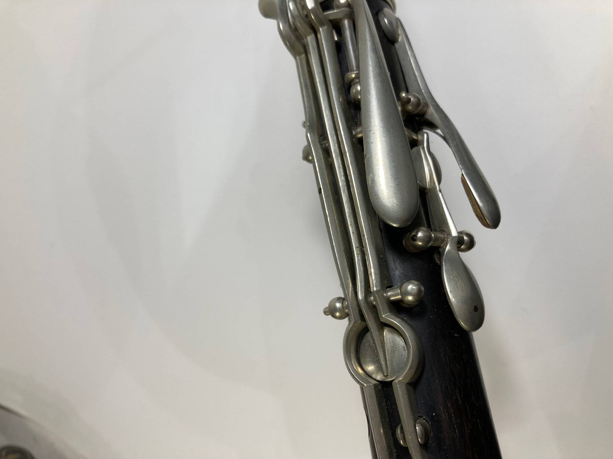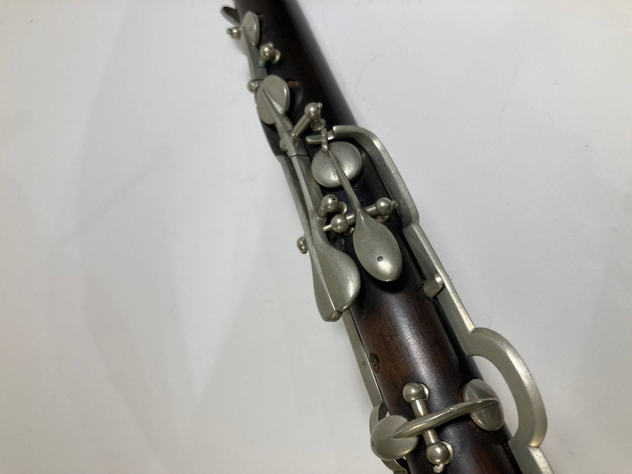 En bois de palissandre. 14 clefs maillechort. Manque une bague.