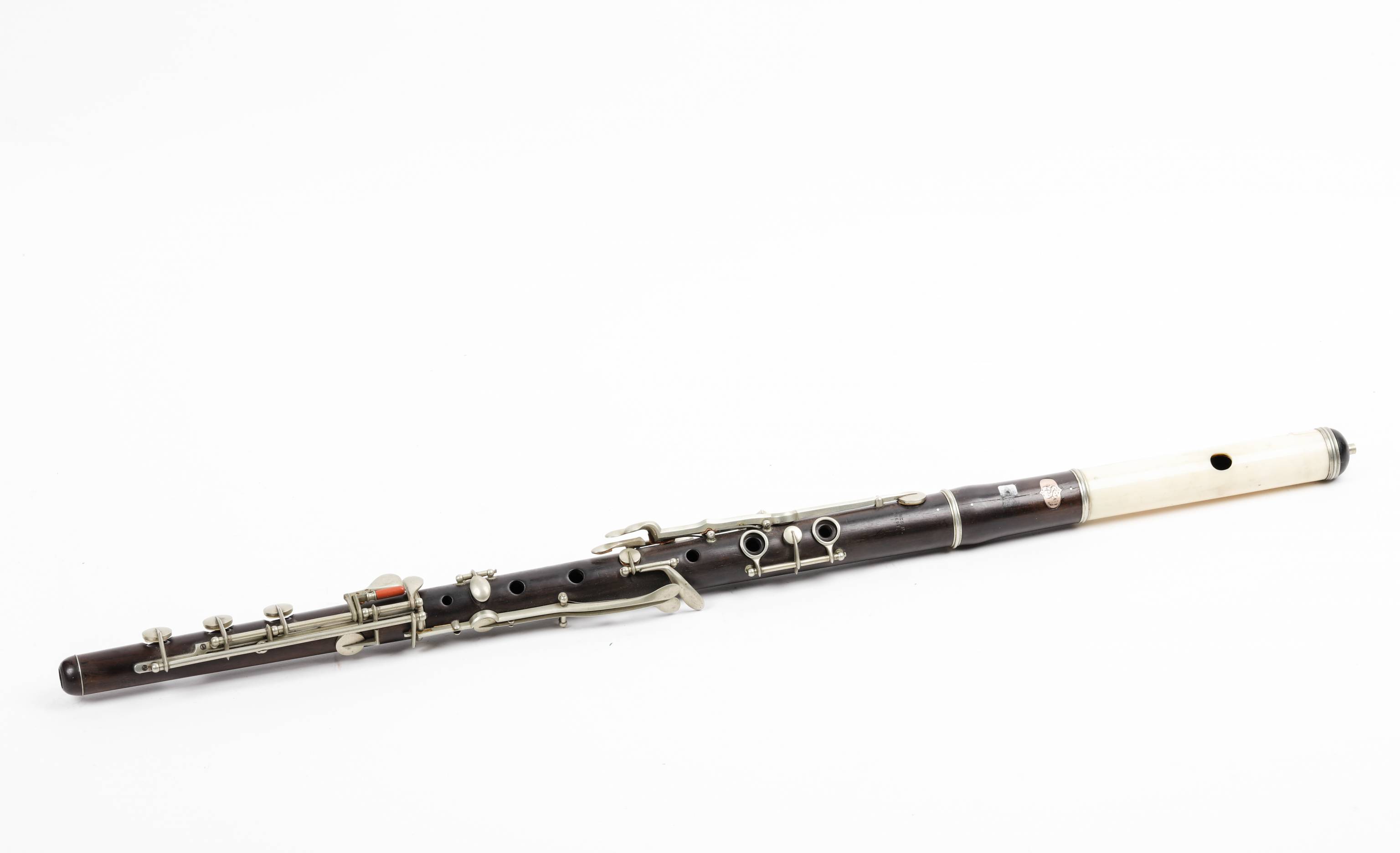 portant la marque "PLIVERIOS M.BUDAPEST", Bois de palissandre. Tête en ivoire restaurée. Clefs maillechort.