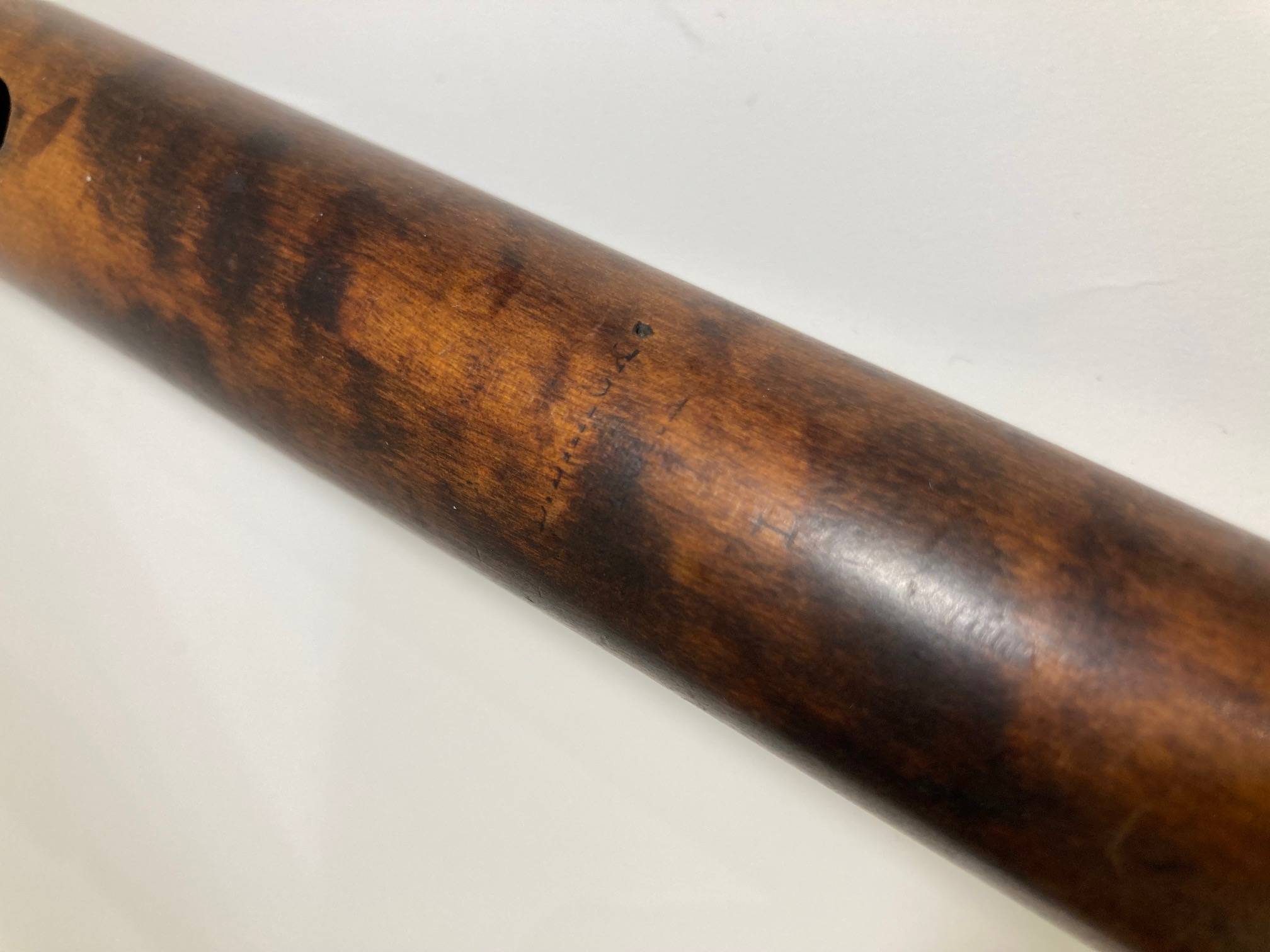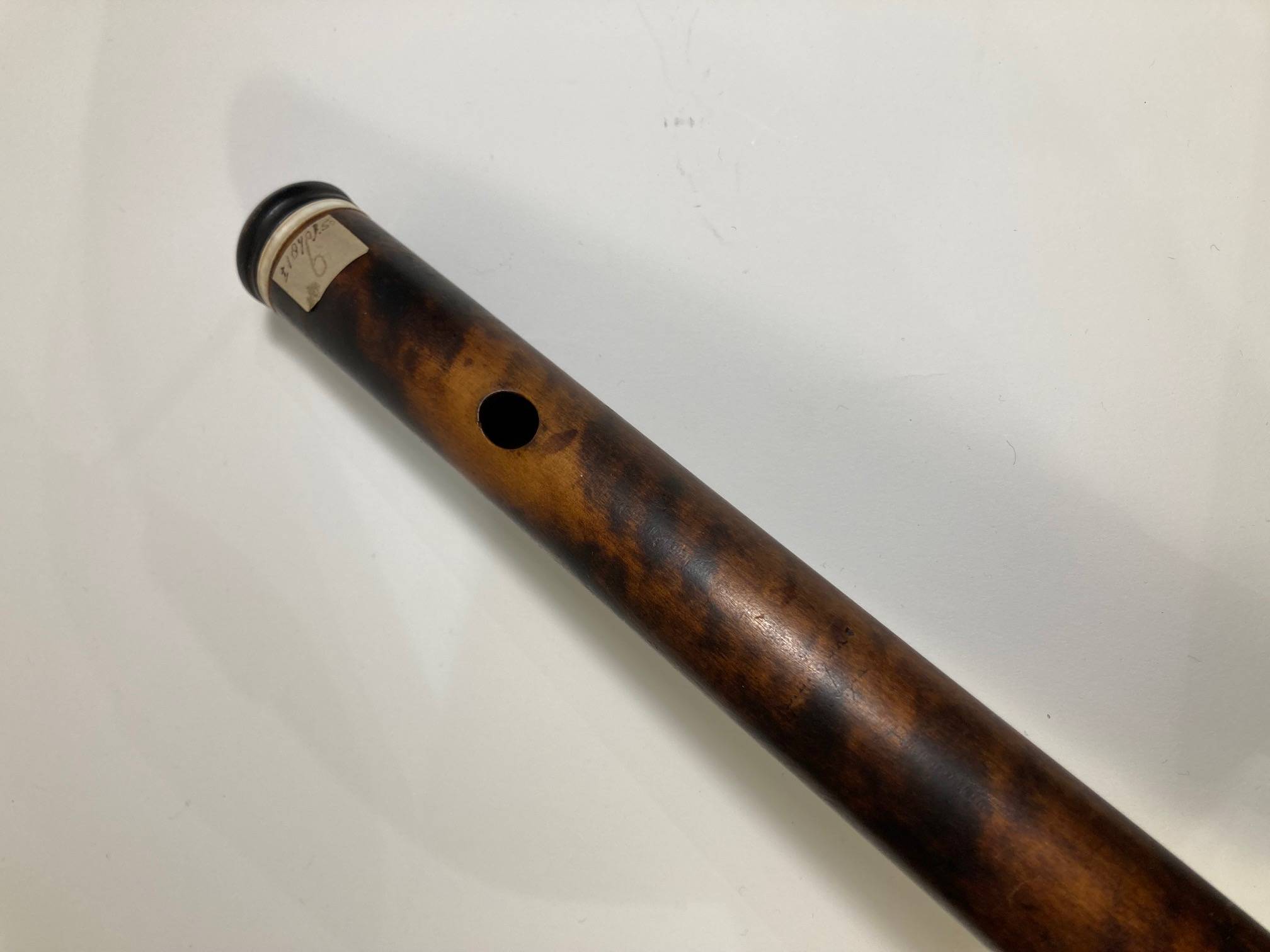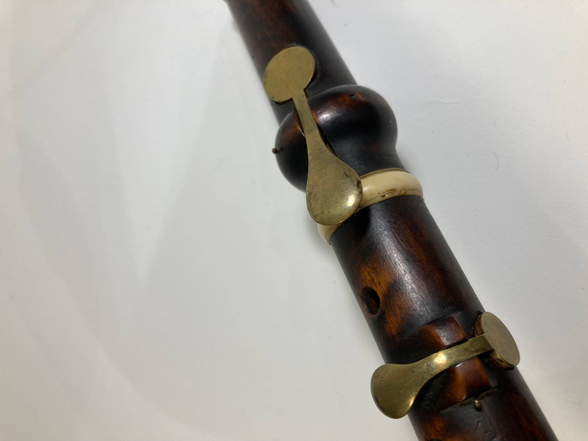 portant une marque illisible "L.BRACK. L..."? En bois fruitier, bagué d'ivoire. 4 clefs en laiton. L'ensemble à restaurer.