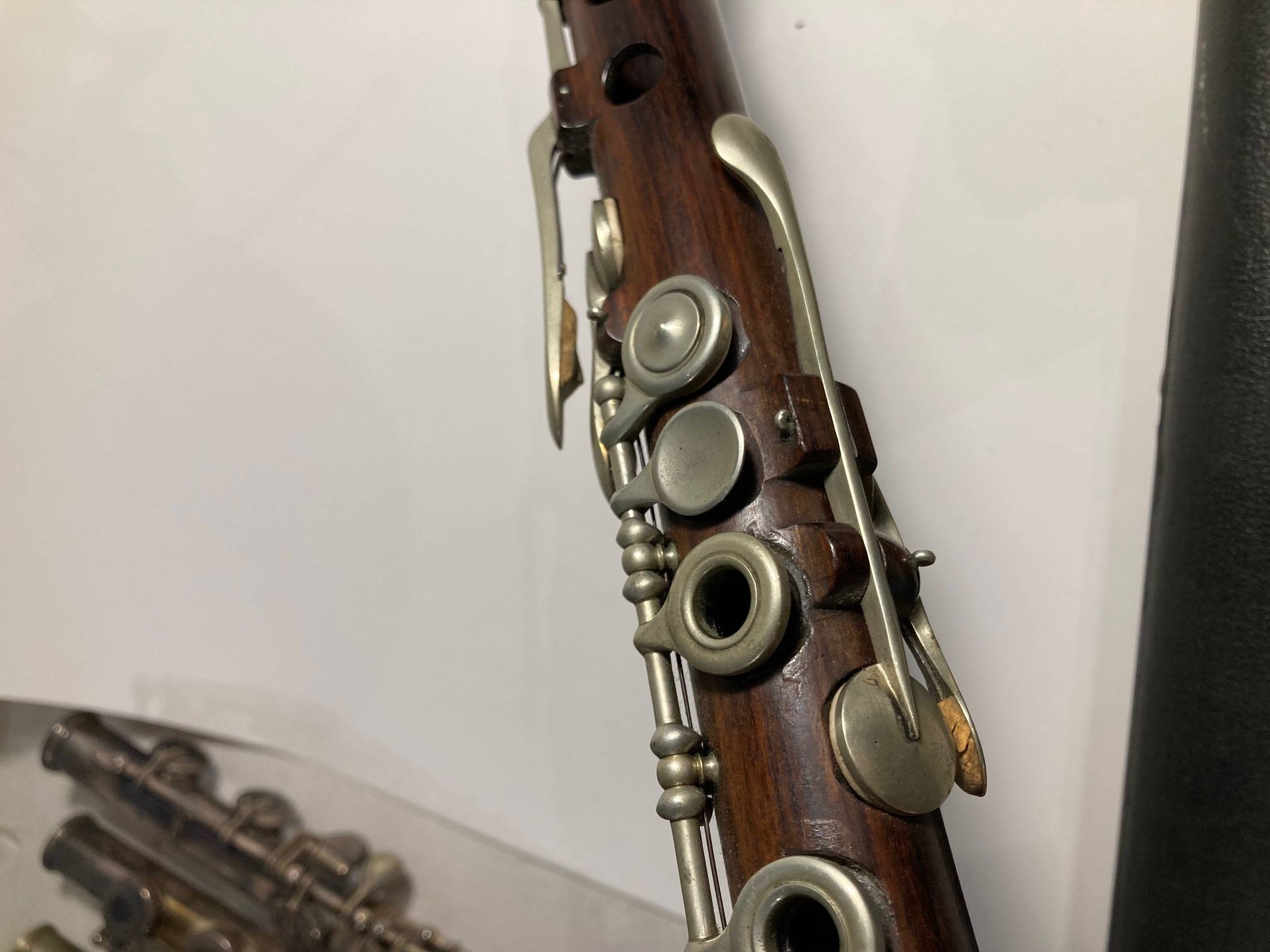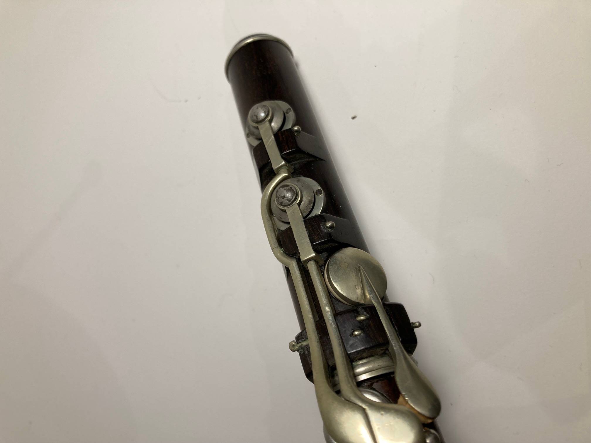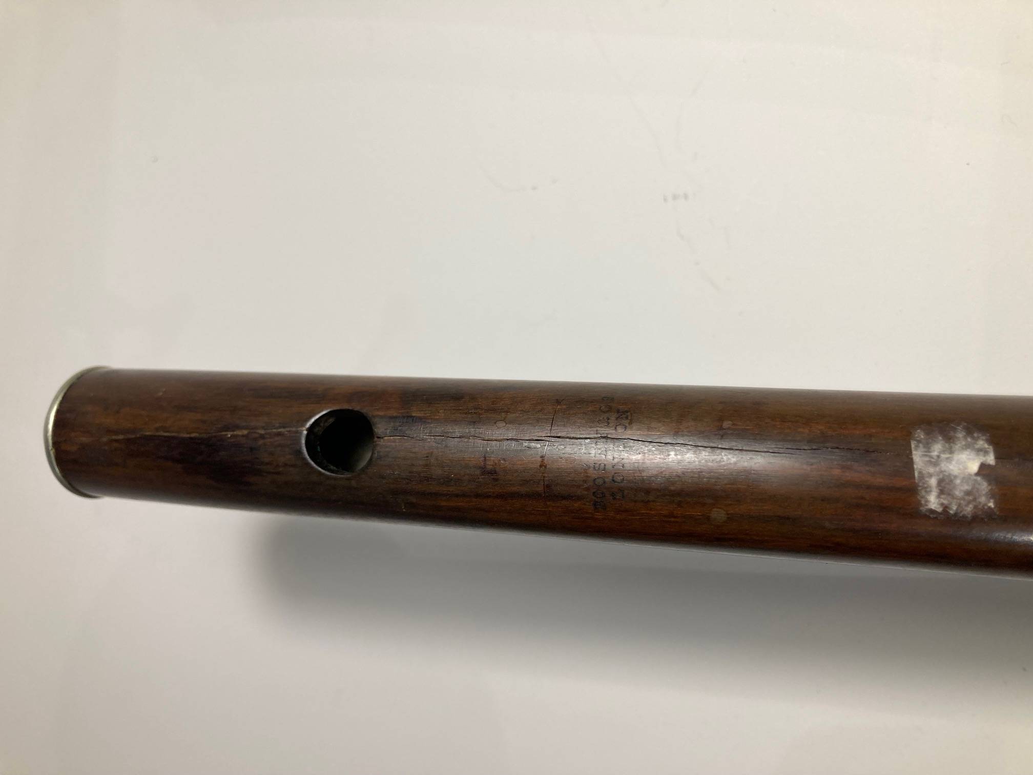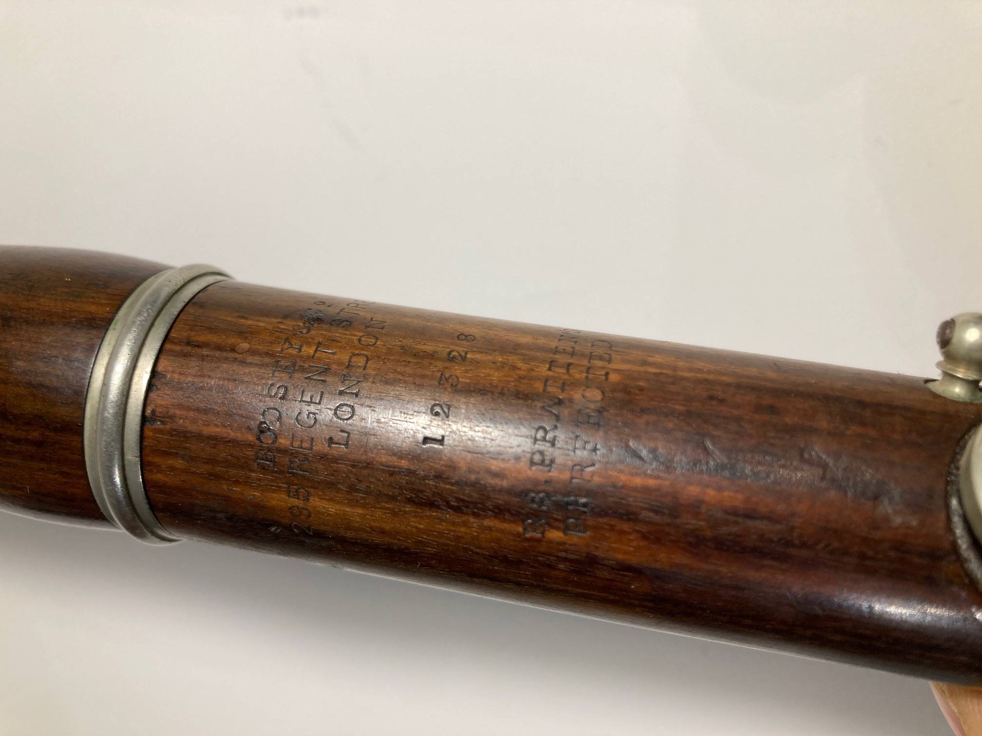 portant la marque "BOOSEY & CO Regent street LONDON". EN bois de palissandre. Tête réparée. L'ensemble à restaurer.
