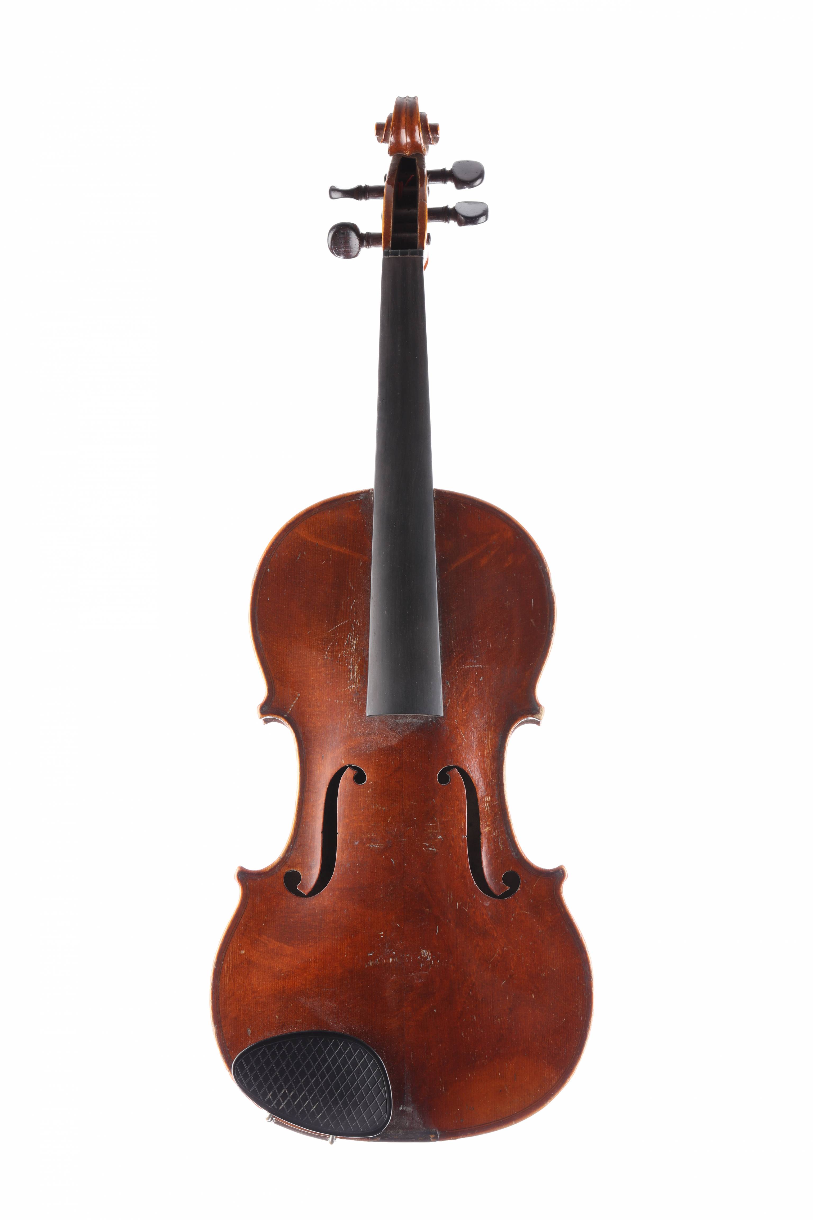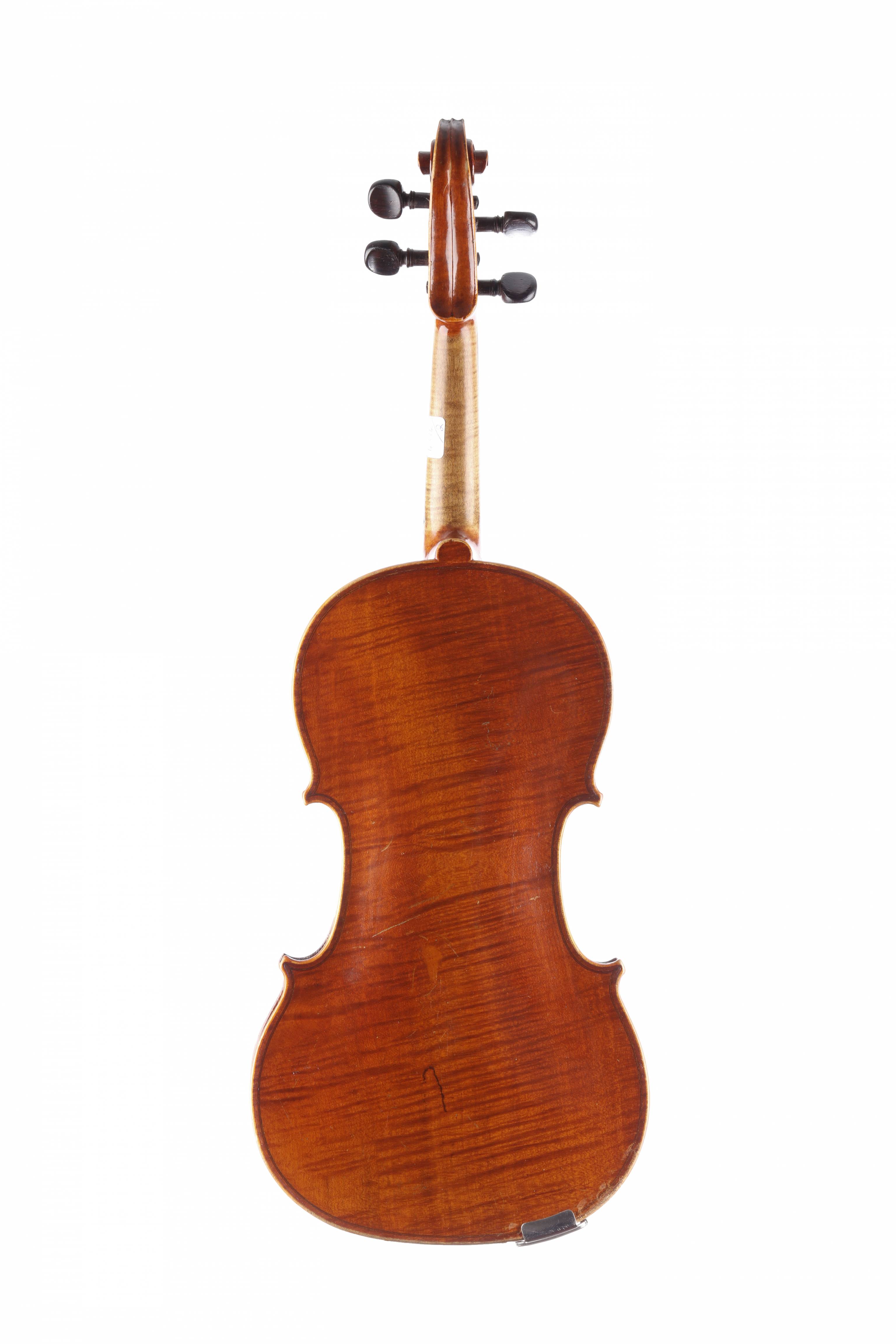 portant une étiquette "Nicolas Bertholini". Beau fond d'une pièce en érable. Vernis brun orangé sur fond doré. 361 mm.
