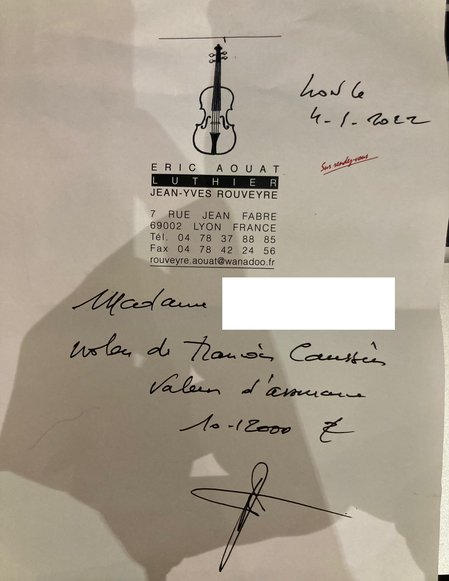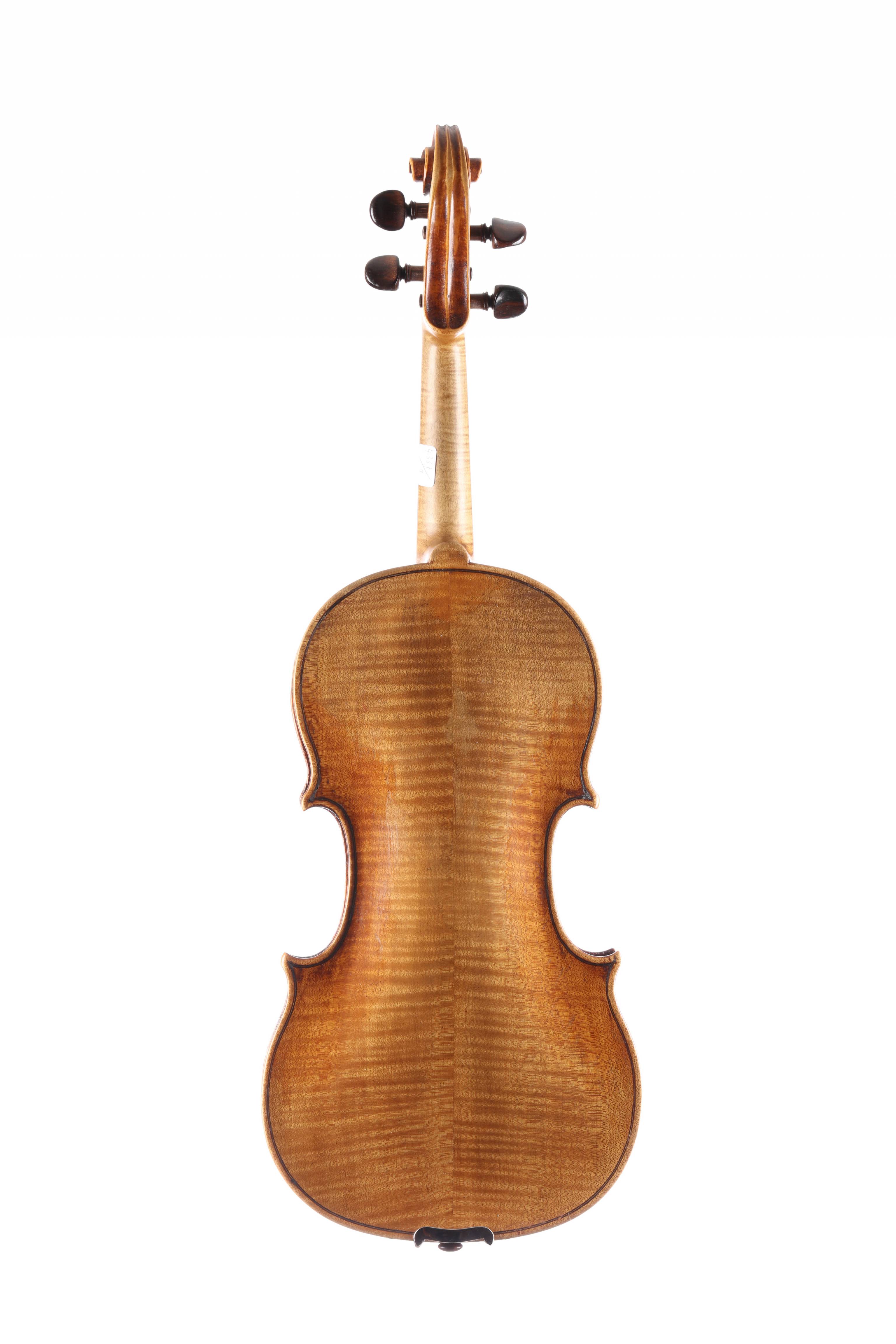 portant une étiquette "Andreas Garnerius. Cremonensis..." Fond de deux pièces en bel érable aux ondes régulières. Vernis brun doré. 361 mm. Avec boite.