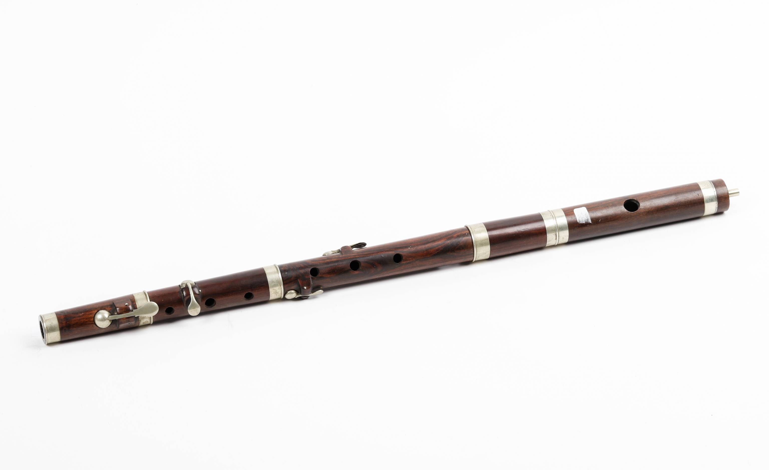 En bois de palissandre. 4 clefs. Bagues en métal. Cassure.