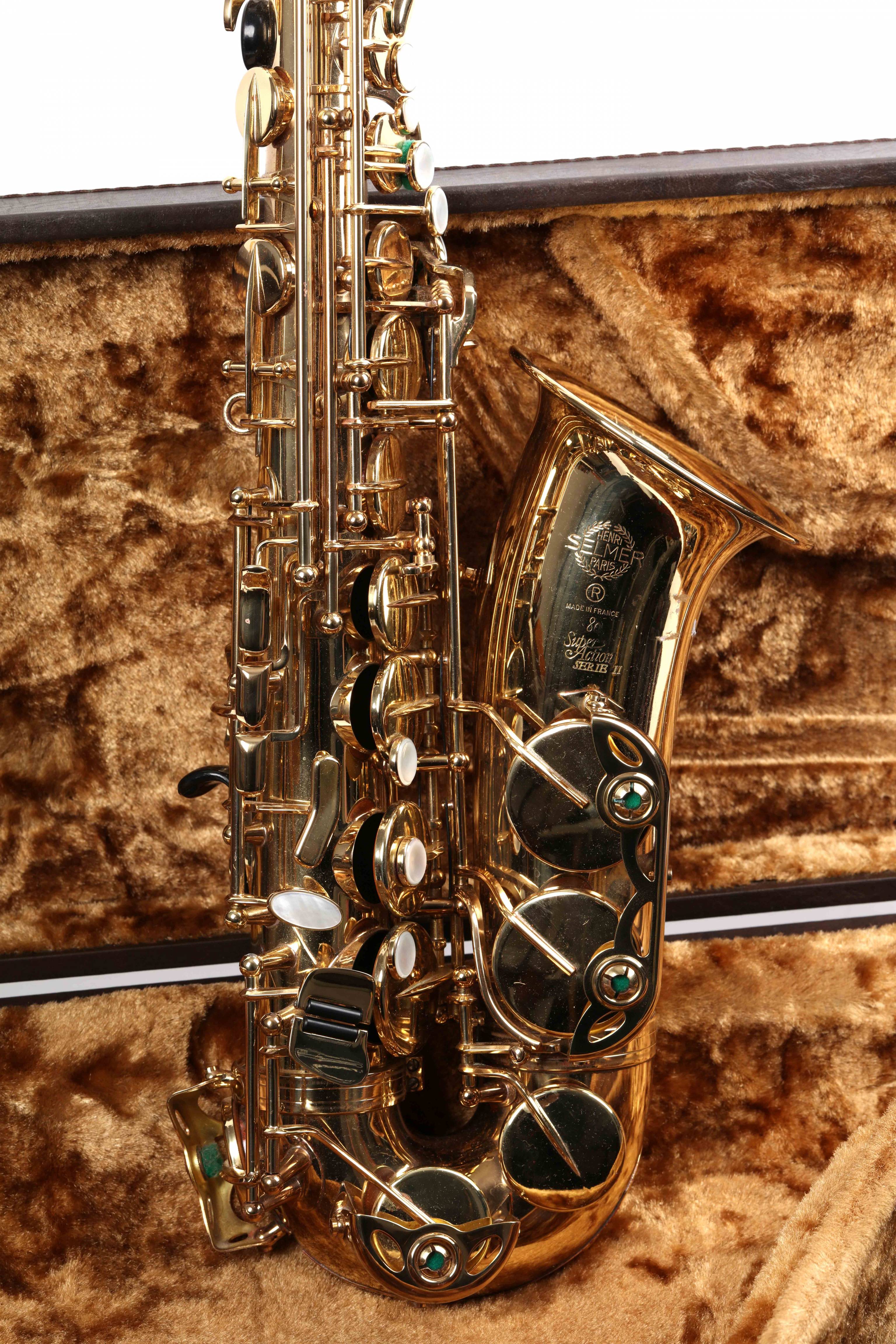 dont il porte la marque "Henri SELMER PARIS, Made in France 80 Super Action Série II". Laiton verni. Numéroté 391567. Légères rayures. Dans son étui d'origine, et accessoires. Très bon état général.