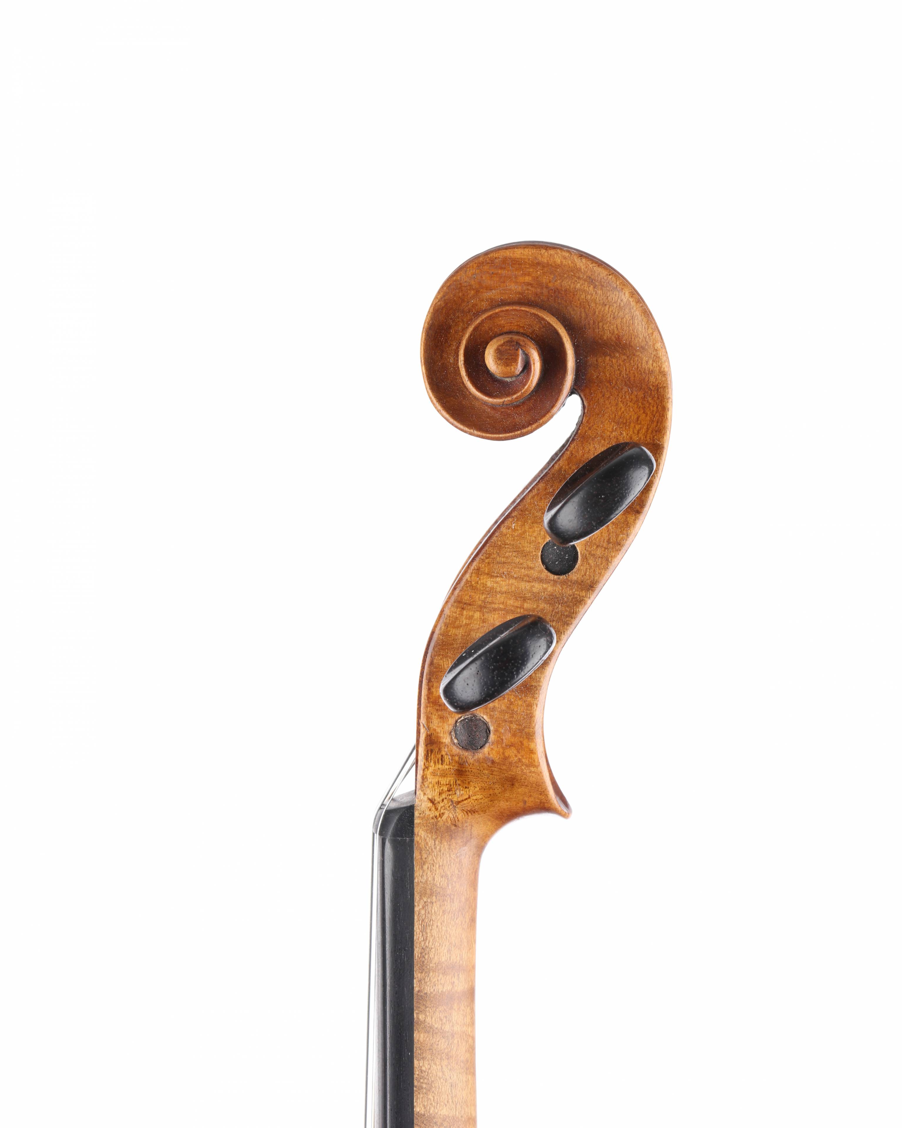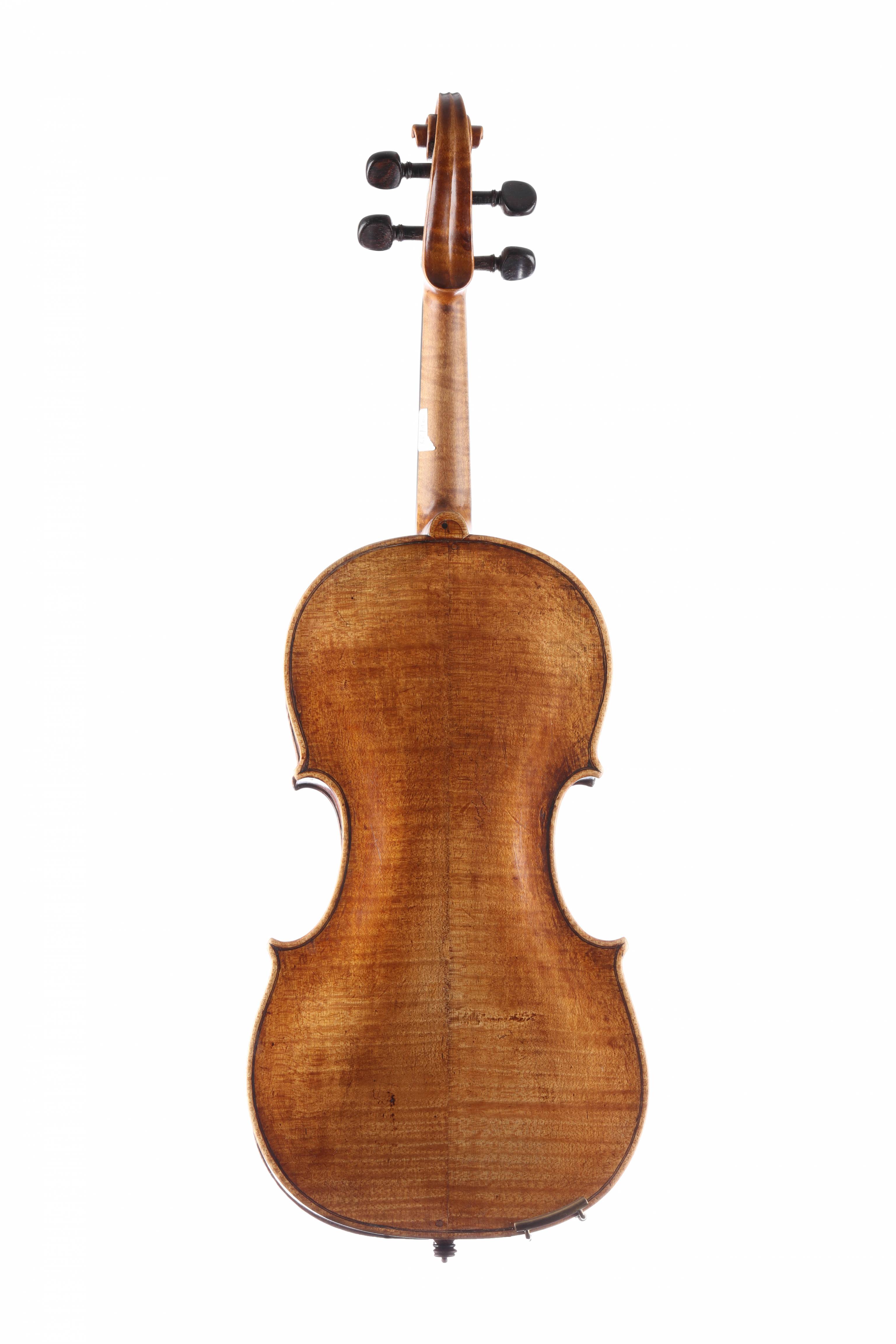 Intéressant instrument dans l'esprit de Ambroise de COMBLES à Tournay (Circa 1770). Fond de deux pièces en bel érable. Table en épicéa aux pores irréguliers. Diverses petites cassures restaurées. Tête Française postérieure. 357 mm.