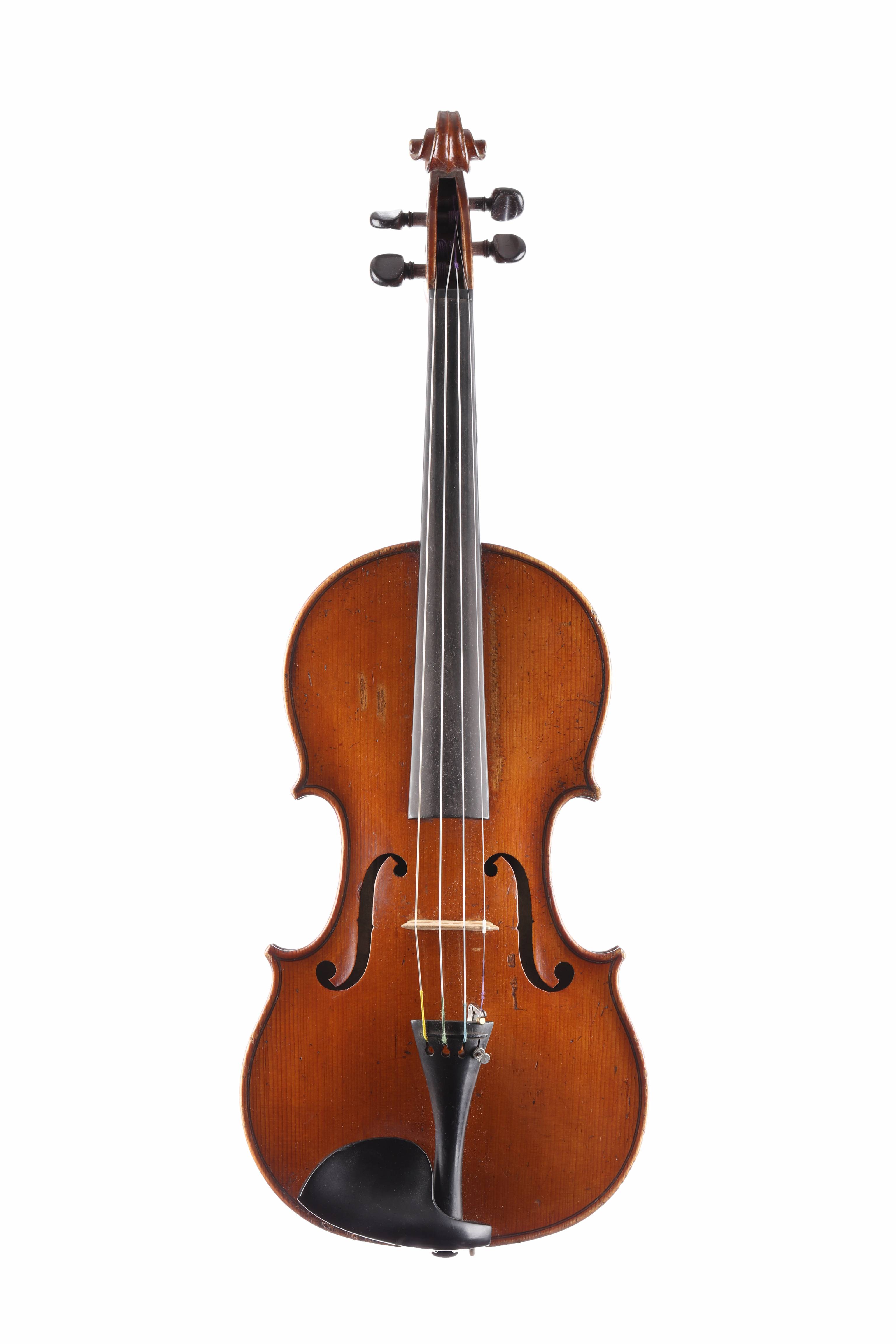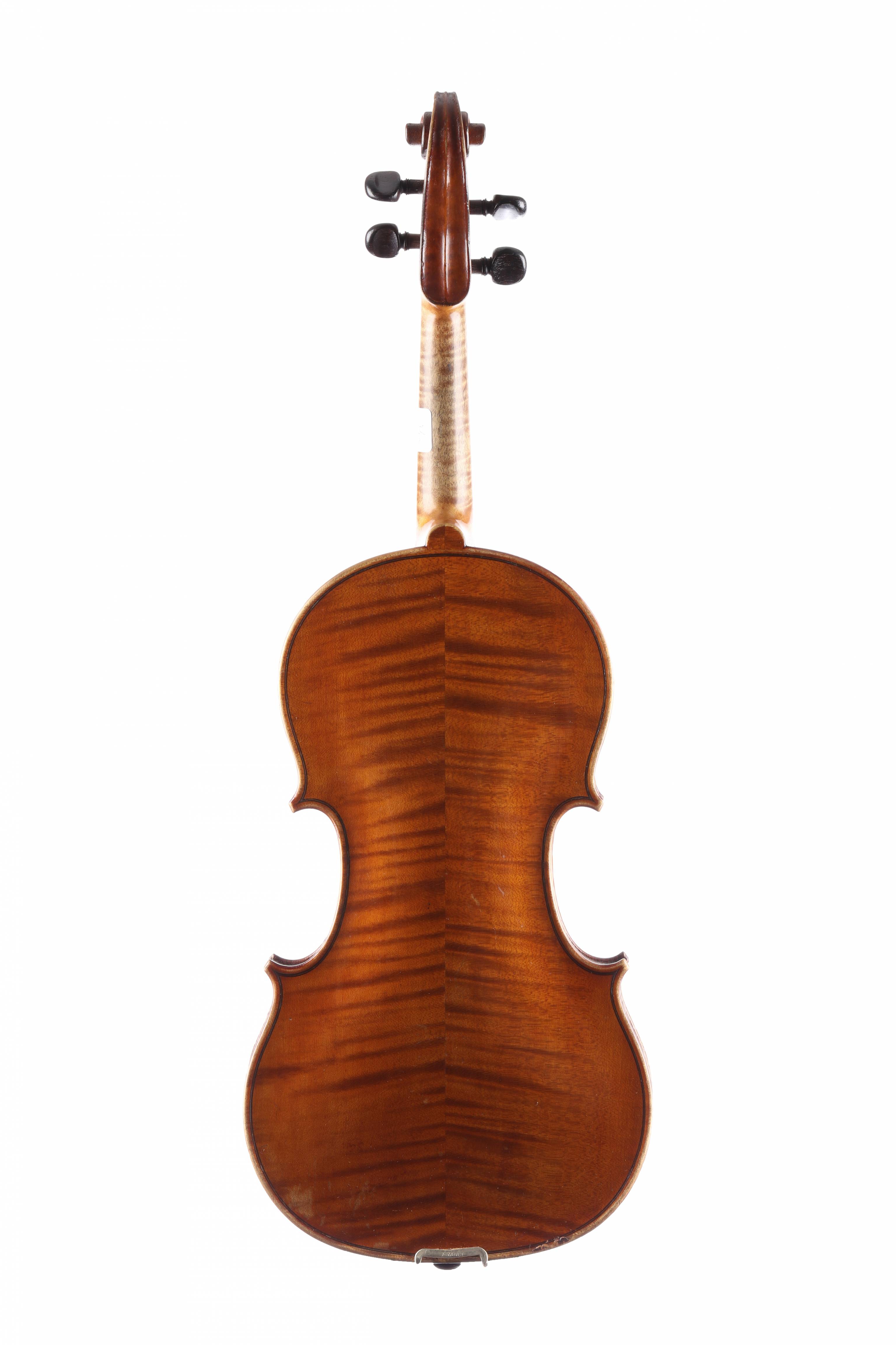 fait à Mirecourt vers 1900, portant une étiquette "Nicolaus Amatus Cremonen, Hieronymi fecit 1677.". Fond de deux pièces en érable ondé. Table en épicéa. Vernis brun clair.