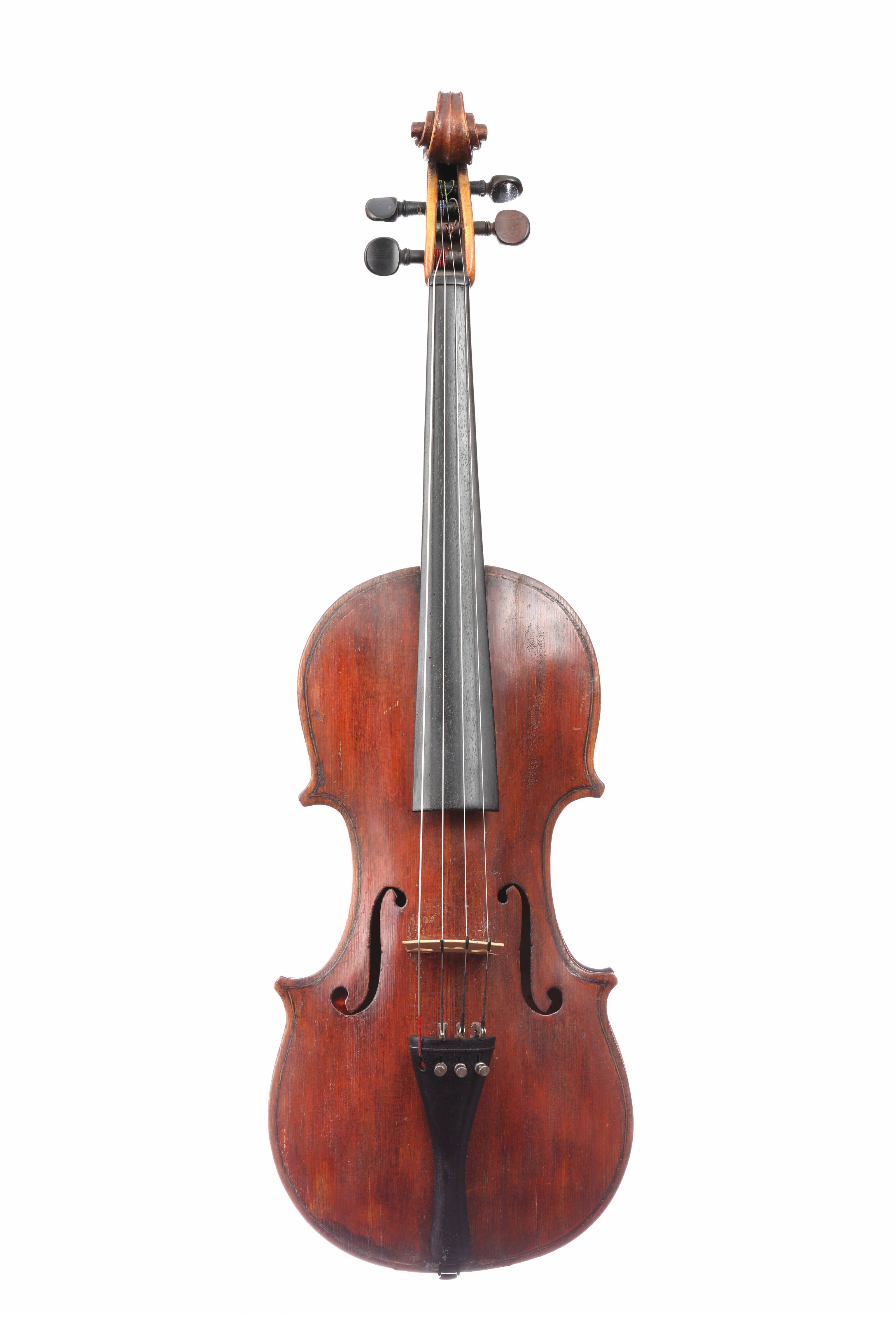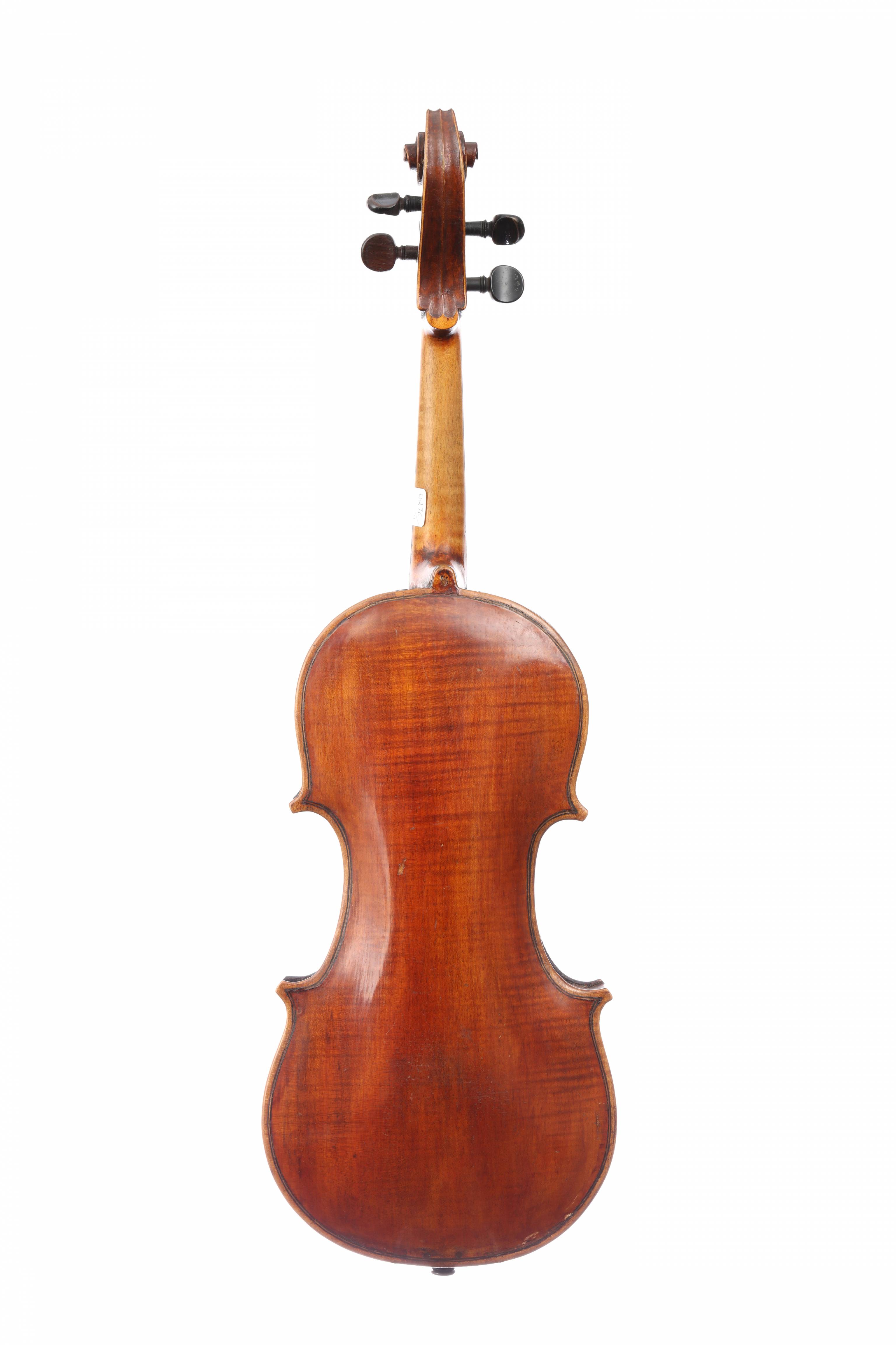 Fait par un amateur. Fond d'une pièce . Vernis brun doré. En l'état. Avec boite et archet.