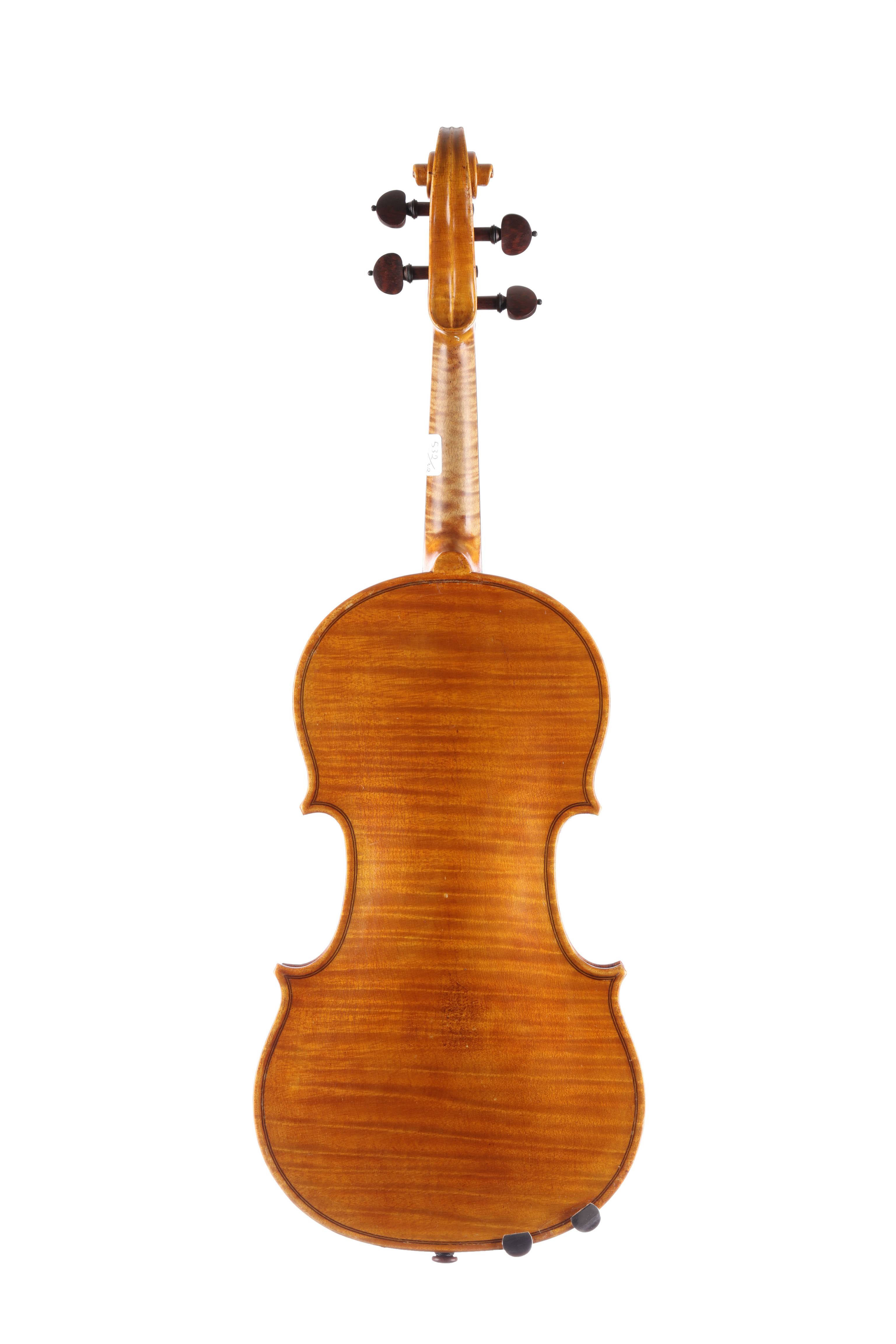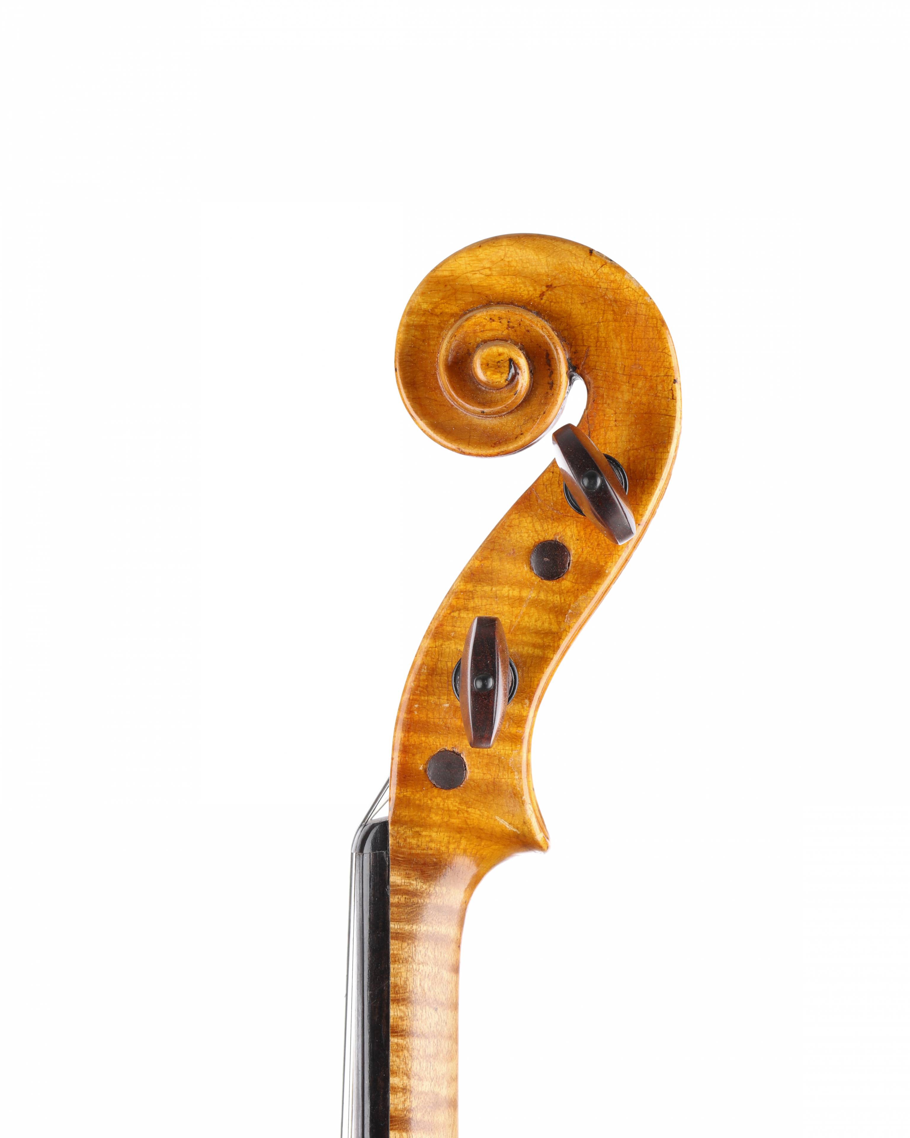 dont il porte l'étiquette "Plionio MICHETTI fecit TAURINI. 1929." et la marque au fer à l'intérieur. Fond d'une pièce en bel érable. Vernis brun doré. 358 mm.