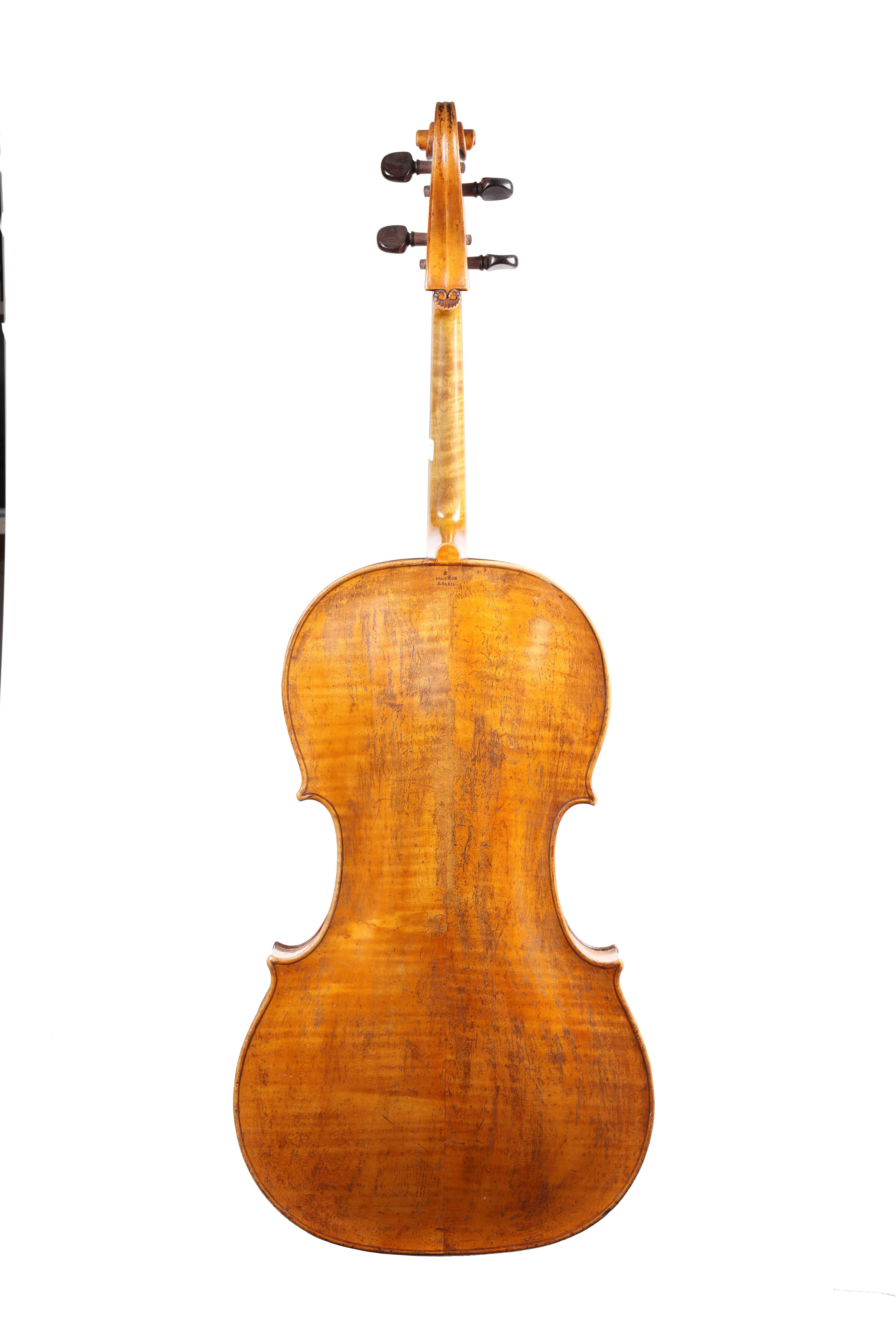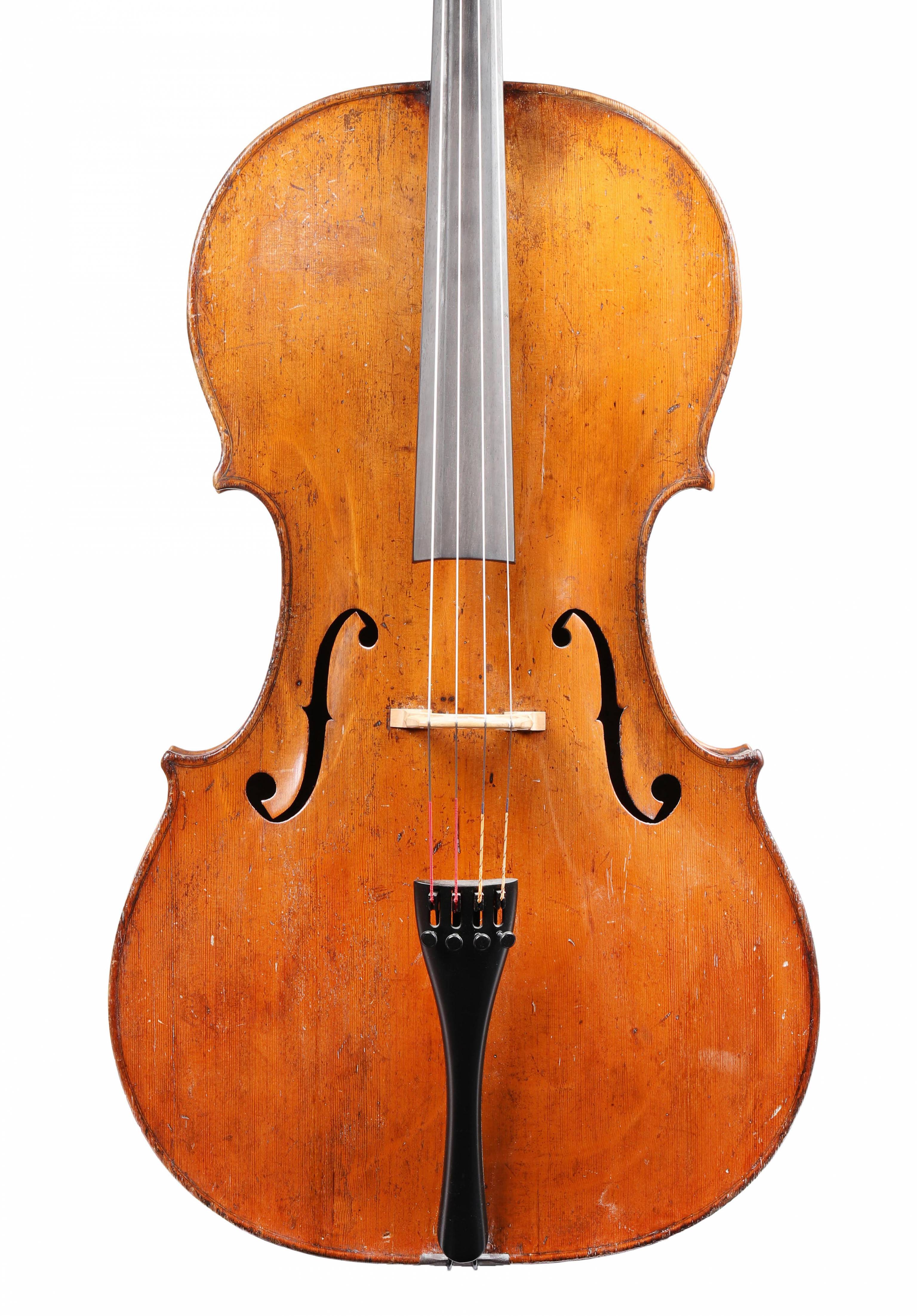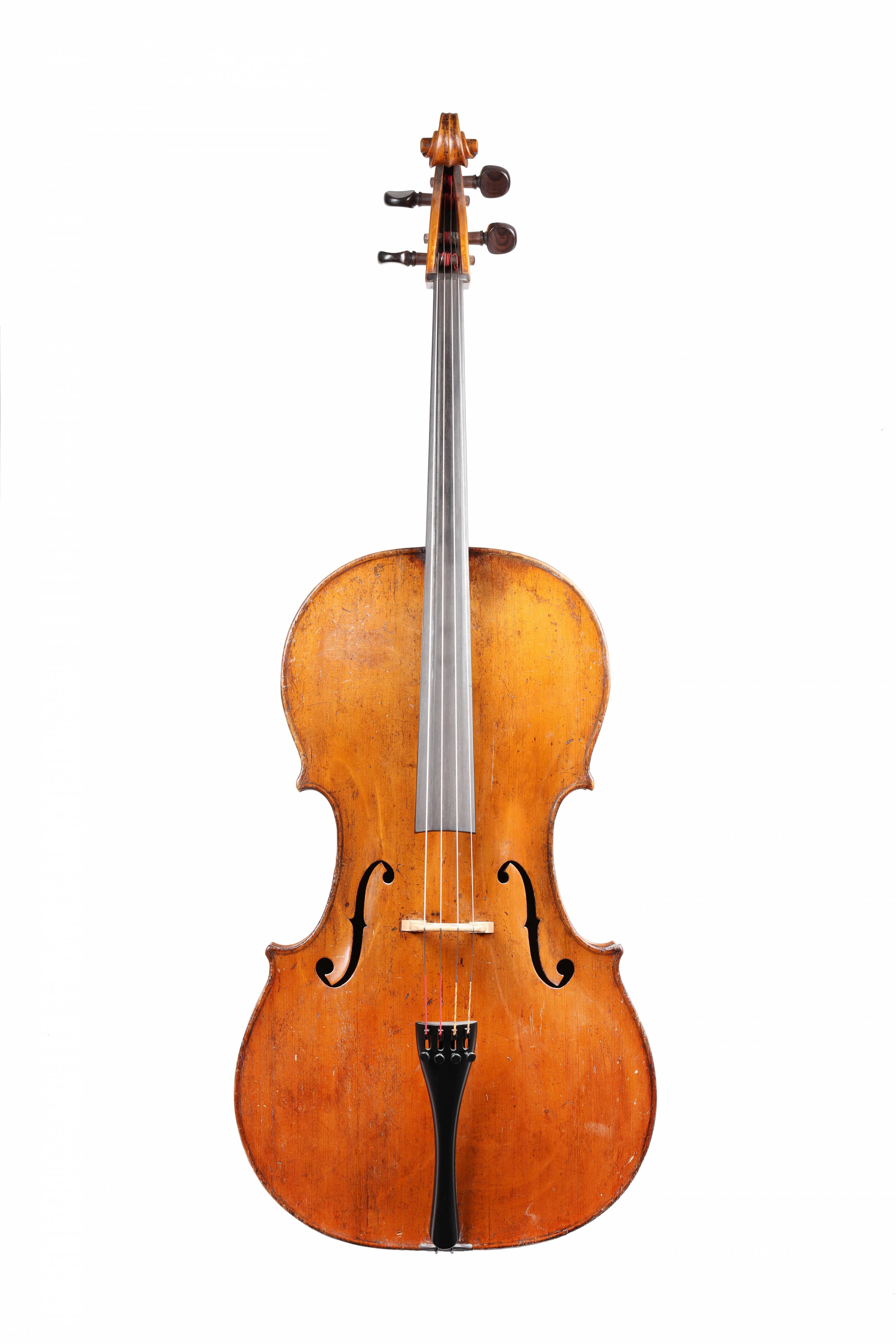 Exceptionnel violoncelle 7/8 de SALOMON dont il porte la marque au fer sous le talon du manche "SALOMON A PARIS". Tête de Lafille. Fond de deux pièces en érable. Table en épicéa aux pores serrés au centre, s'élargissant légèrement sur les bords. Avec archet d'étude. 712 mm. Diverses cassures de tables restaurées.