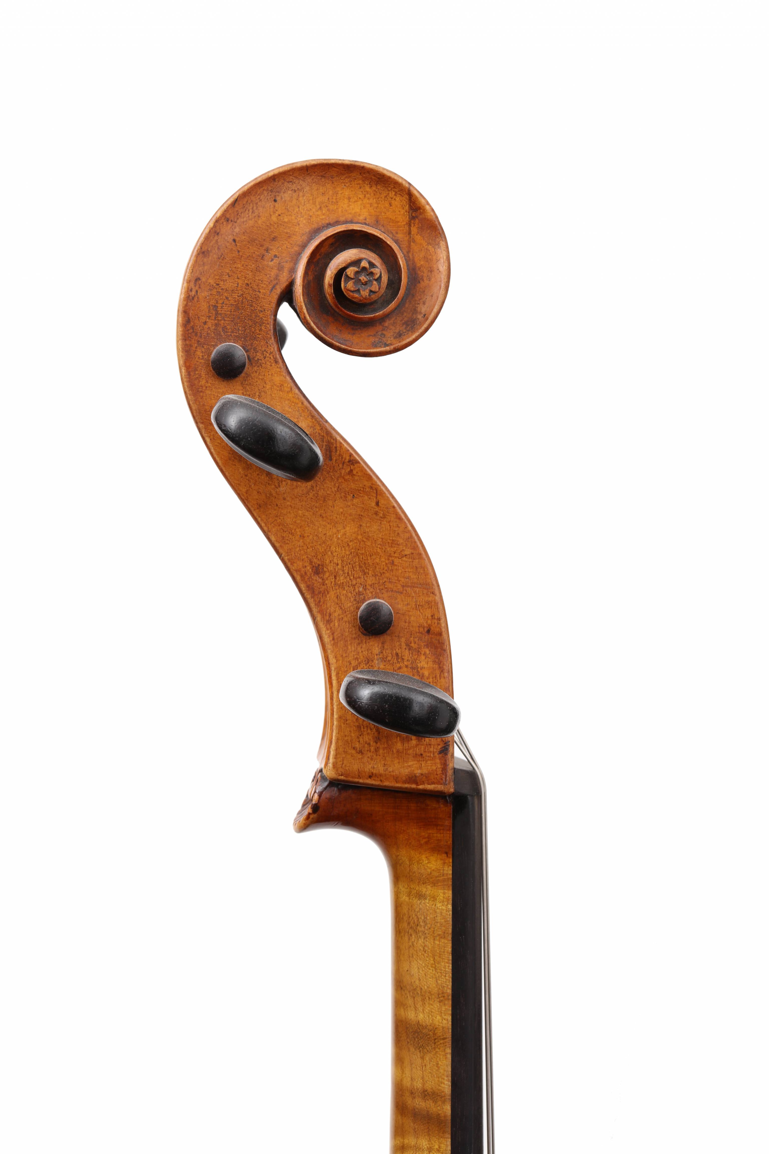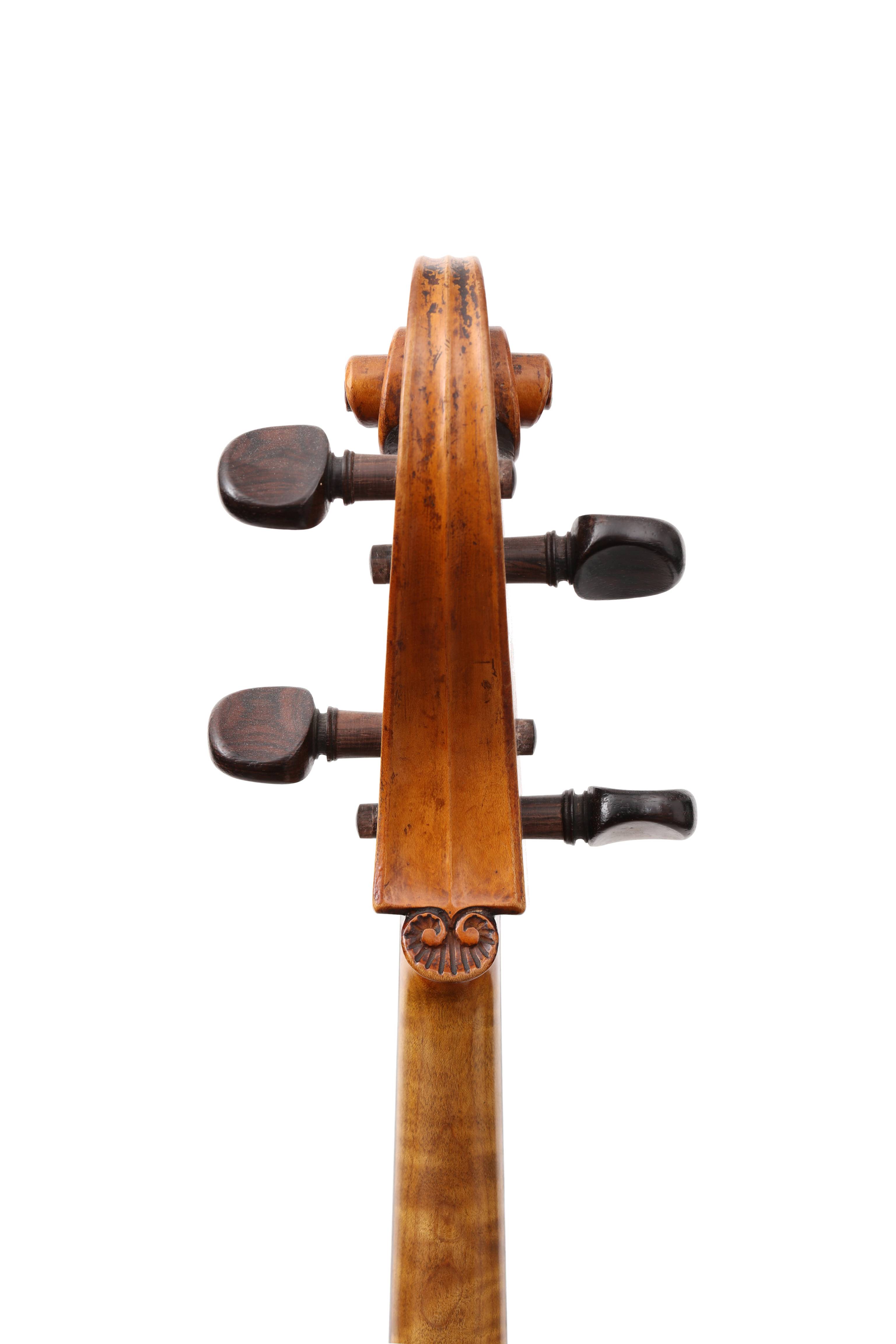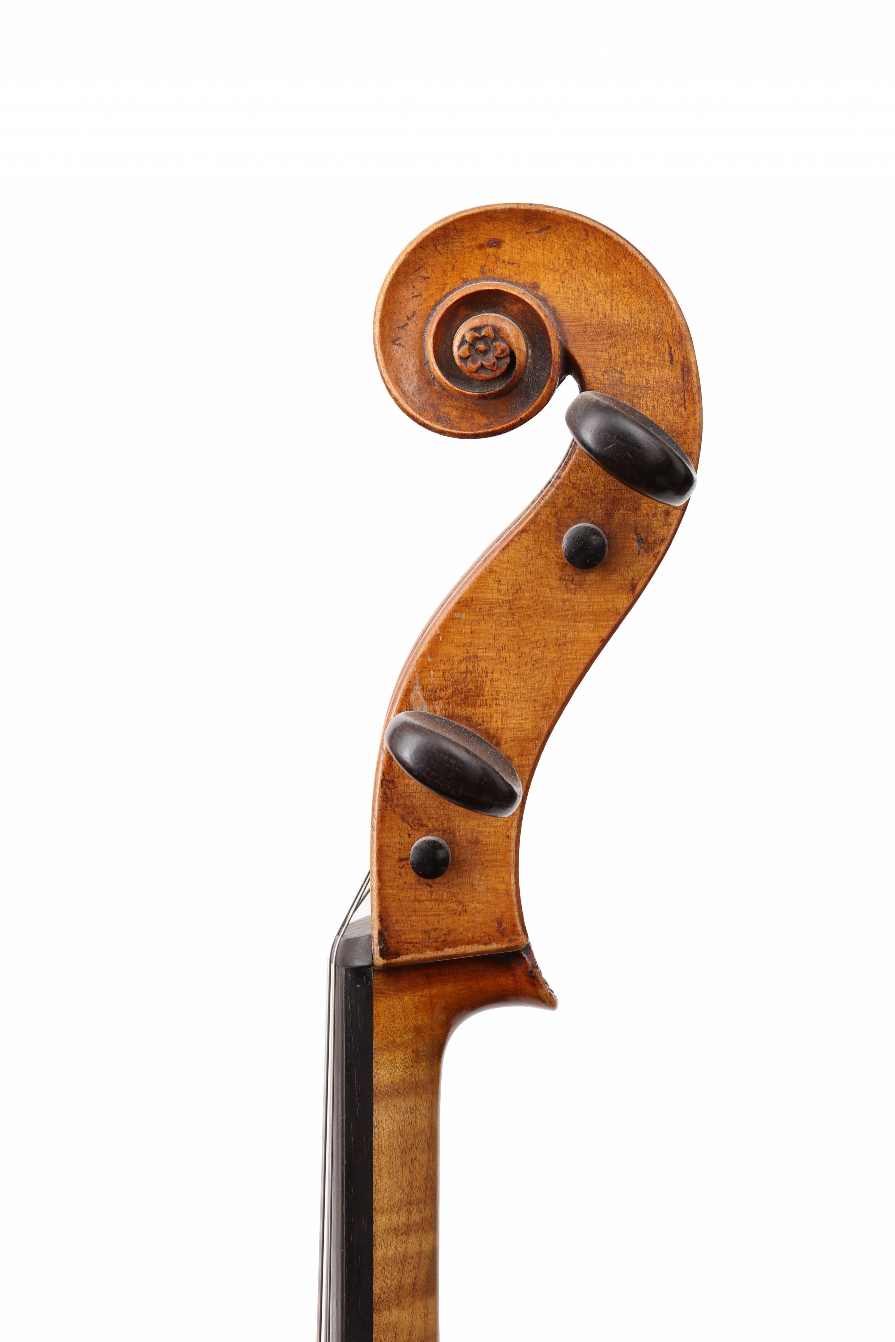 Exceptionnel violoncelle 7/8 de SALOMON dont il porte la marque au fer sous le talon du manche "SALOMON A PARIS". Tête de Lafille. Fond de deux pièces en érable. Table en épicéa aux pores serrés au centre, s'élargissant légèrement sur les bords. Avec archet d'étude. 712 mm. Diverses cassures de tables restaurées.