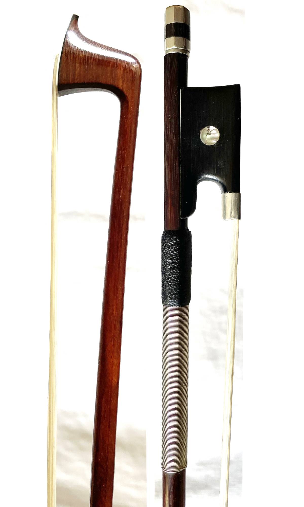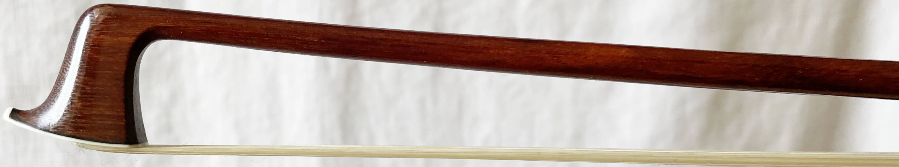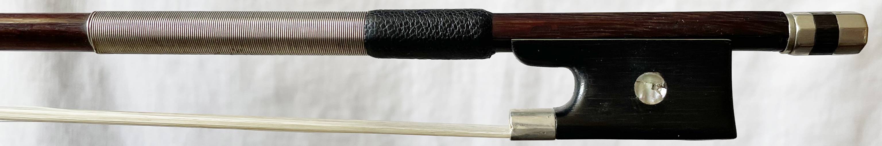 fait par Eugène Cuniot, dit Cuniot Hury. Hausse ébène, modèle Vuillaume, monté maillechort. Baguette ronde en bois de pernambouc. 725 mm, 59g