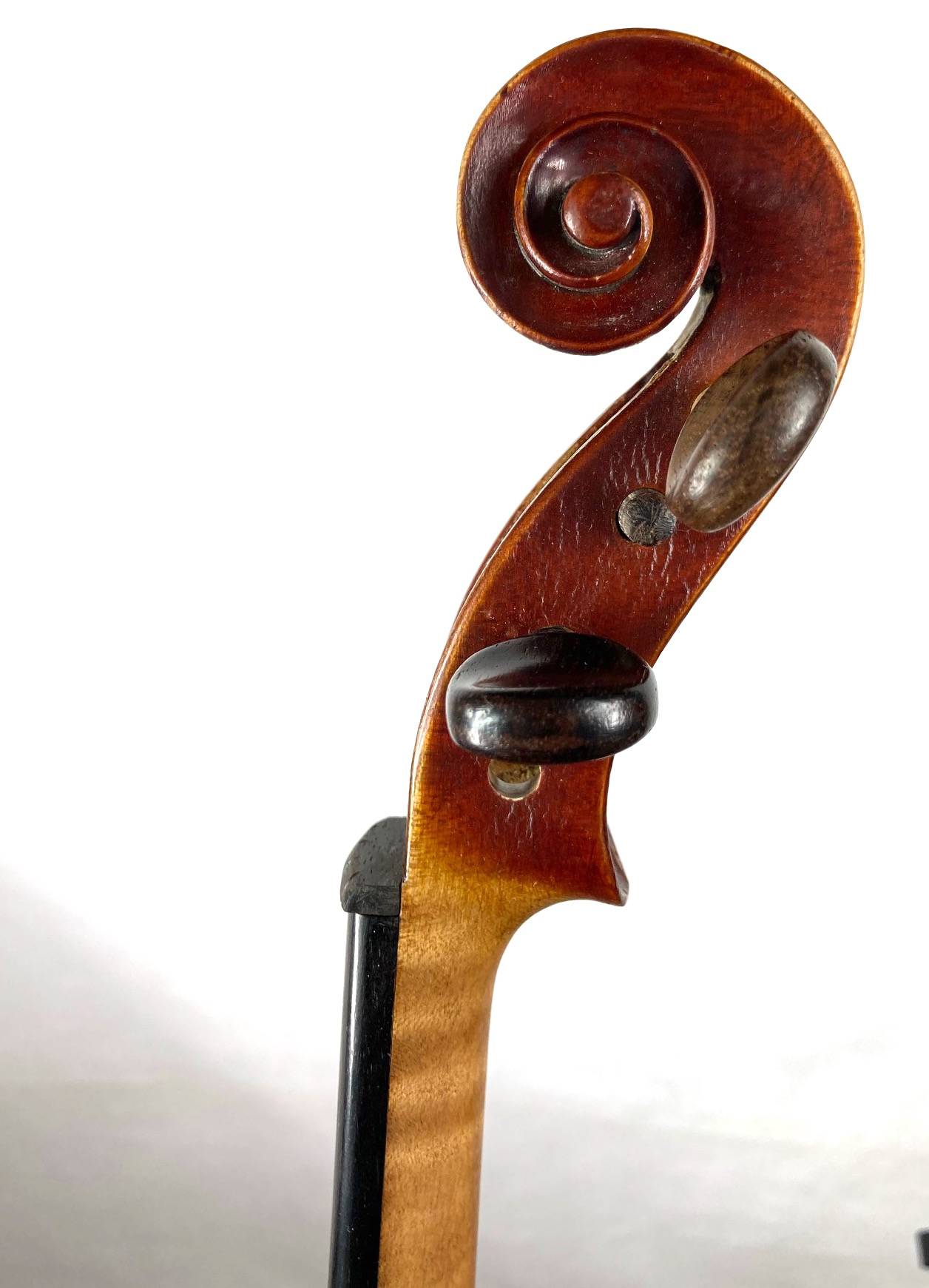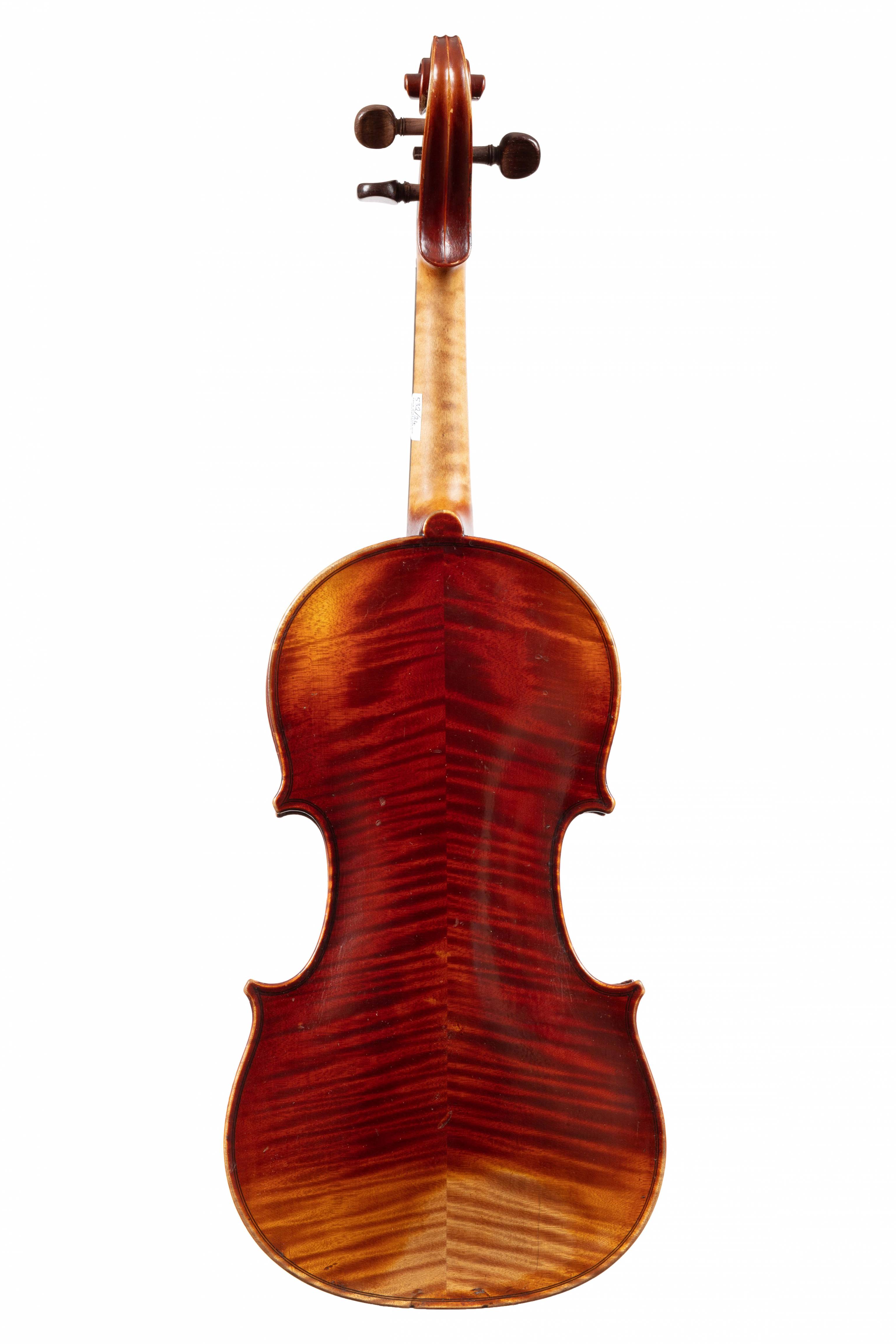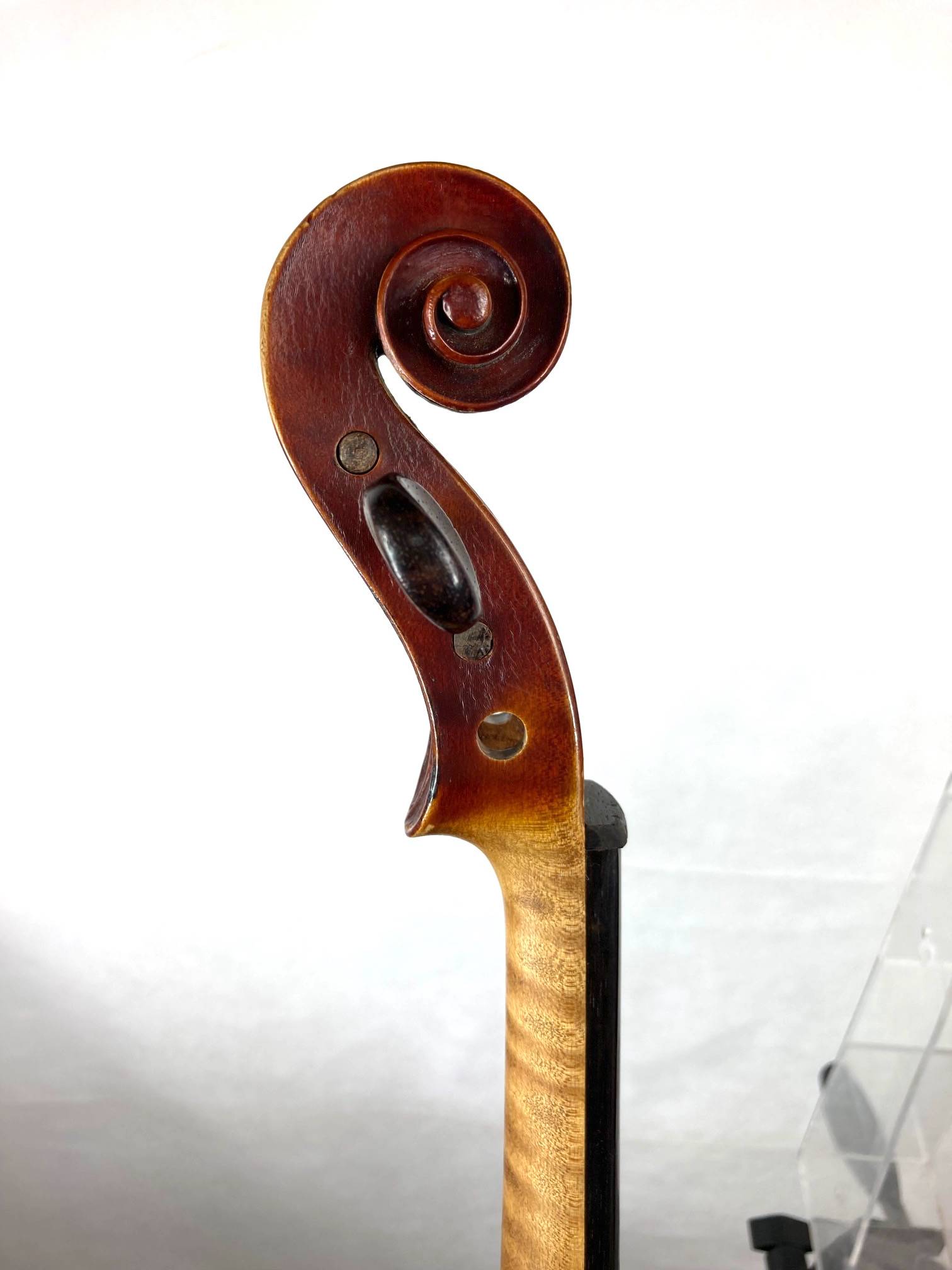 portant une étiquette "A.DELIVET.". Fond de deux pièces en érable. Vernis brun rouge sur fond doré.