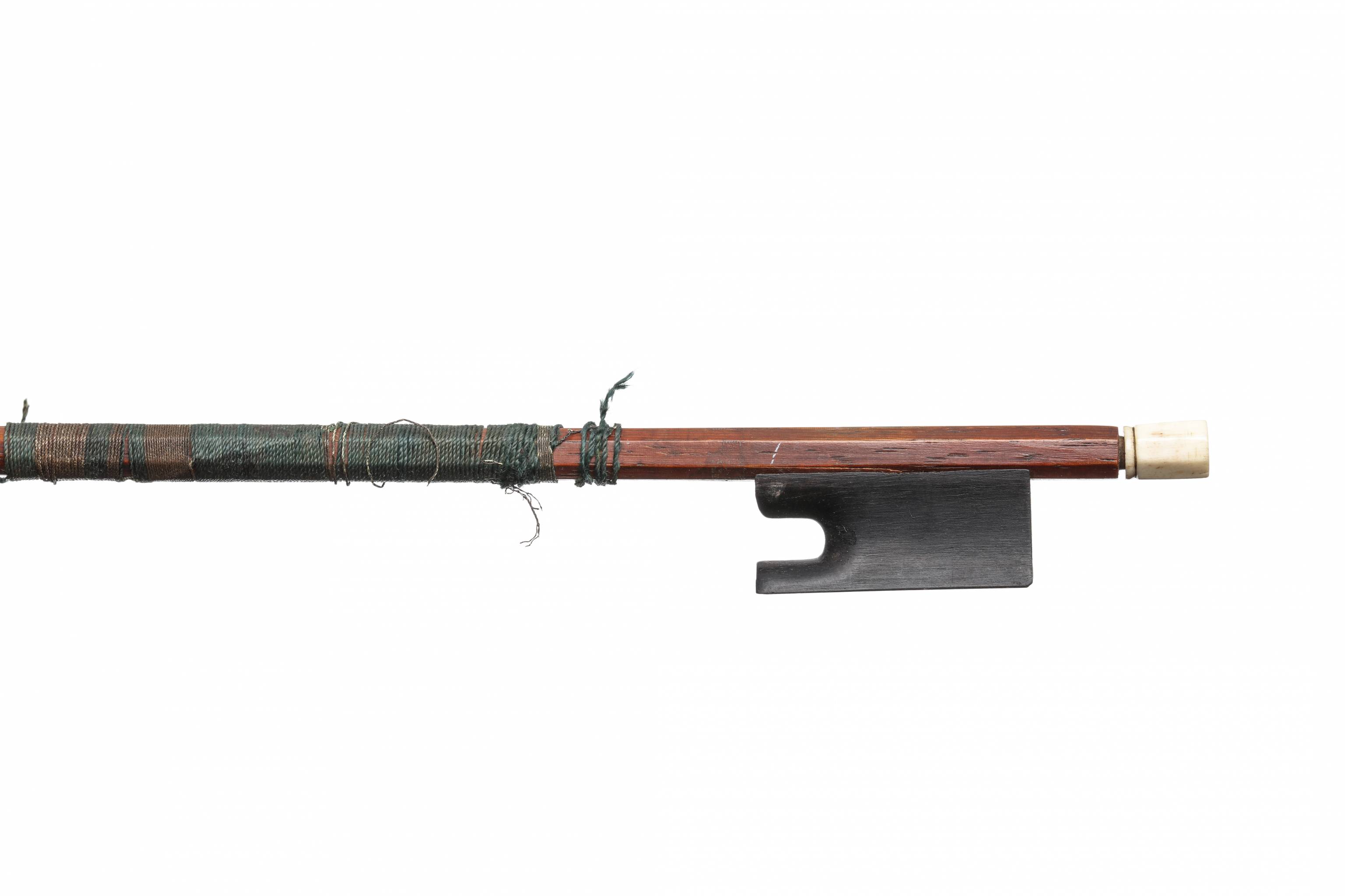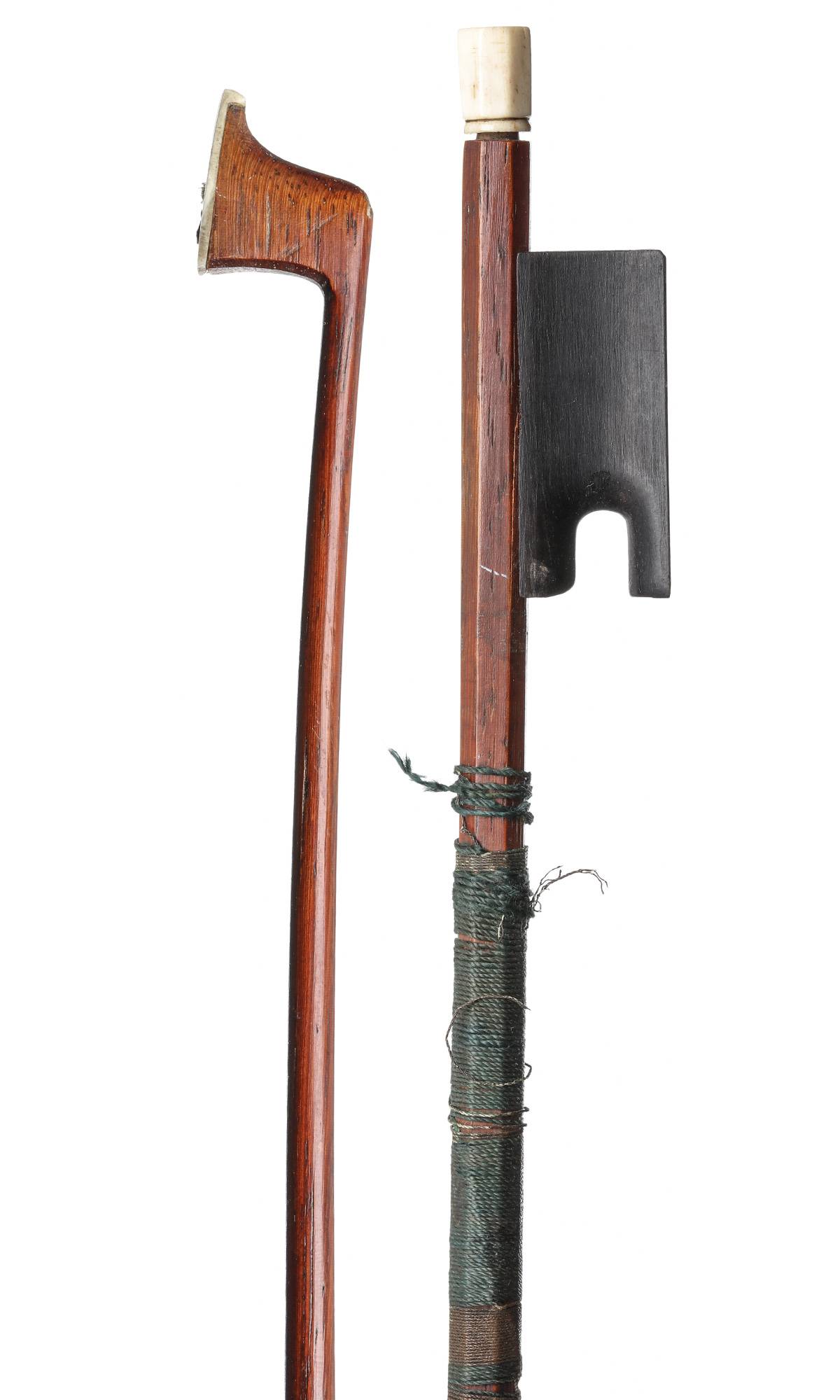 Baguette ronde en bois exotique. Hausse ouverte avec bouton en os. 721 mm. 46 g.