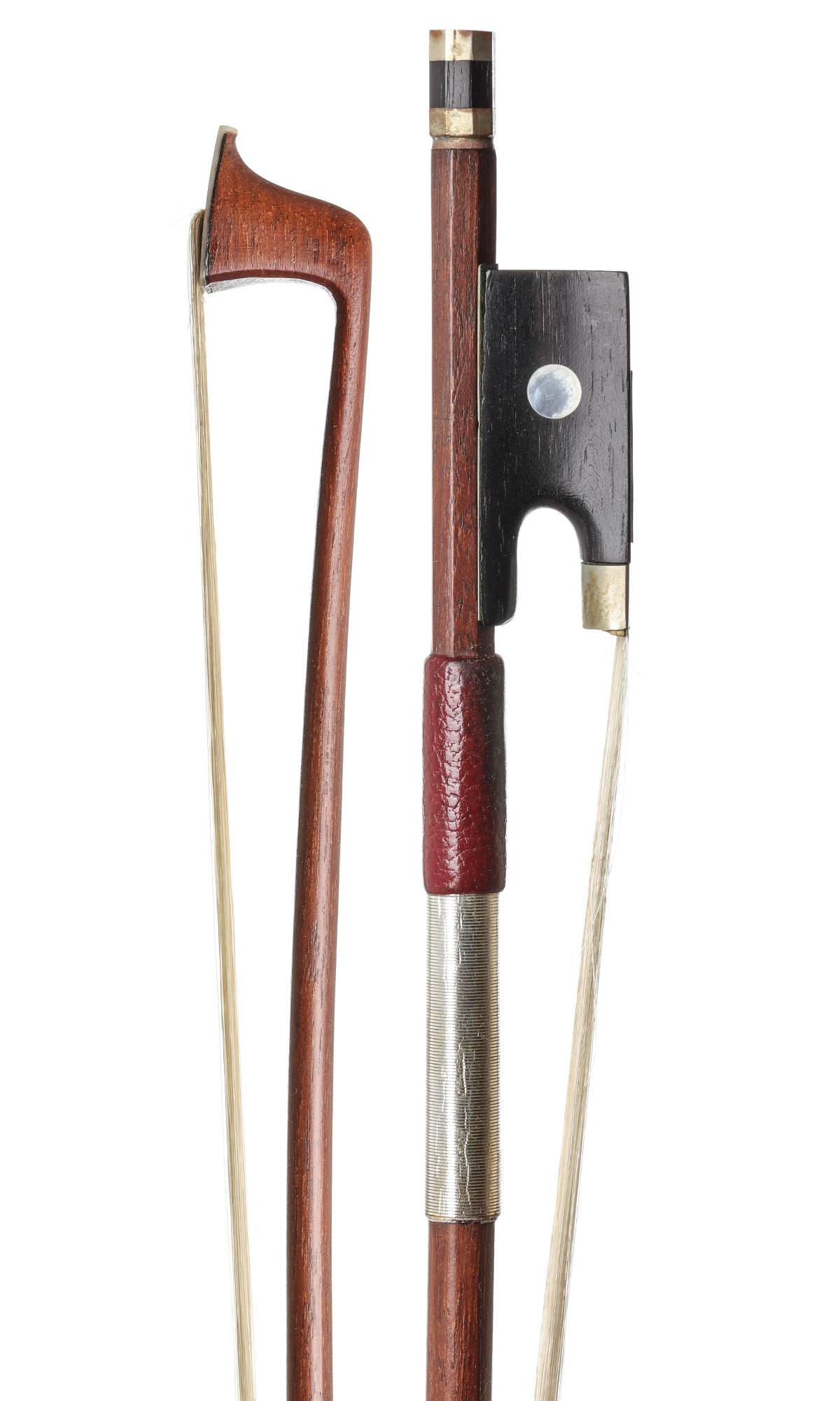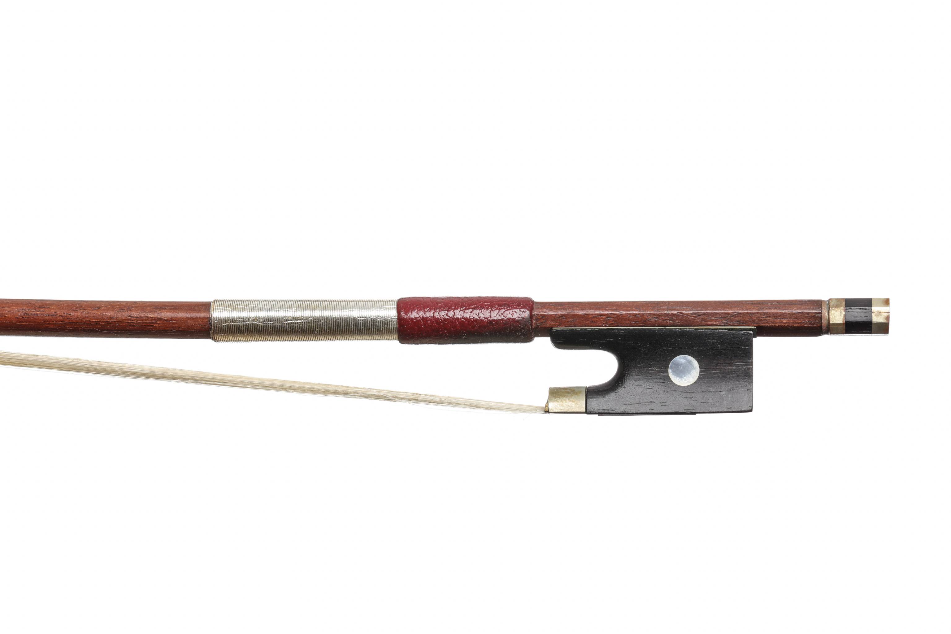 Baguette ronde en bois de pernambouc. Hausse ébène monté maillechort. 55 g. 730 mm.